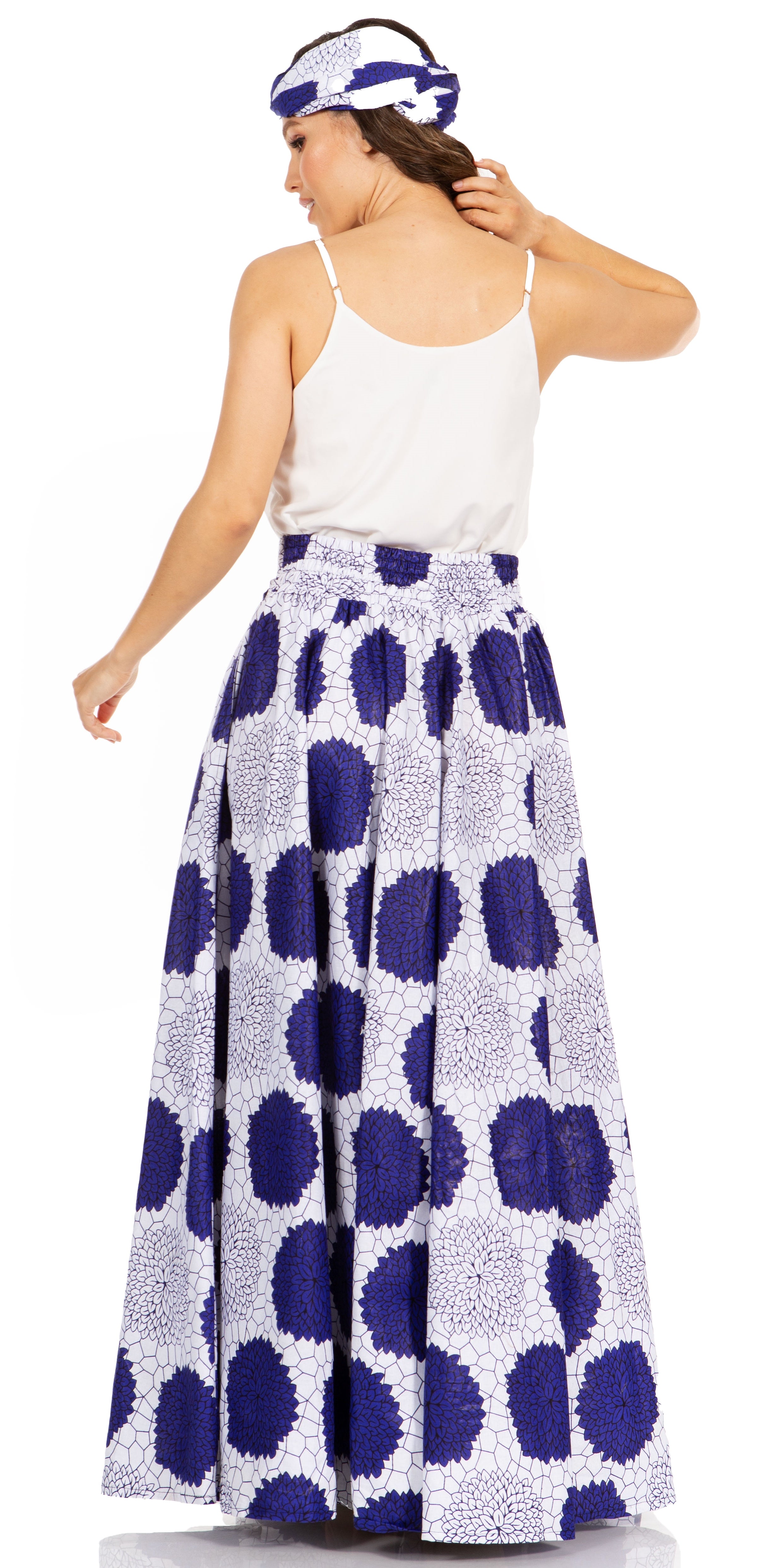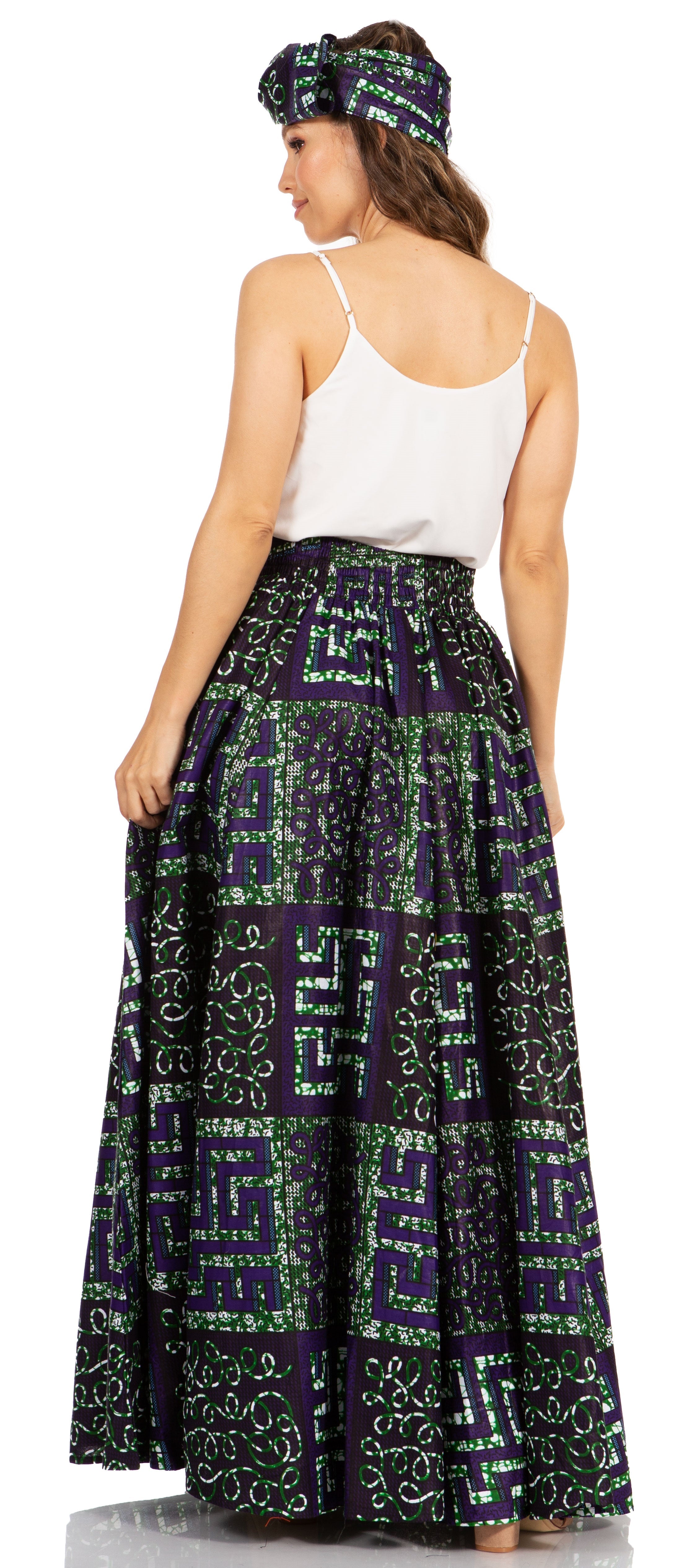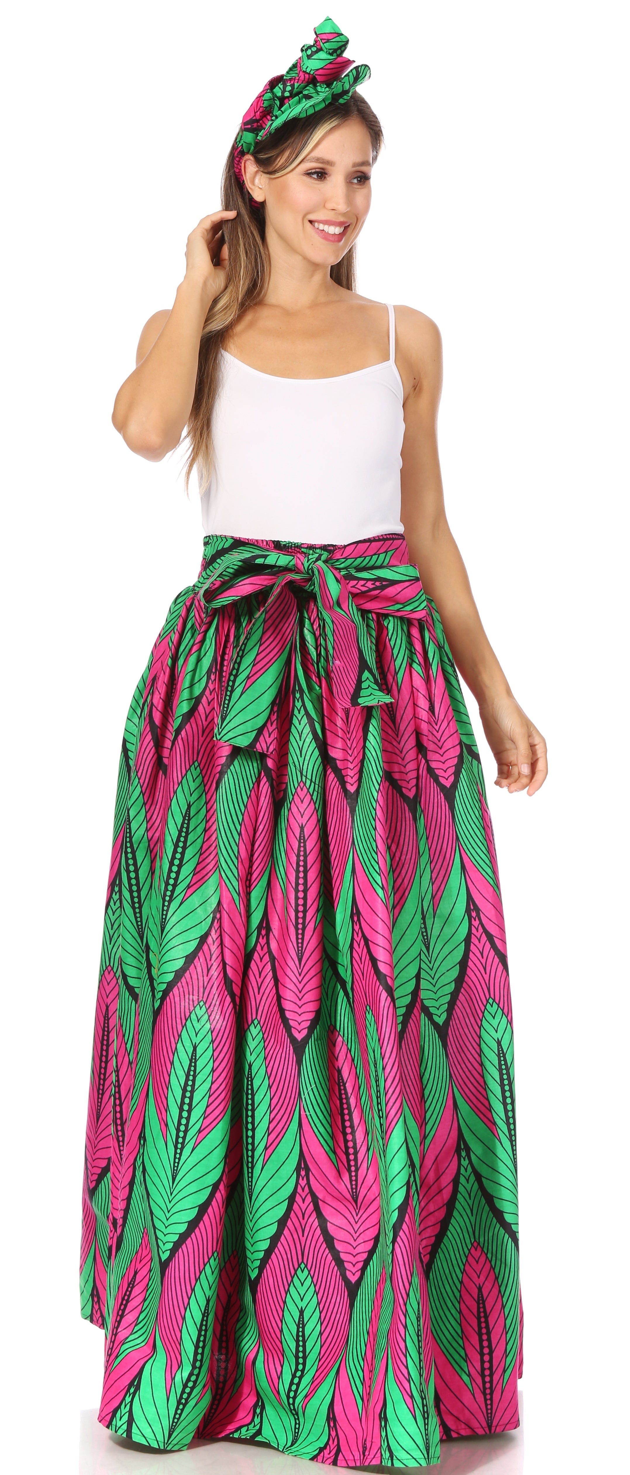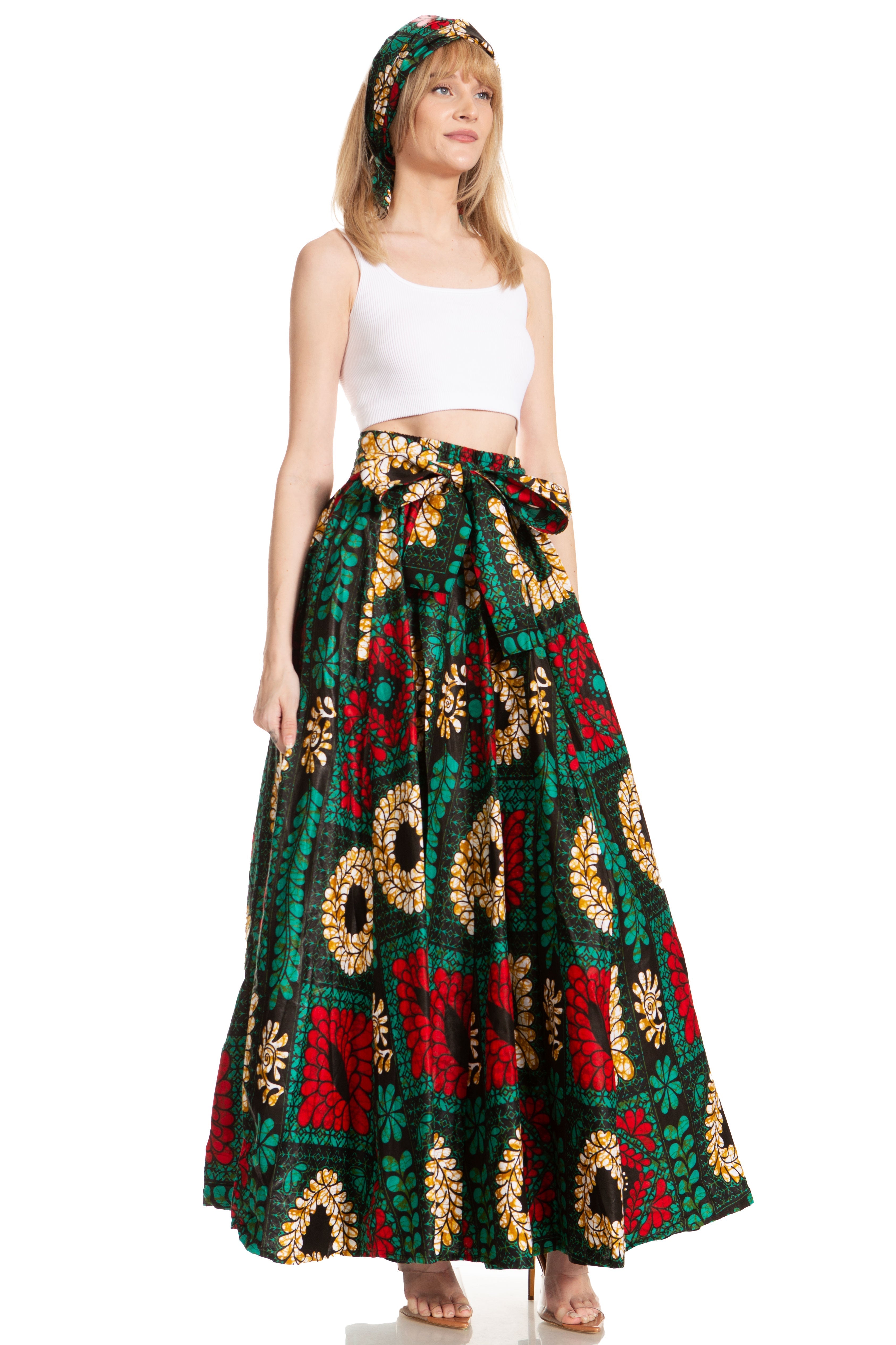 Sakkas Asma's Second Convertible Traditional Wax Print Maxi Skirt with Adjustable Straps