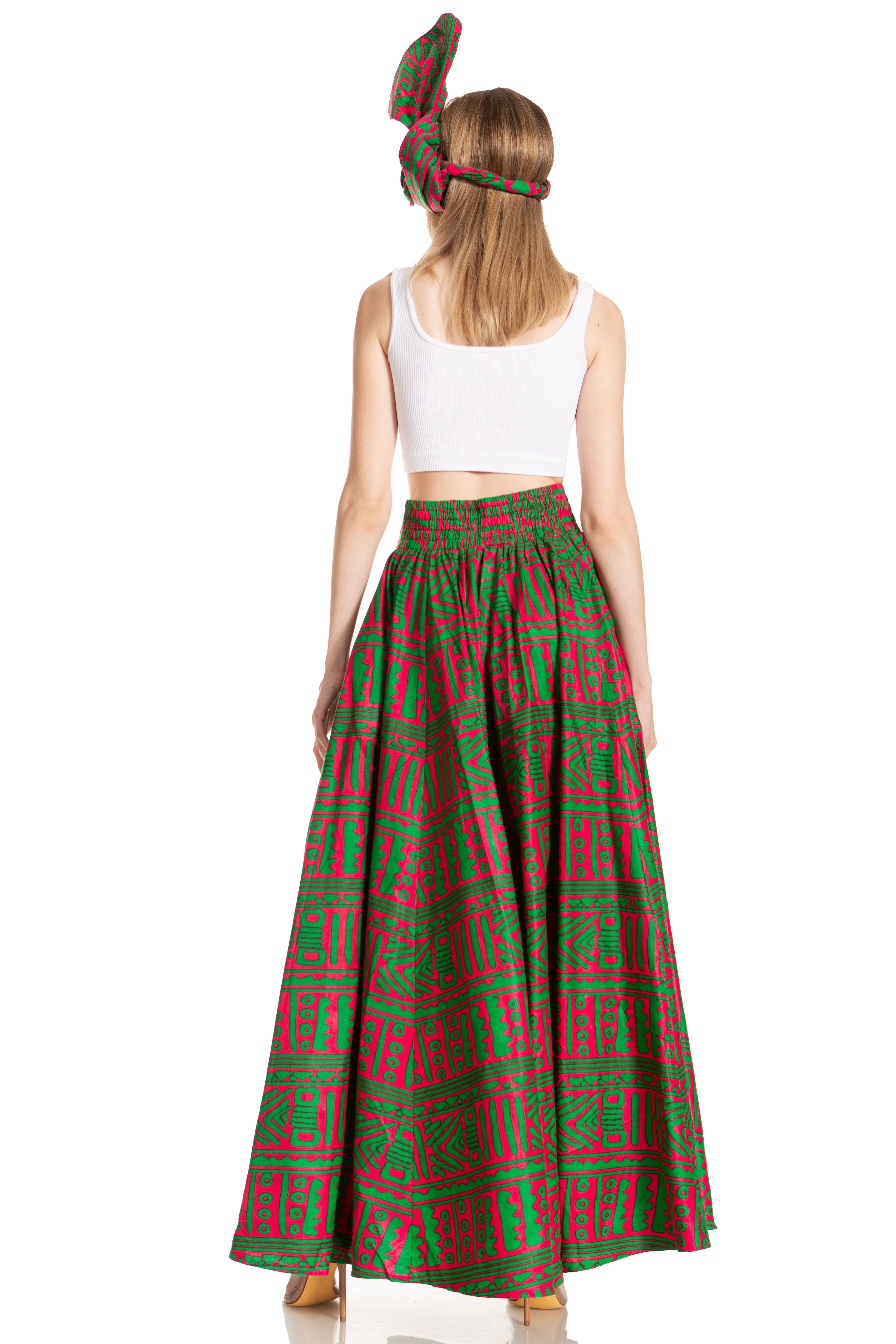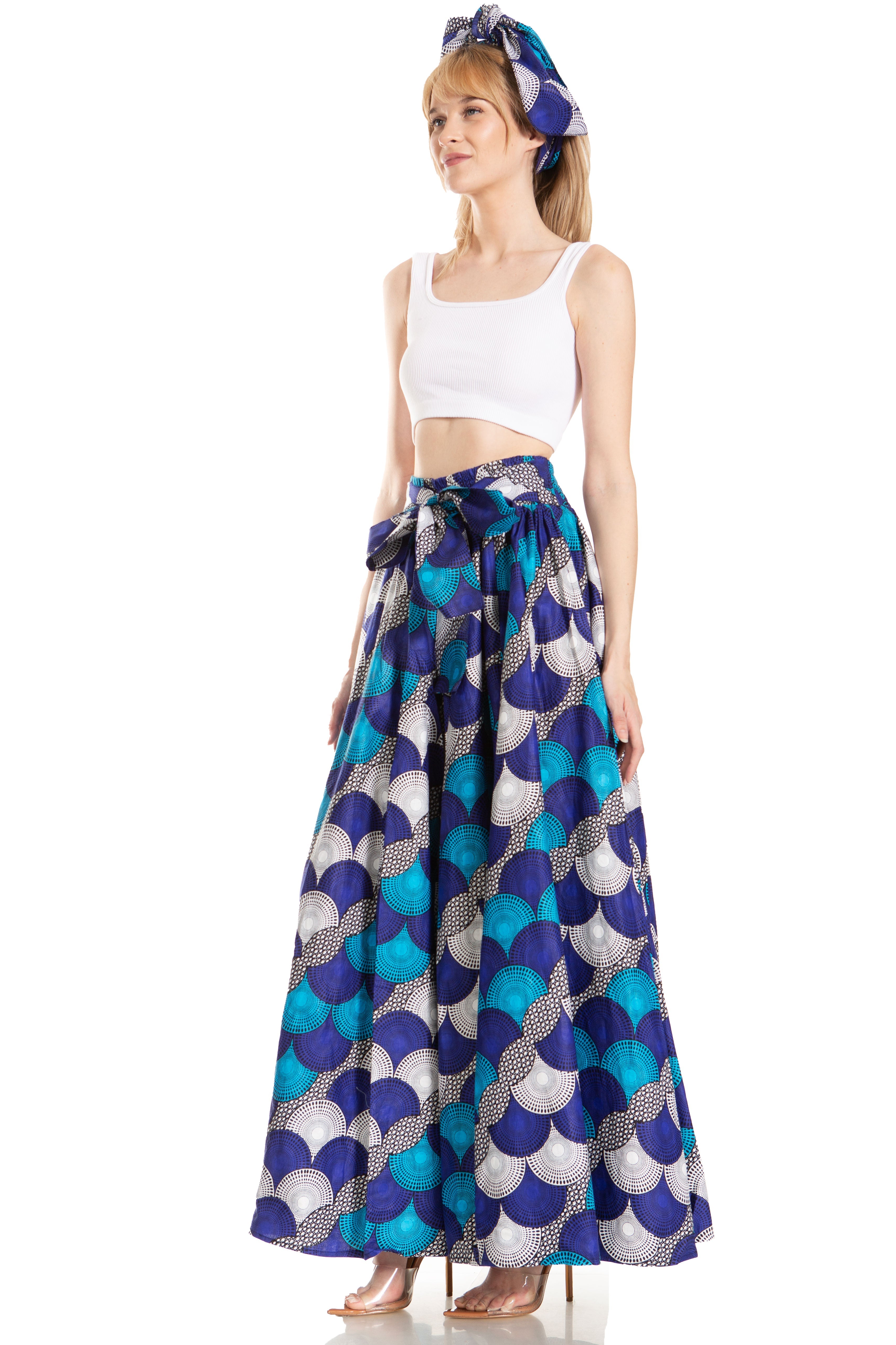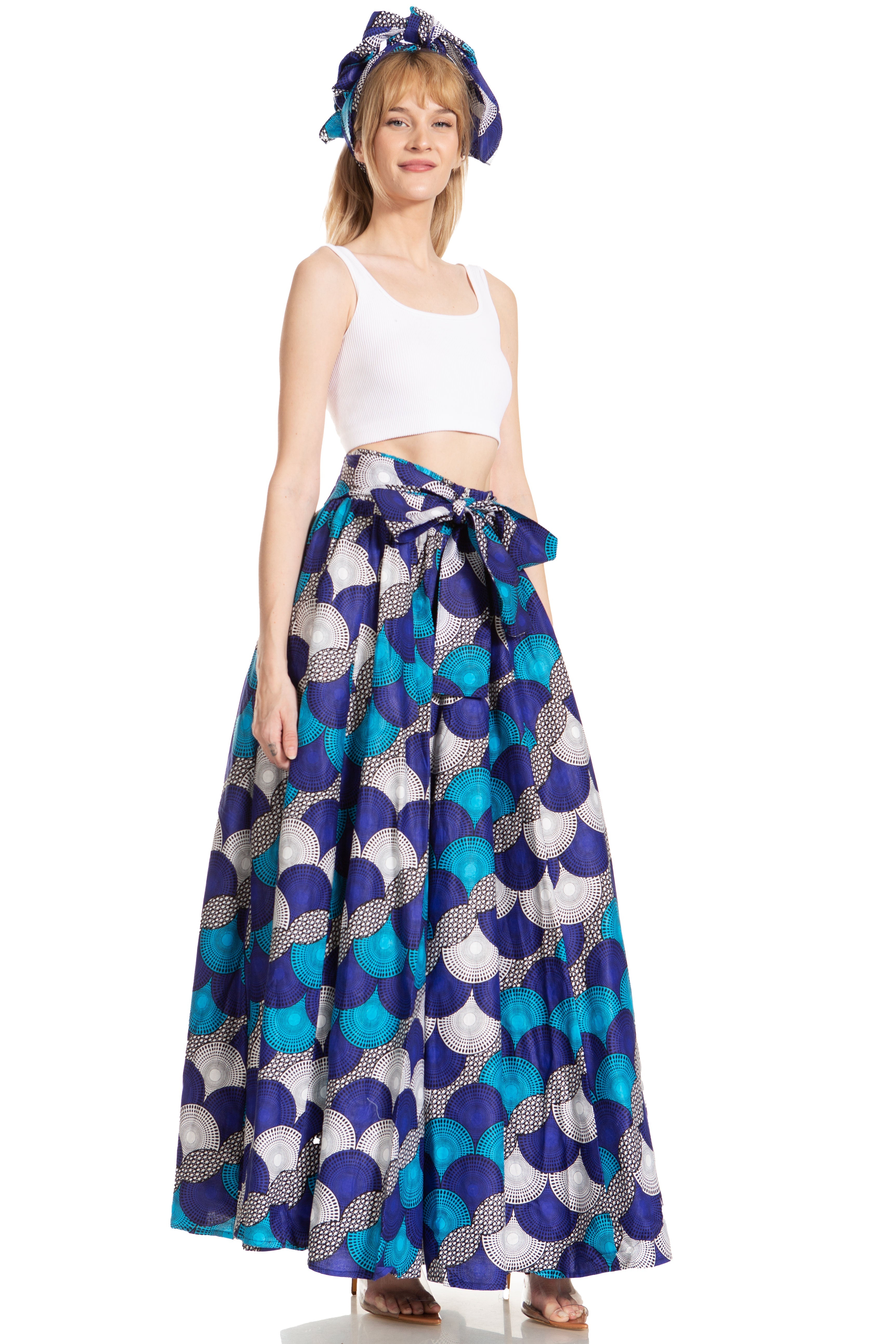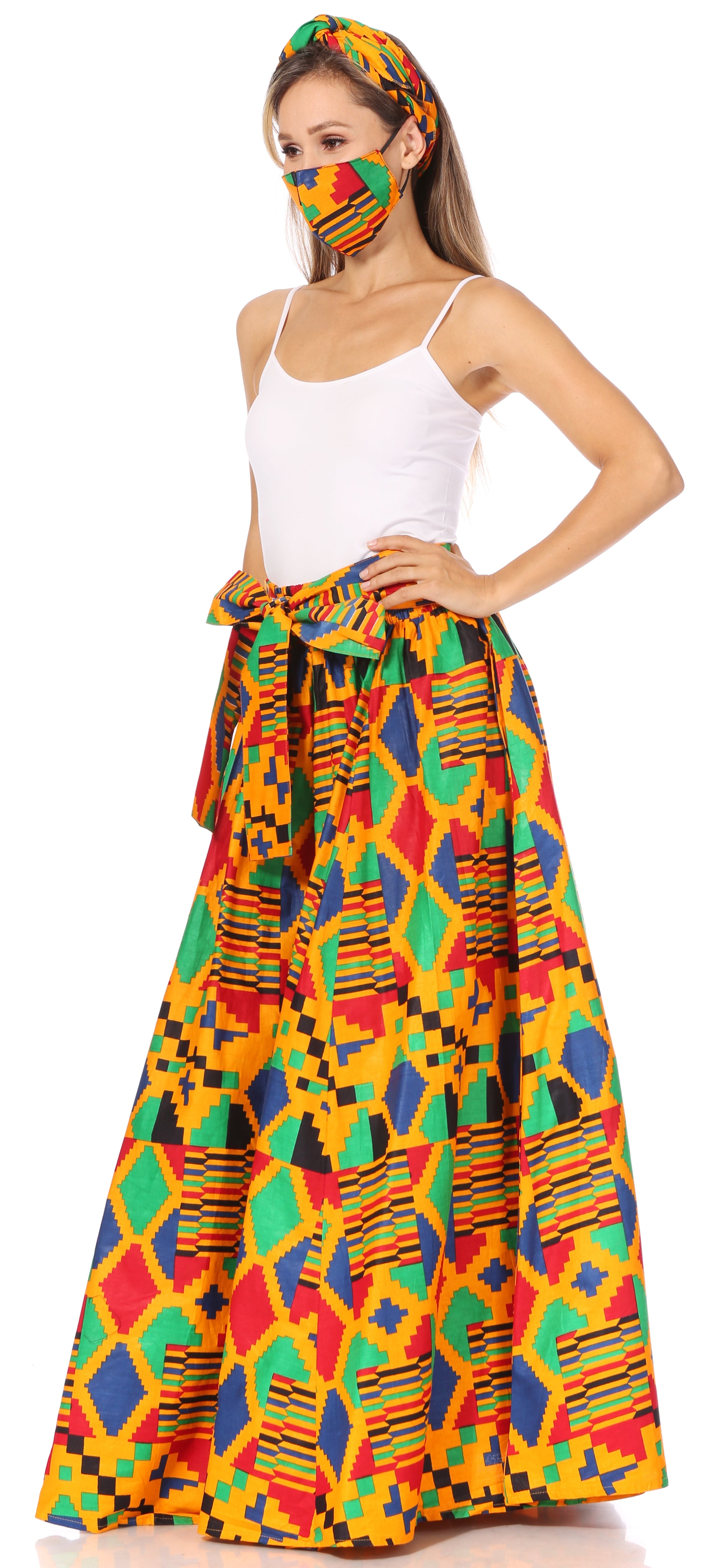 Sakkas Asma's Second Convertible Traditional Wax Print Maxi Skirt with Adjustable Straps
