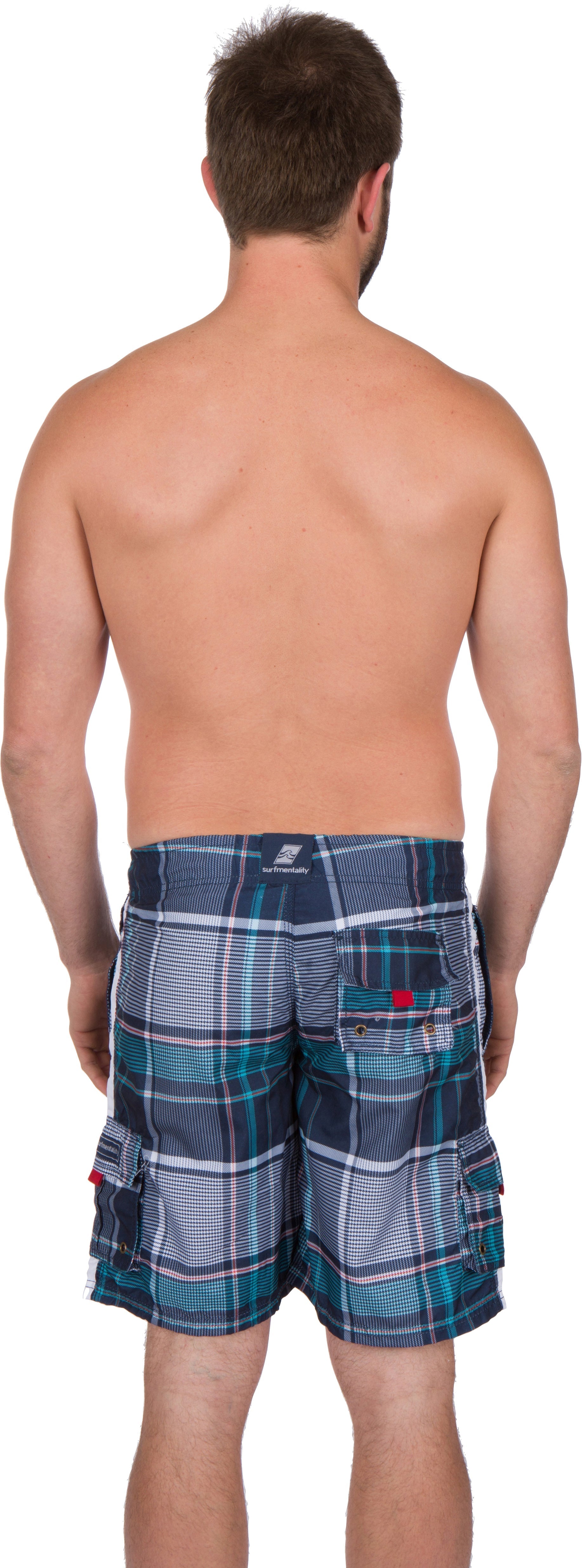 Features two front and one back velcro closure pockets with drain holes, mesh lining, and stretch waistband with drawstring. Fashionable and trendy plaid design will be sure to make a statement at the beach, the pool, or your favorite hang out. Perfect for catching waves, skateboarding, and swimming. Machine Wash Cold, Line Dry. Imported |Material: 100% Polyester