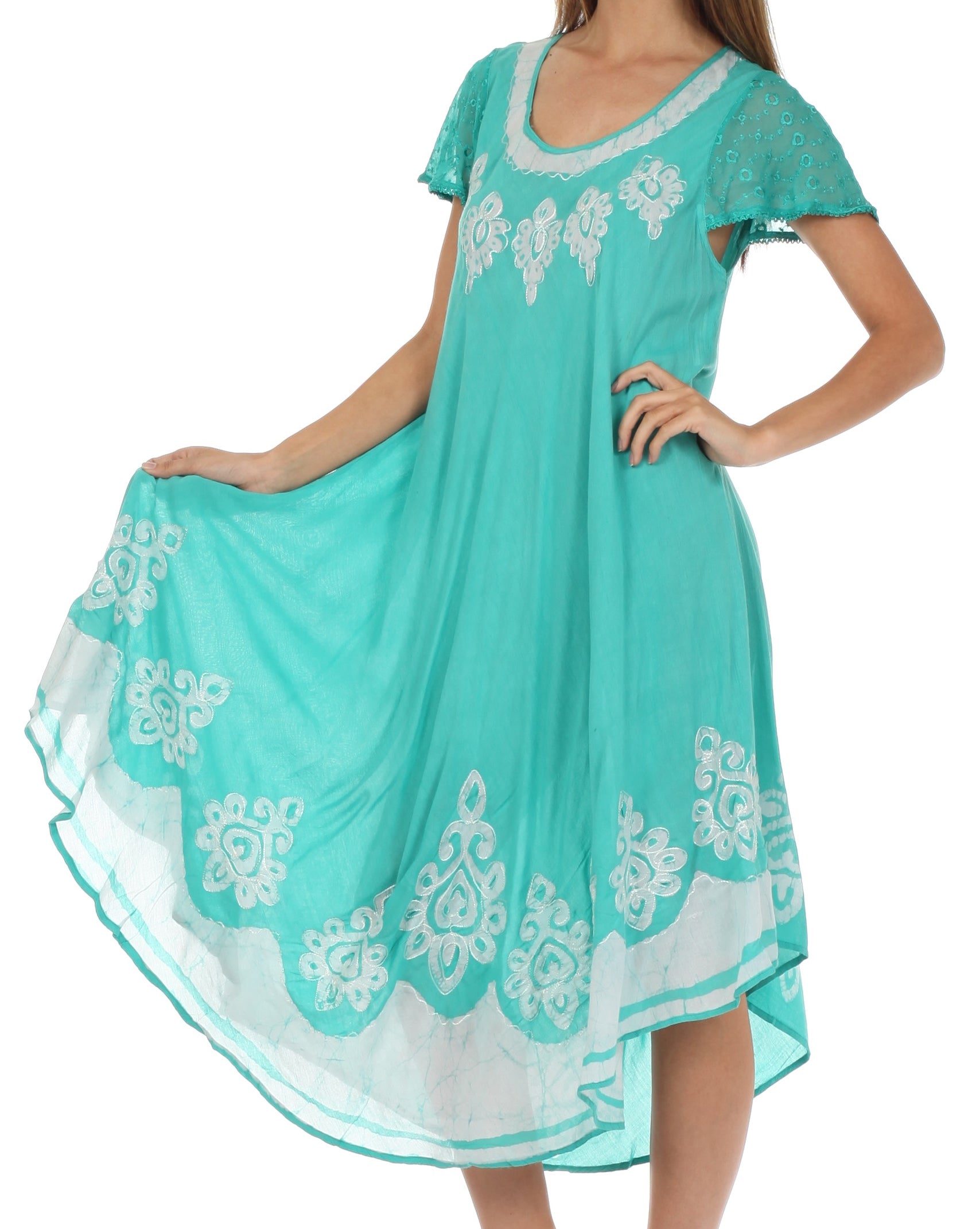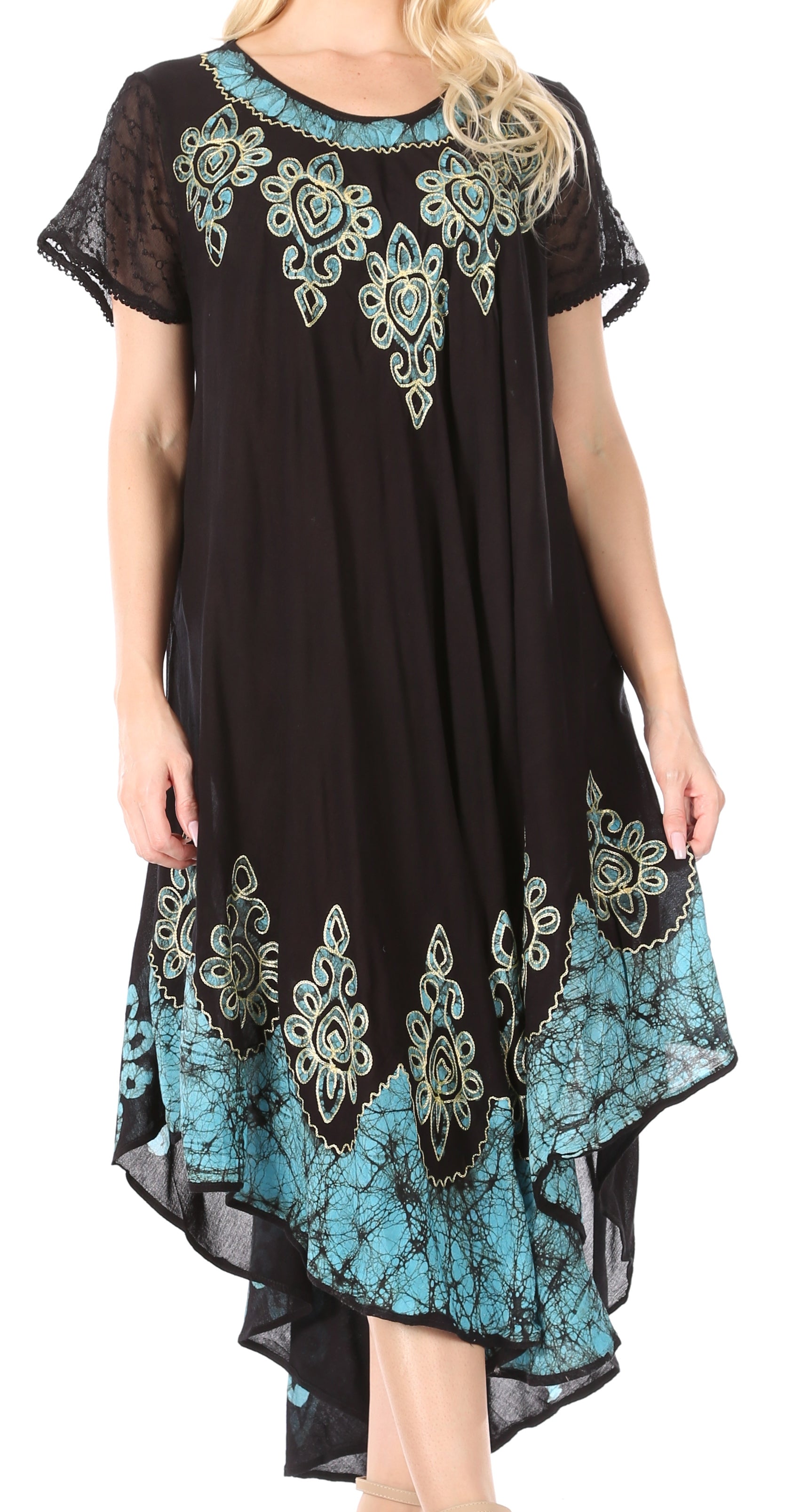 • Batik dress features soft Rayon fabric, sheer cap sleeves, relaxed fit and embroidered design in beautiful colors.