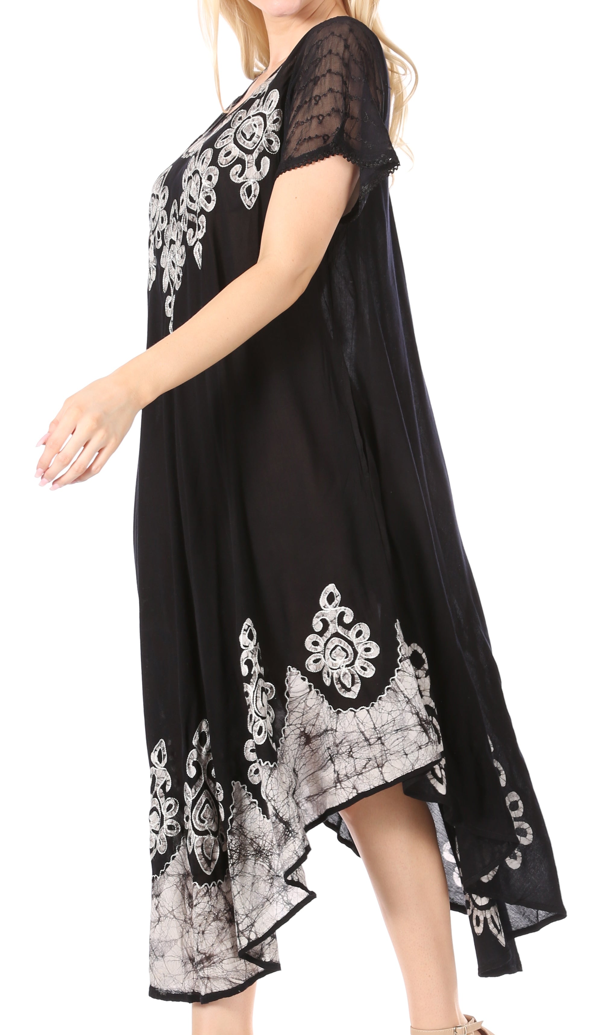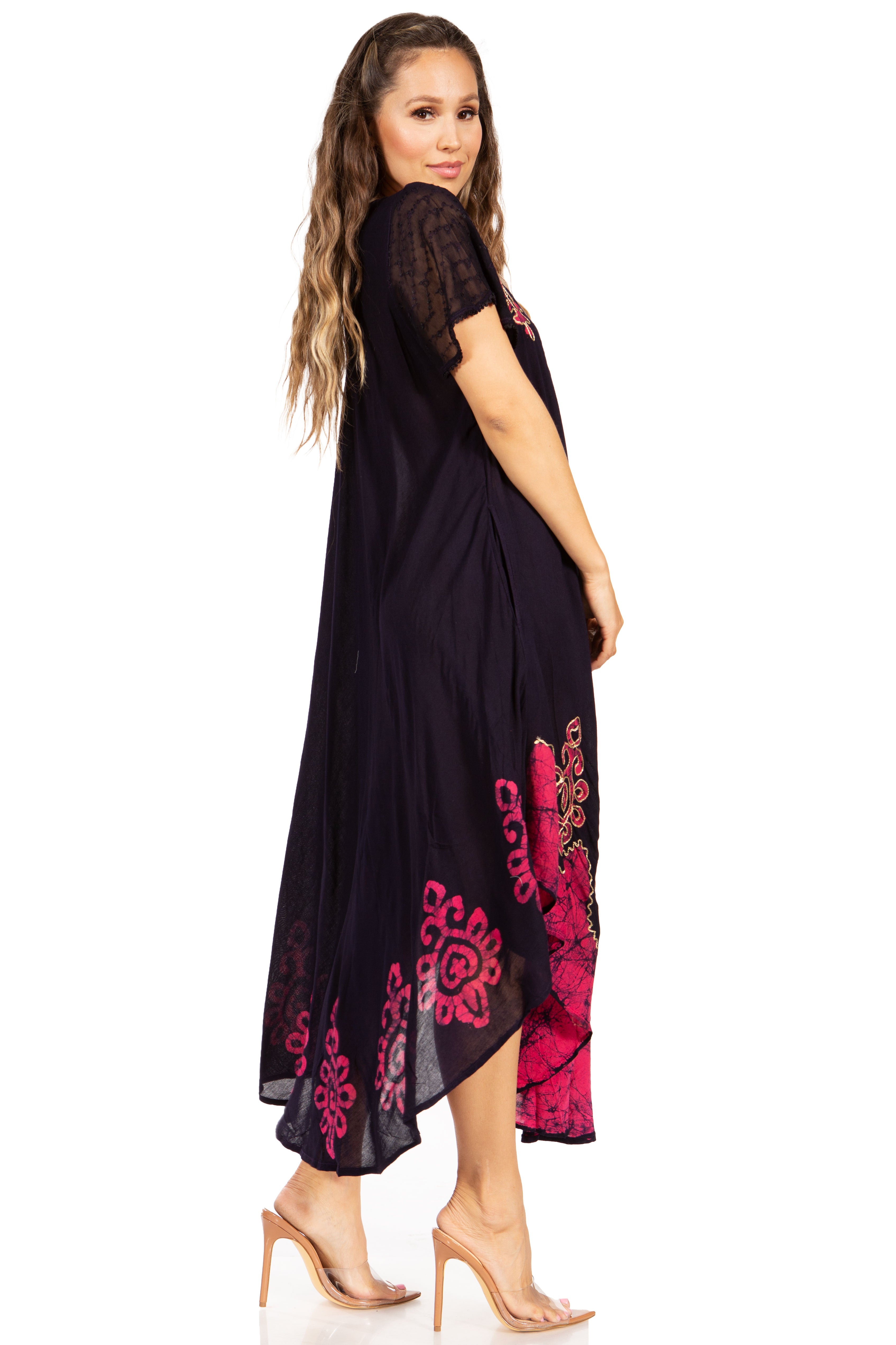 Sakkas Batik Hindi Cap Sleeve Caftan Dress / Cover Up