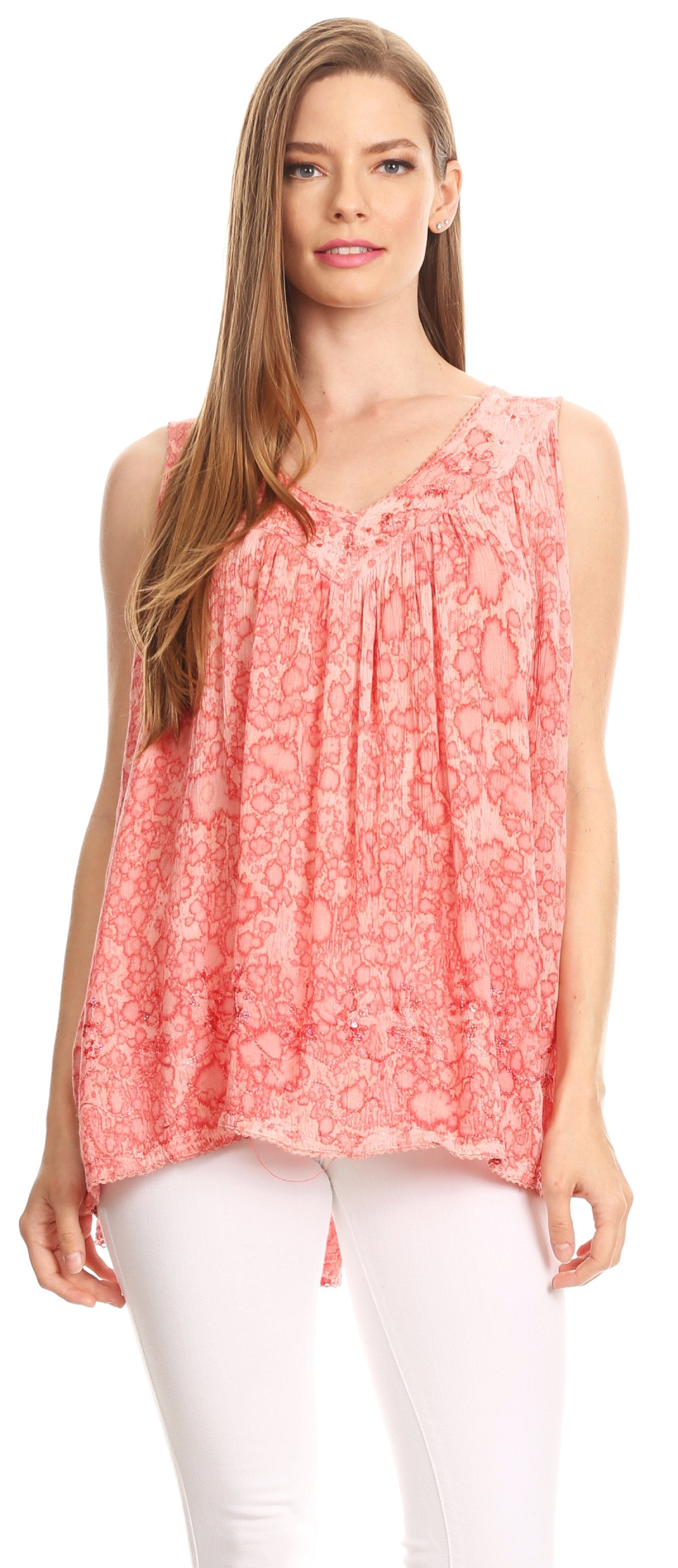 Women's Bohemian Summer sleeveless blouse features beautiful colors and easy comfortable style.