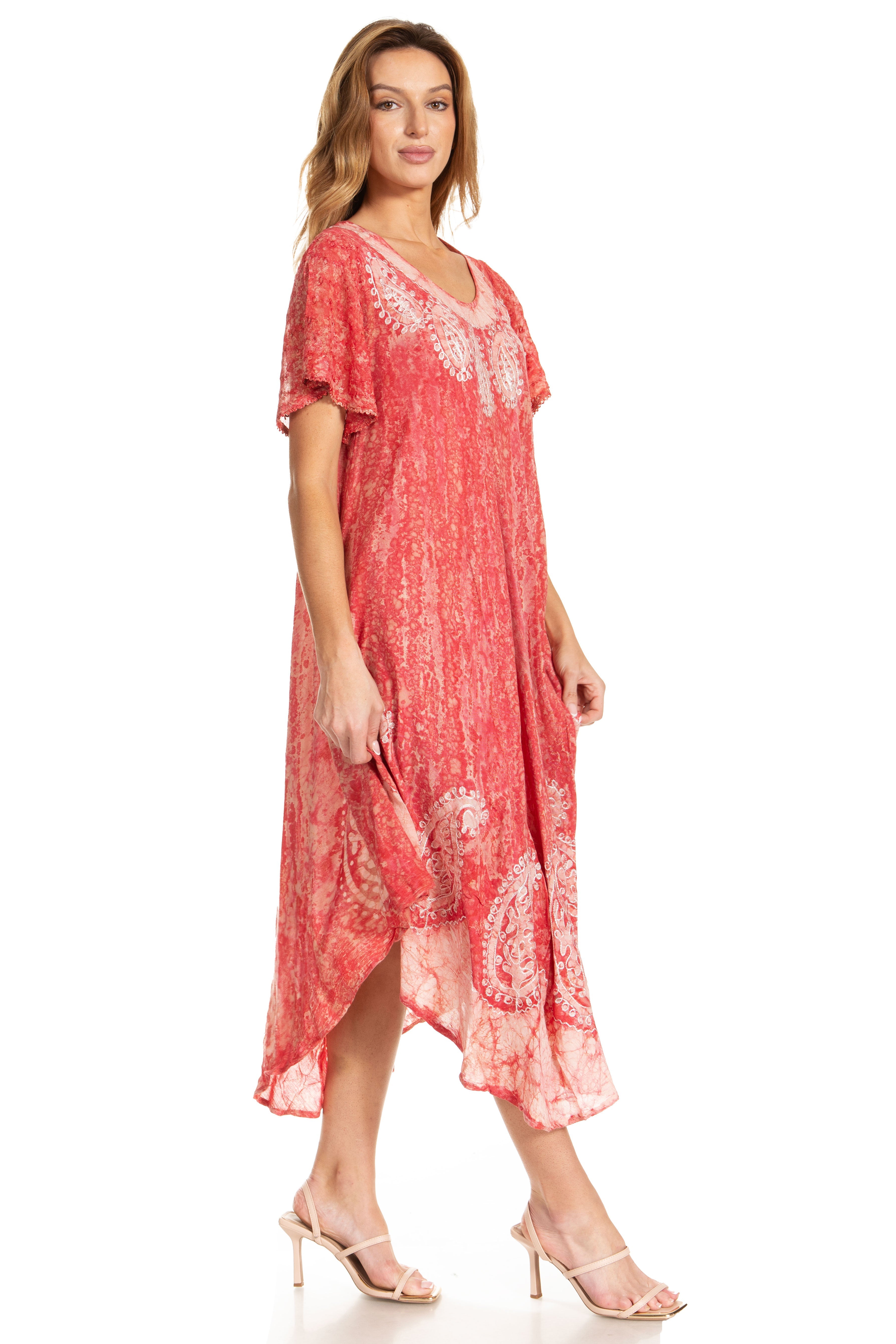 Sakkas Bree Long Embroidered Cap Sleeve Marbled Dress