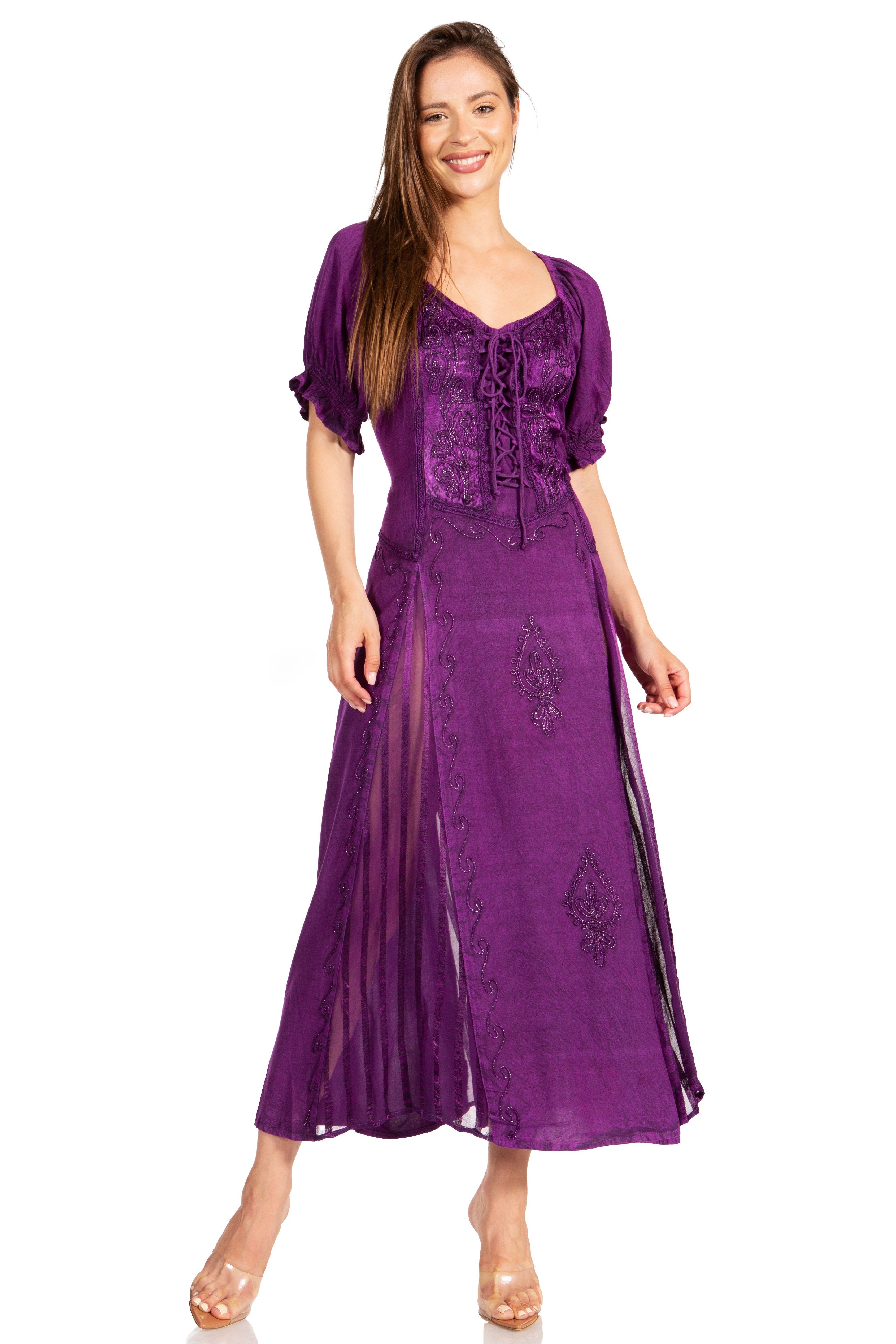 Sakkas' stonewashed rayon dresses feature delicate embroidery, beautiful rich colors and easy comfortable style. Enjoy wearing a flattering feminine dress without sacrificing comfort!