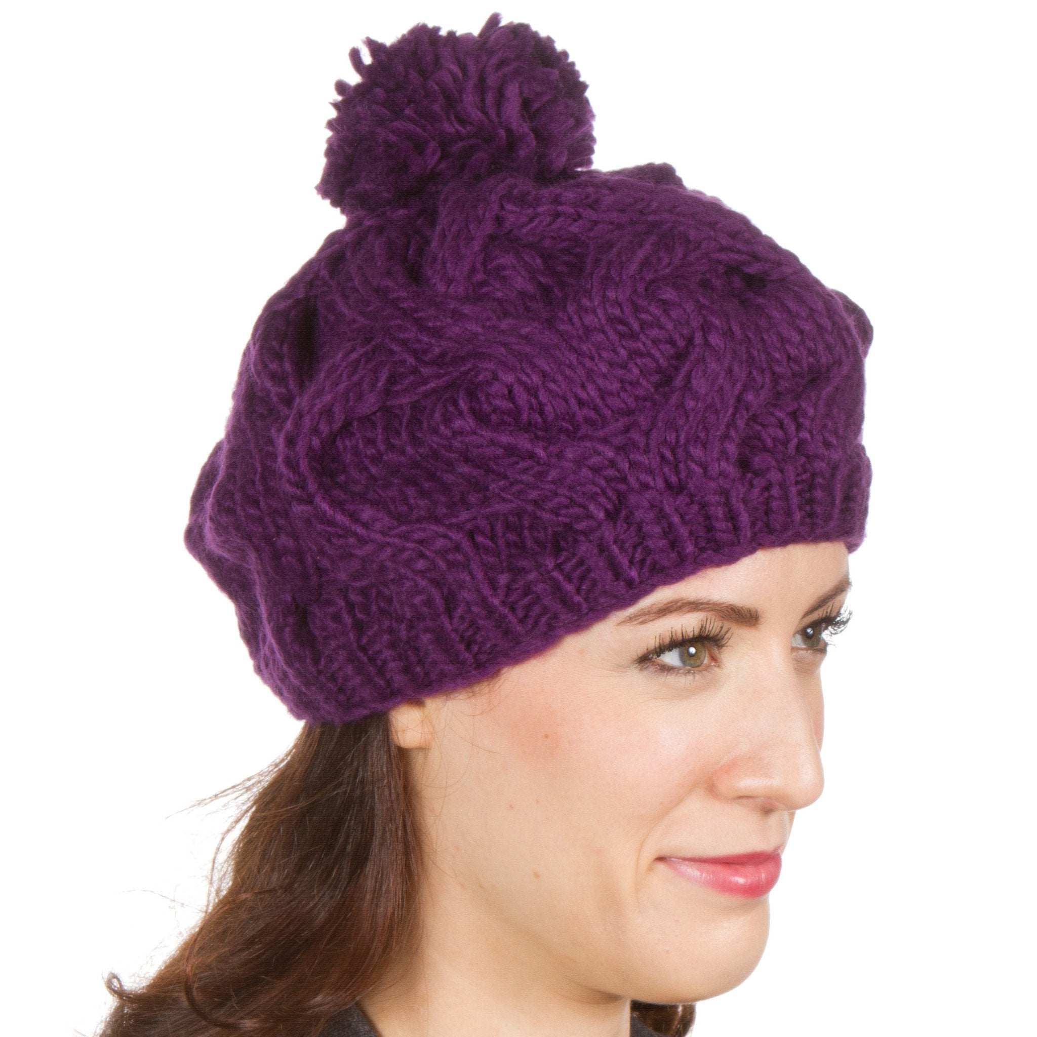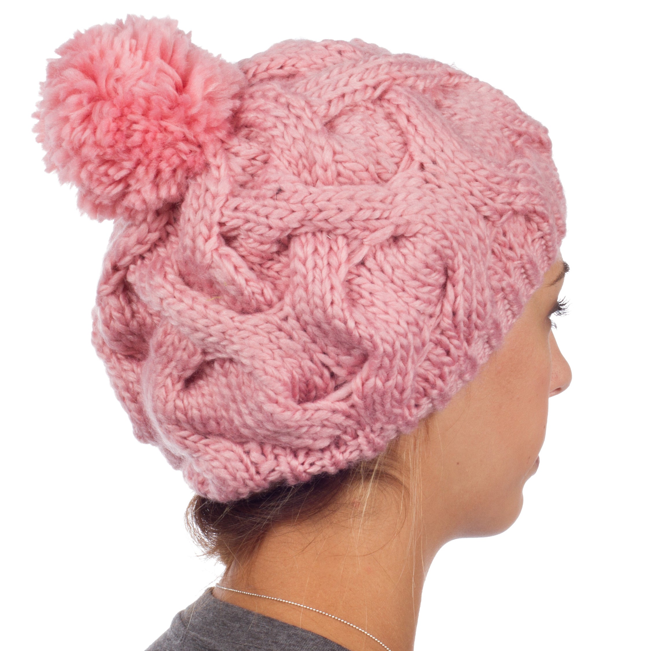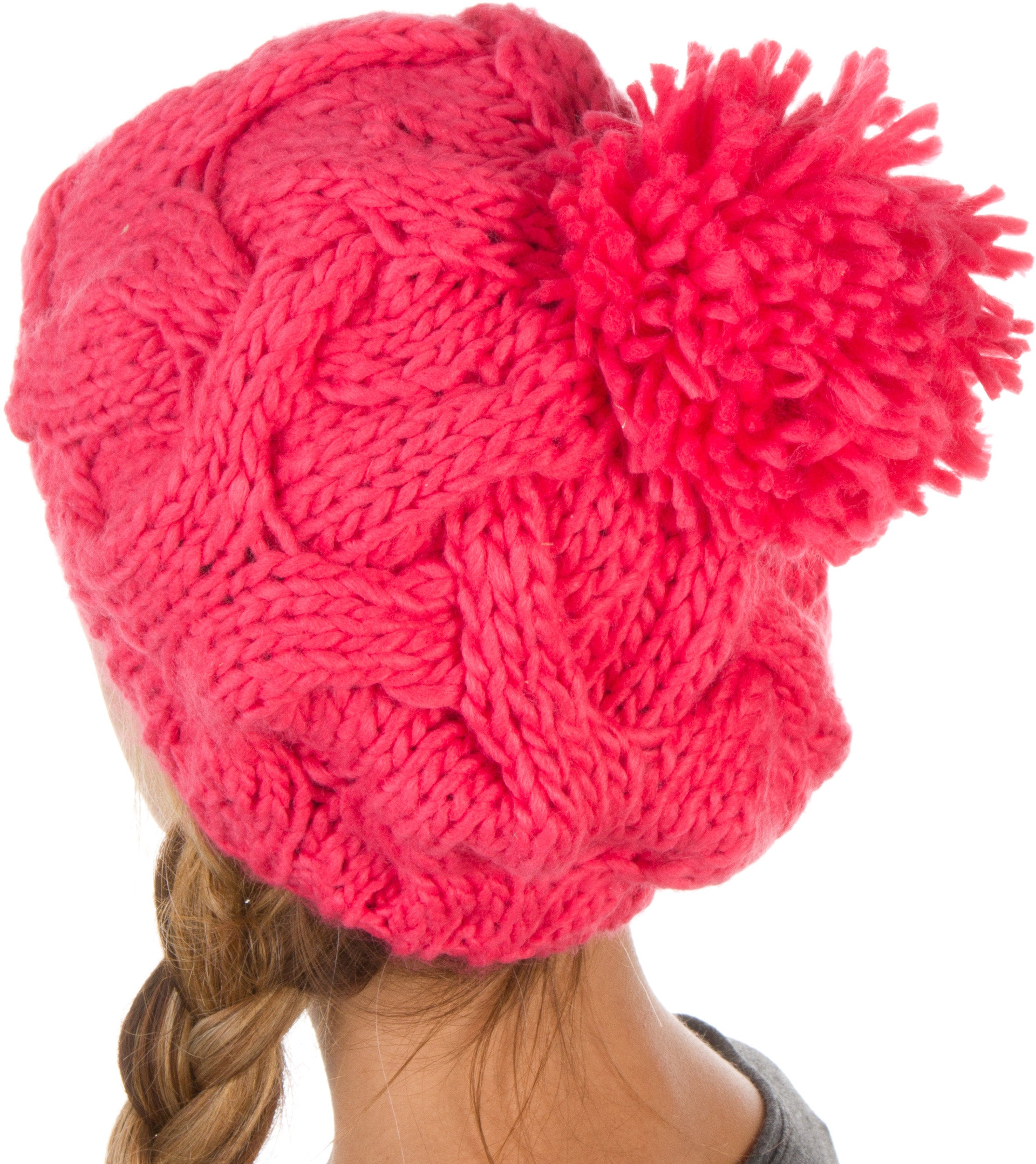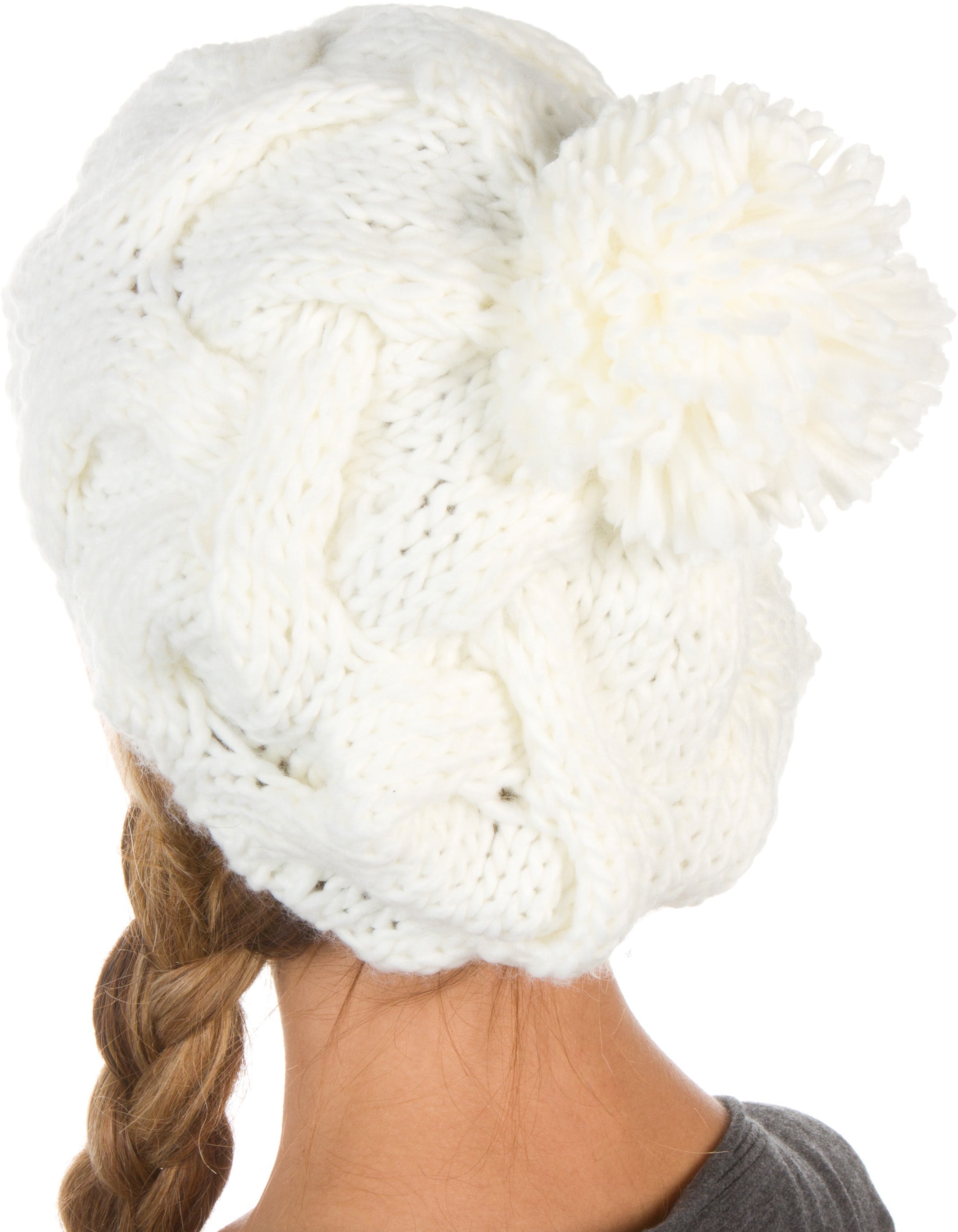 Sakkas Cable Knit Pom Pom Thick Slouch Hat