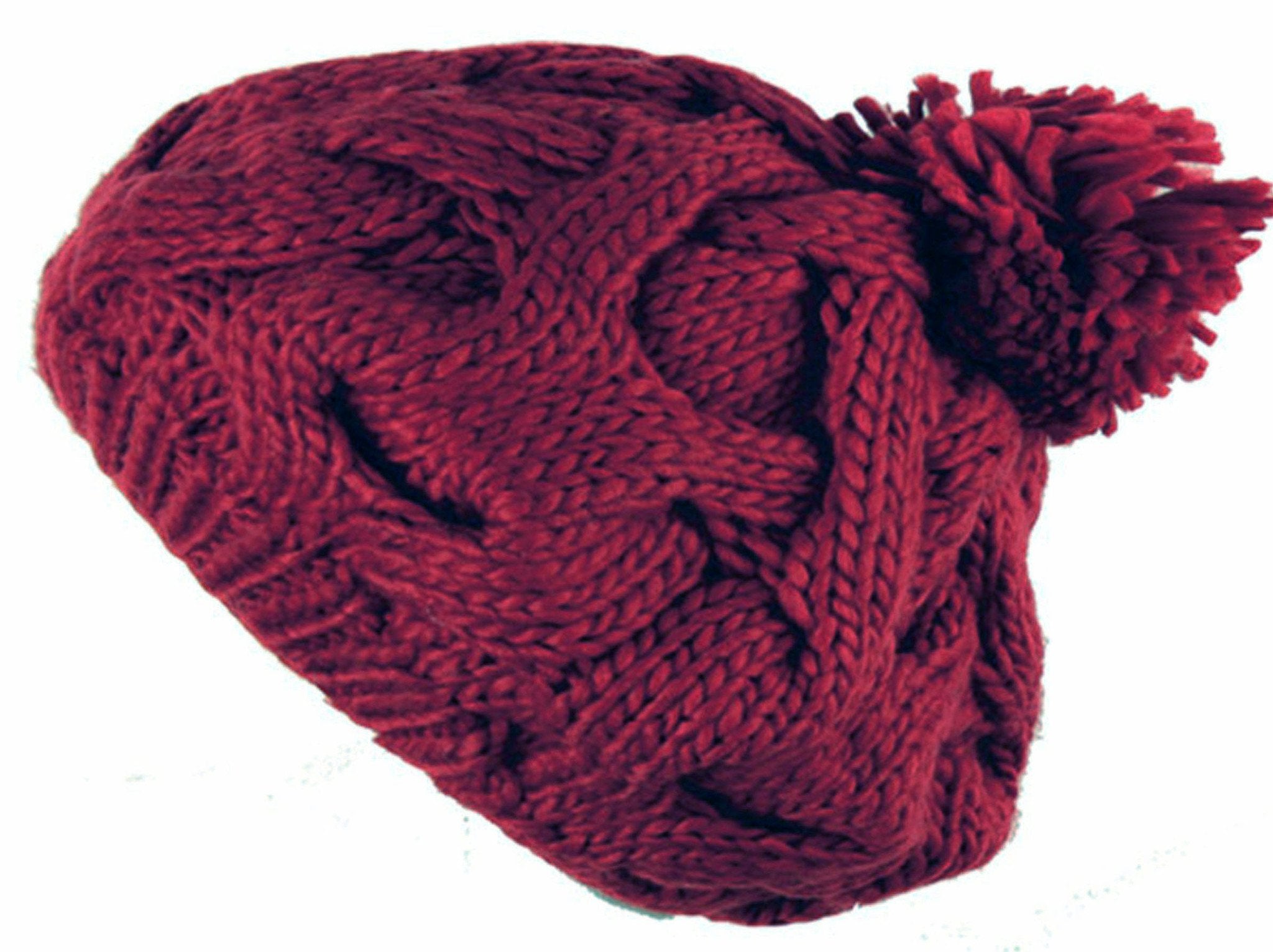 • Features thick cable knit, comfortable stretch and solid colors accented with a pom.