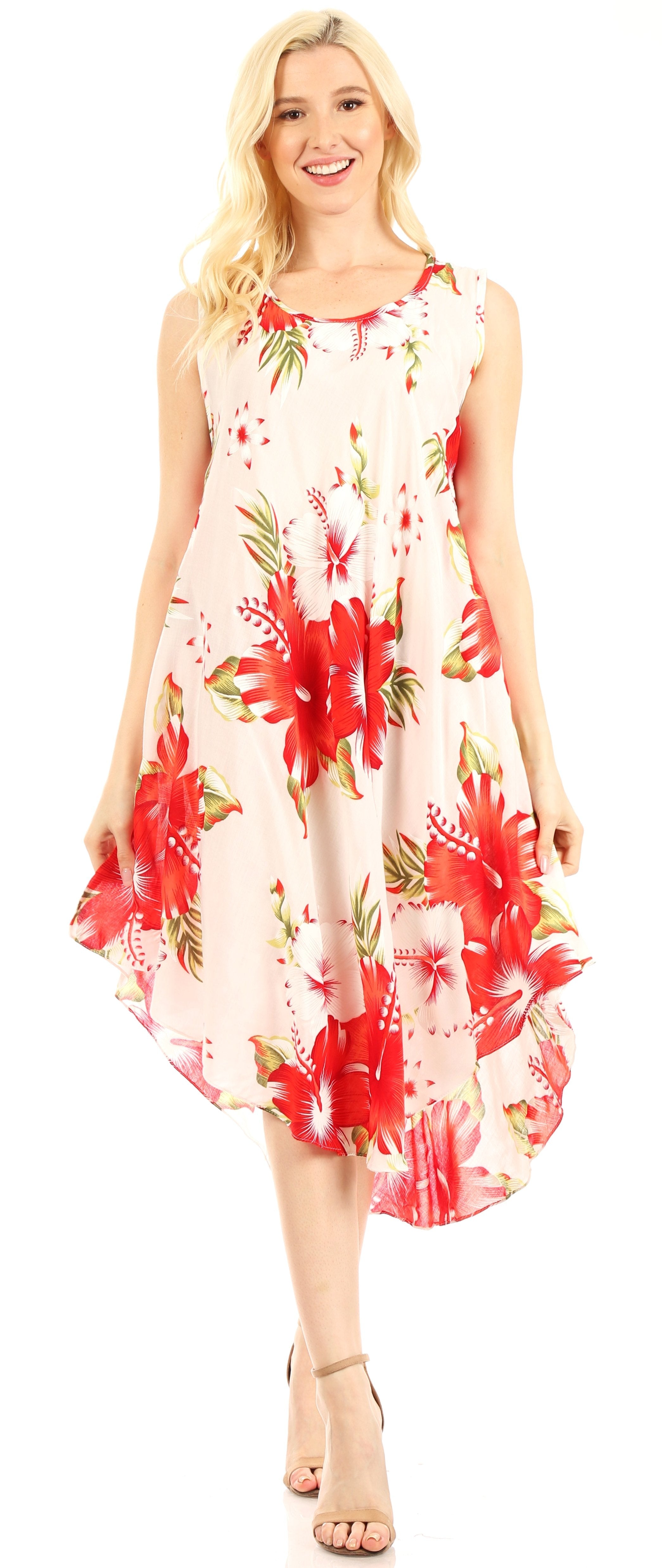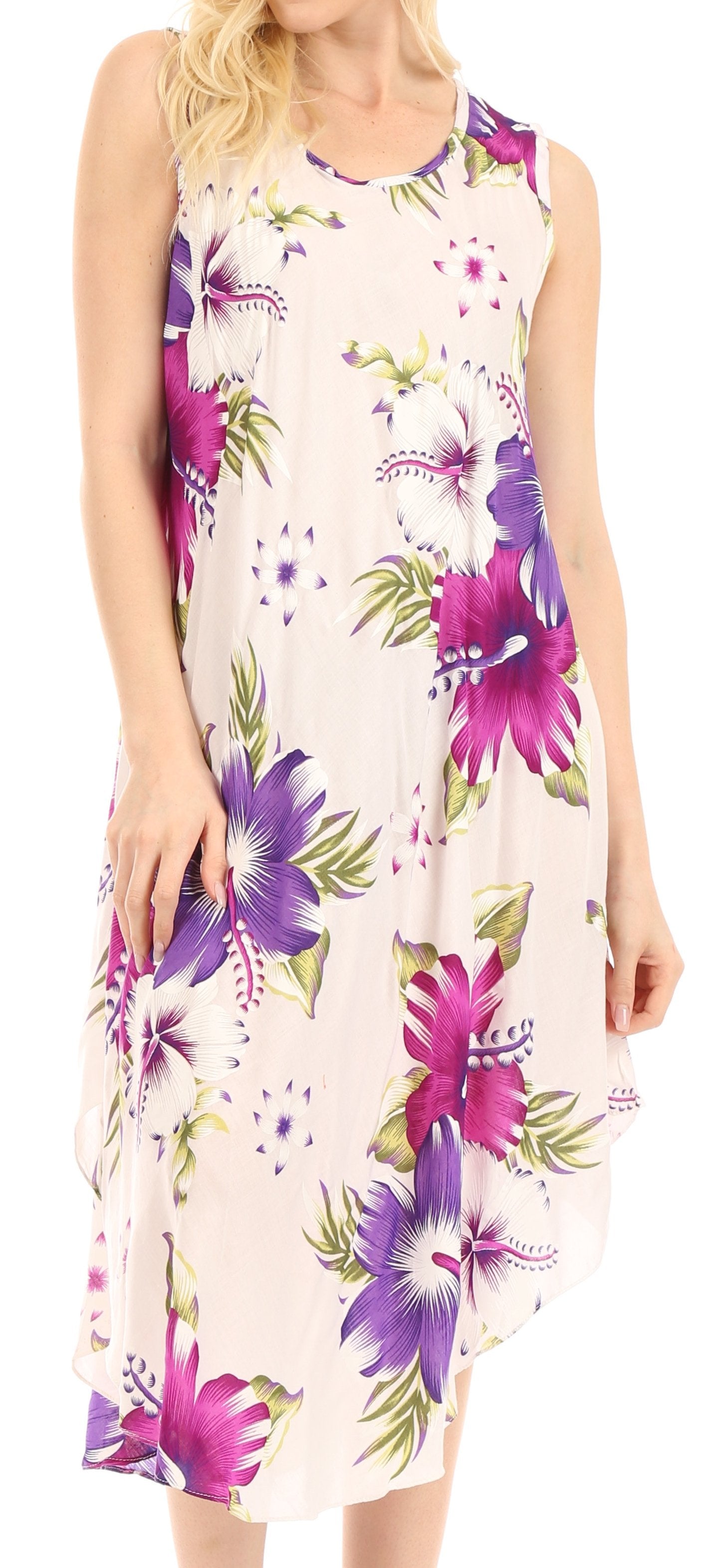 Sakkas Clara Women's Casual Summer Sleeveless Sundress Loose Floral Print Dress