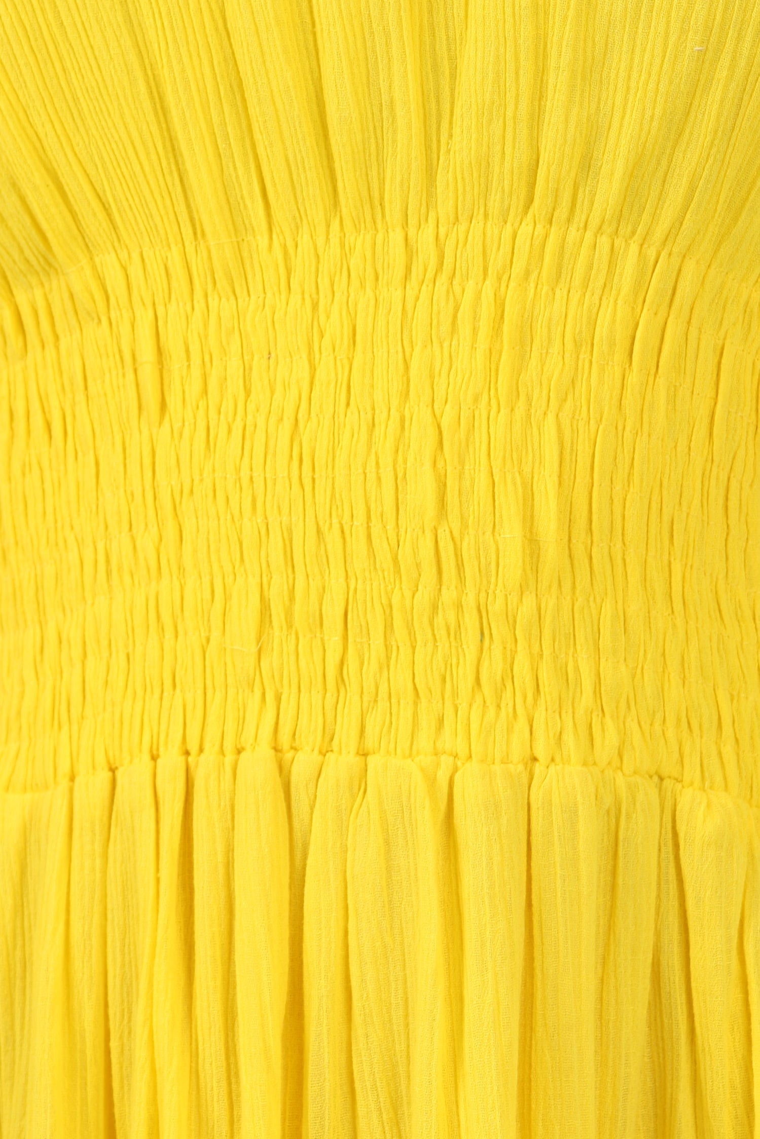 Lightweight textured cotton crepe dress features a smocked waist and neckline, tiered full skirt and beautiful solid colors.