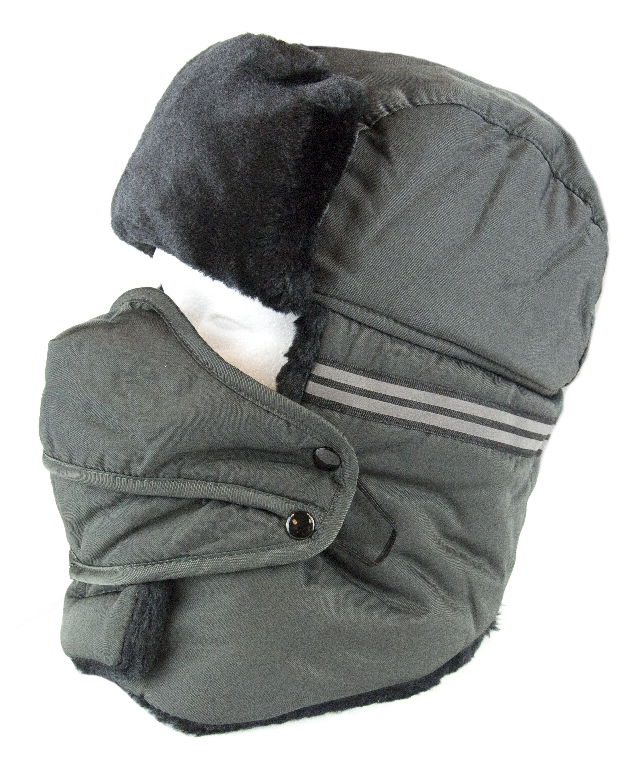 Sakkas Dab Unisex Faux Fur Chin Strap Removable Face Mask Winter Cold Trooper Hat