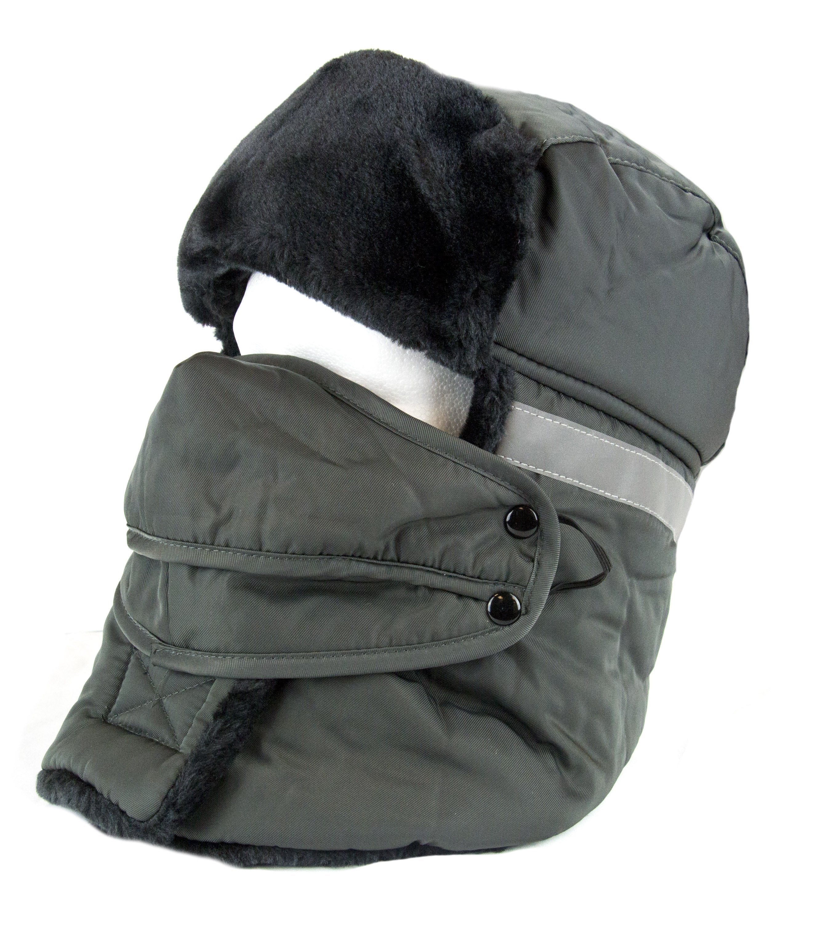 • This hat features a velcro secured chin strap, and a silver snap removable face mask with mouth opening. Face mask can be worn alone by strapping the connected snaps around the ears, or worn under, over, or connected to the mask. This hat is also windproof and weatherproof with faux fur lining. Provides maximum comfort, and warmth.