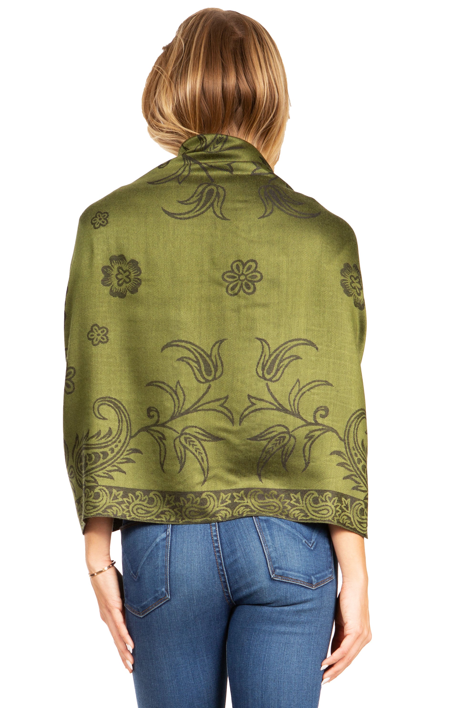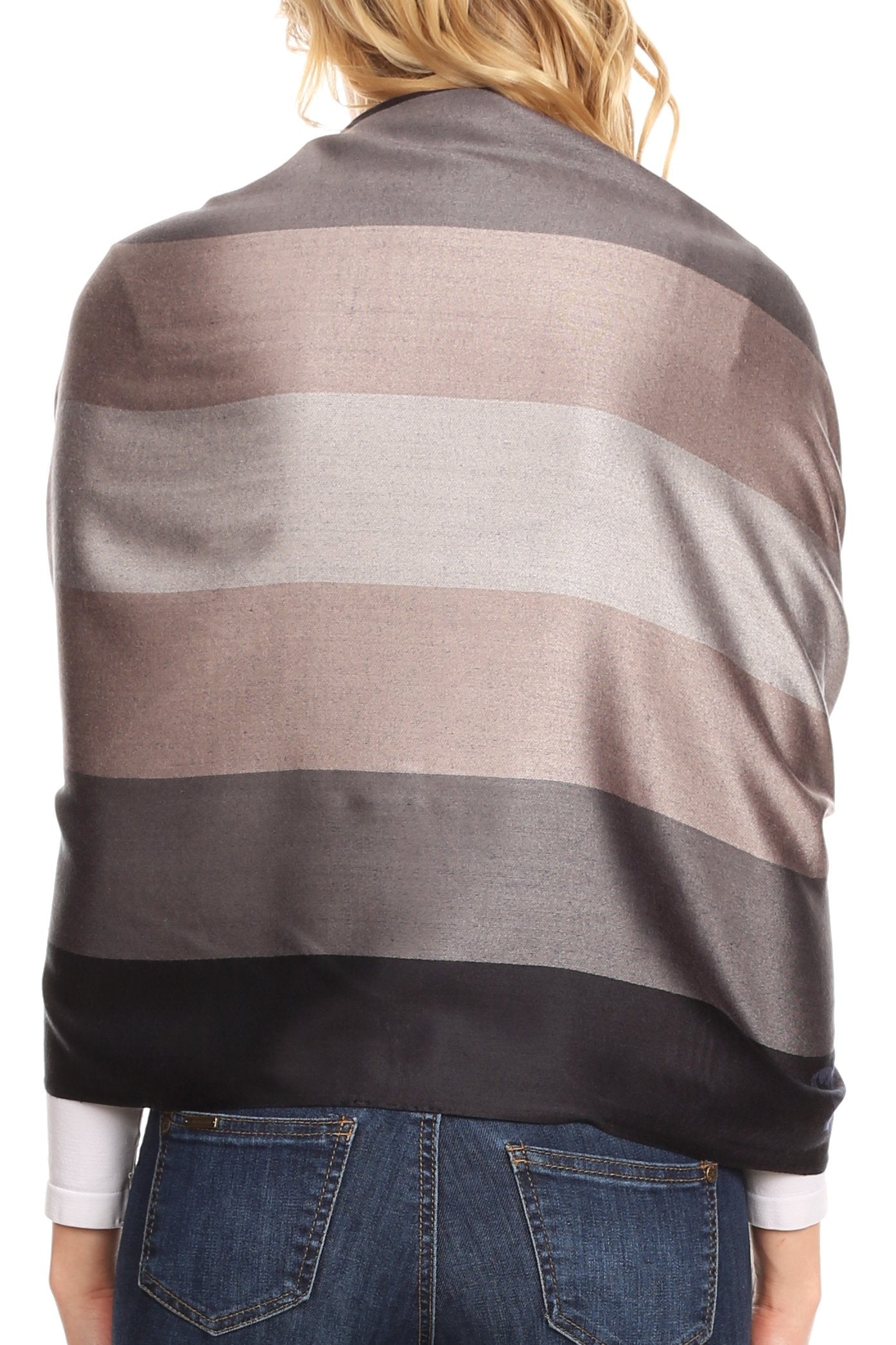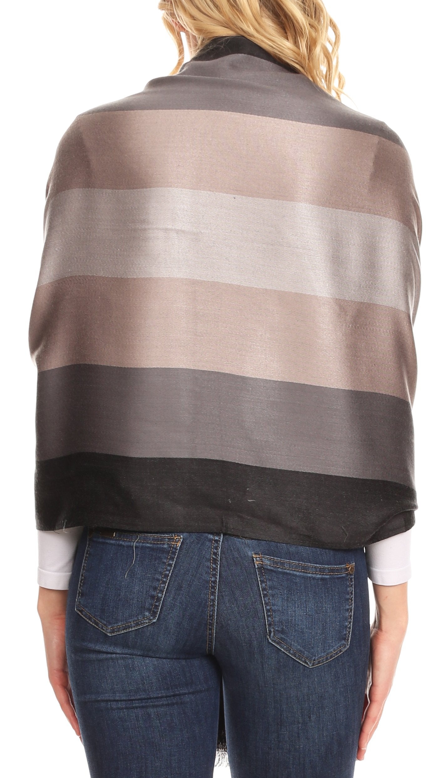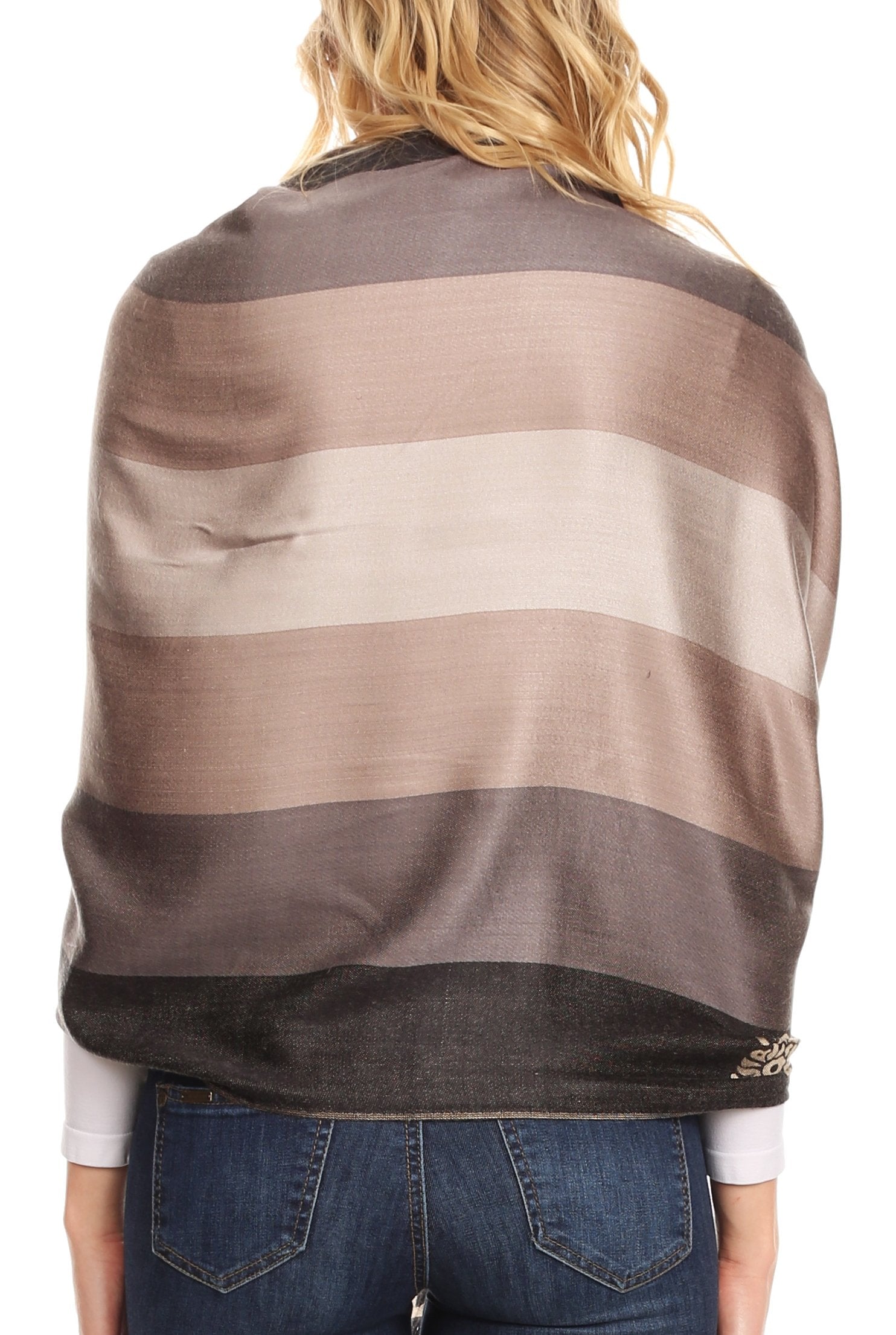 Sakkas Damari Women's Silky Soft Reversible Border Woven Pashmina Scarf Shawl Wrap