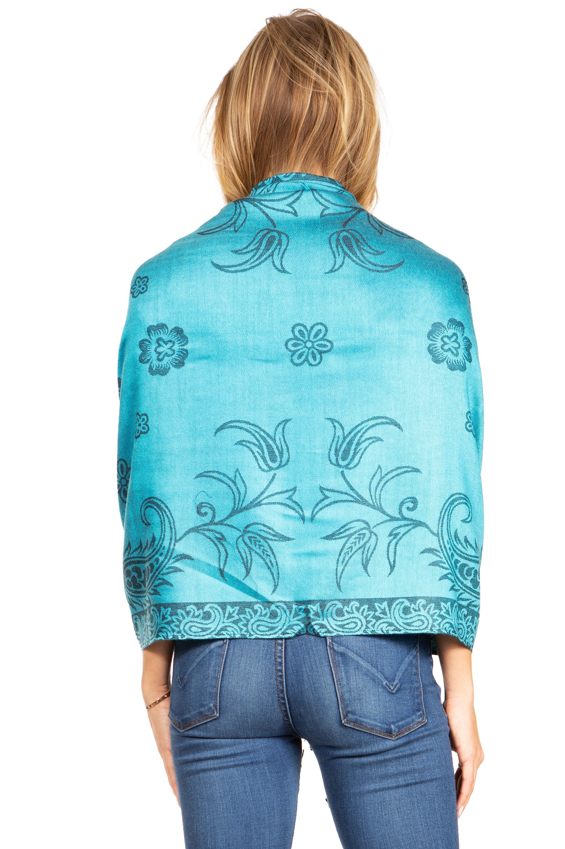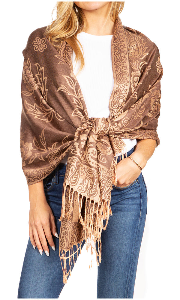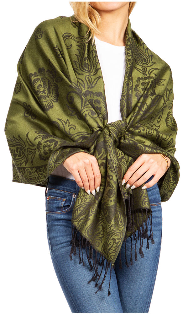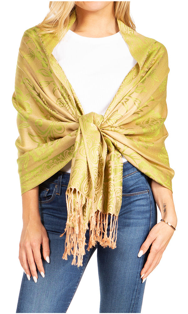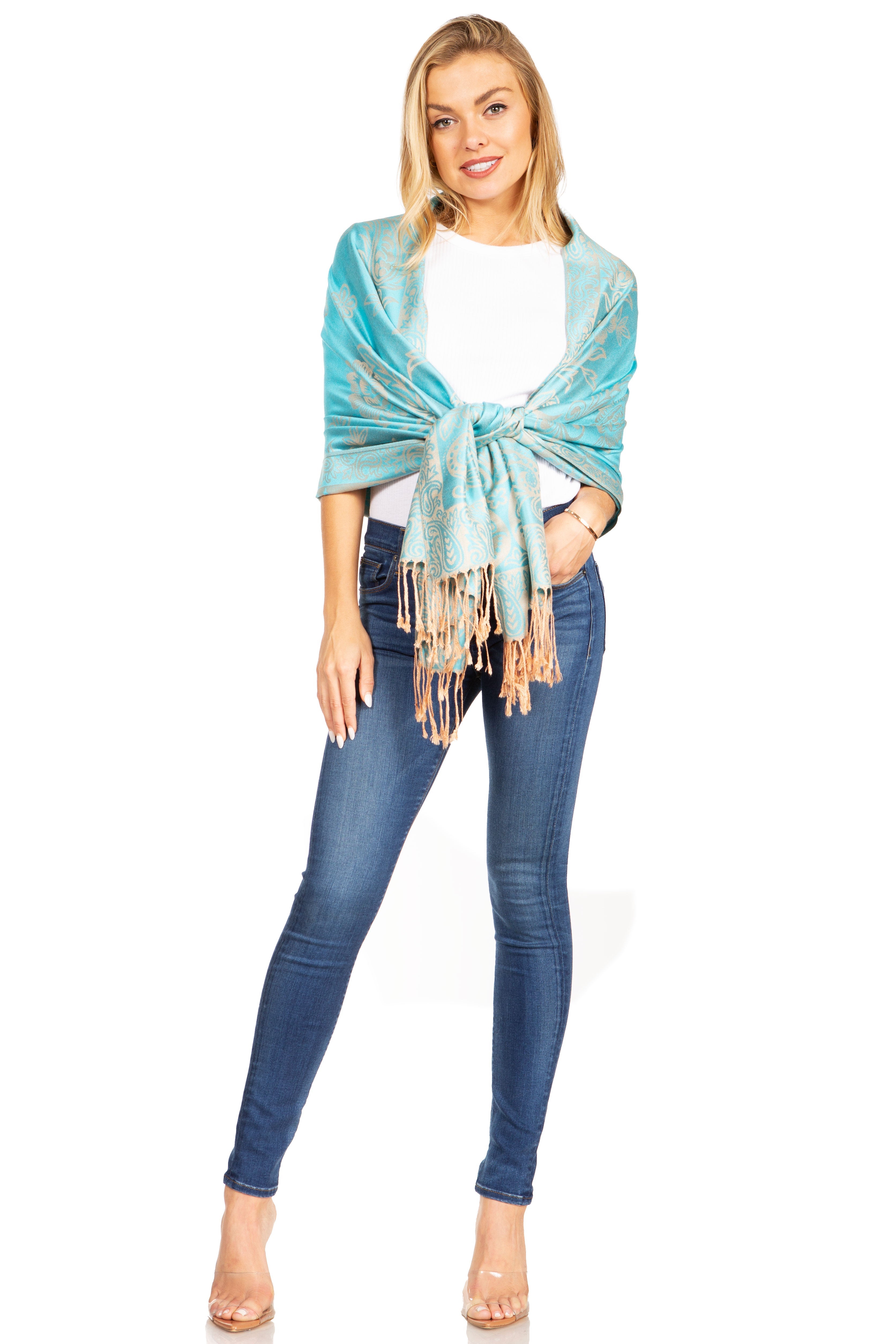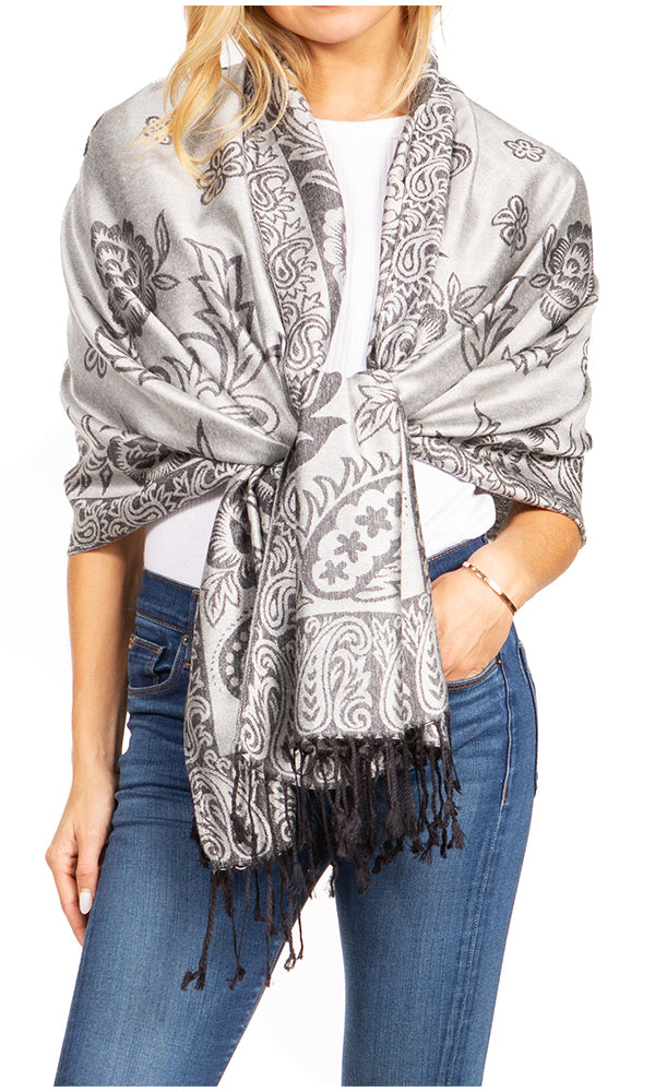 Sakkas Damari Women's Silky Soft Reversible Border Woven Pashmina Scarf Shawl Wrap