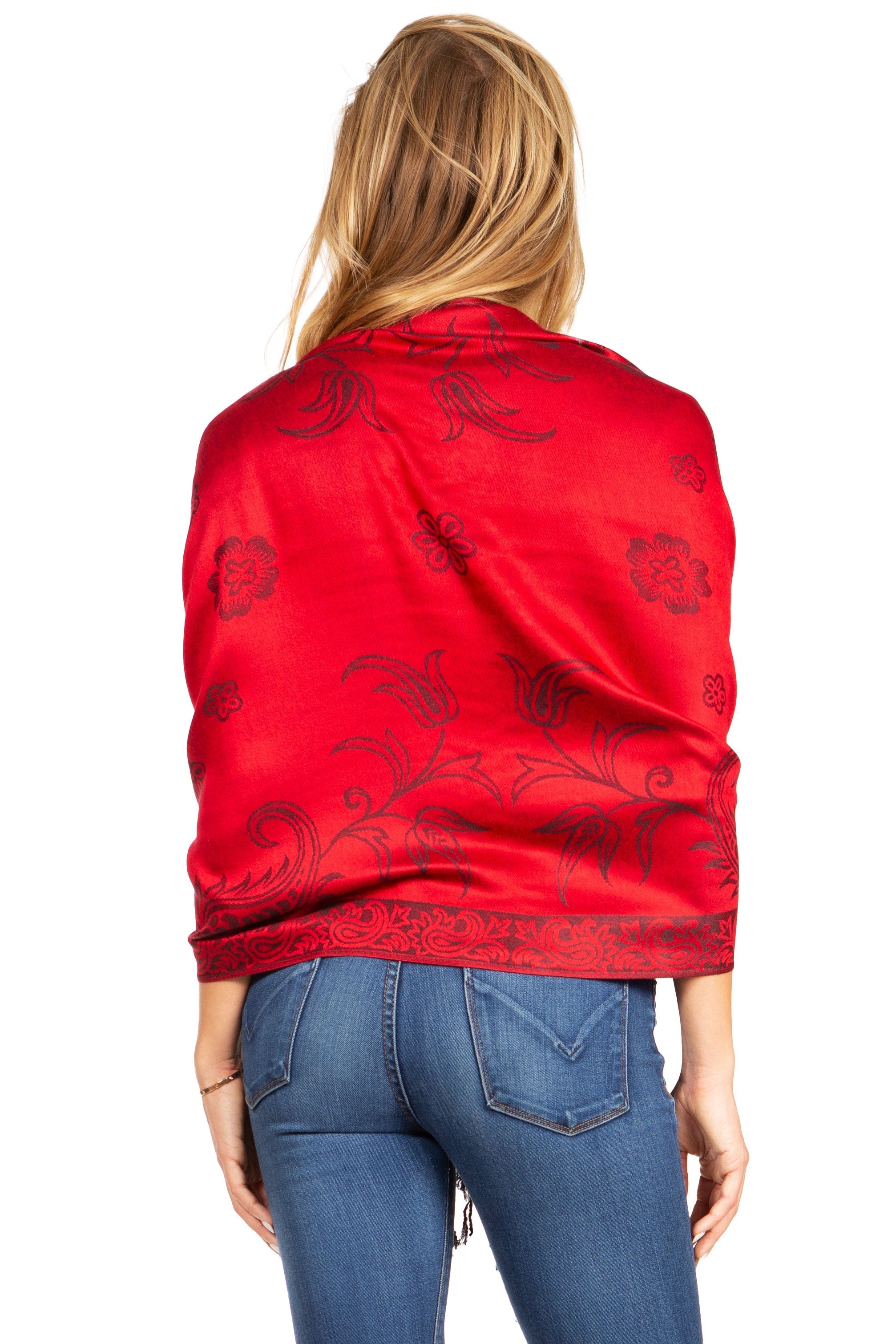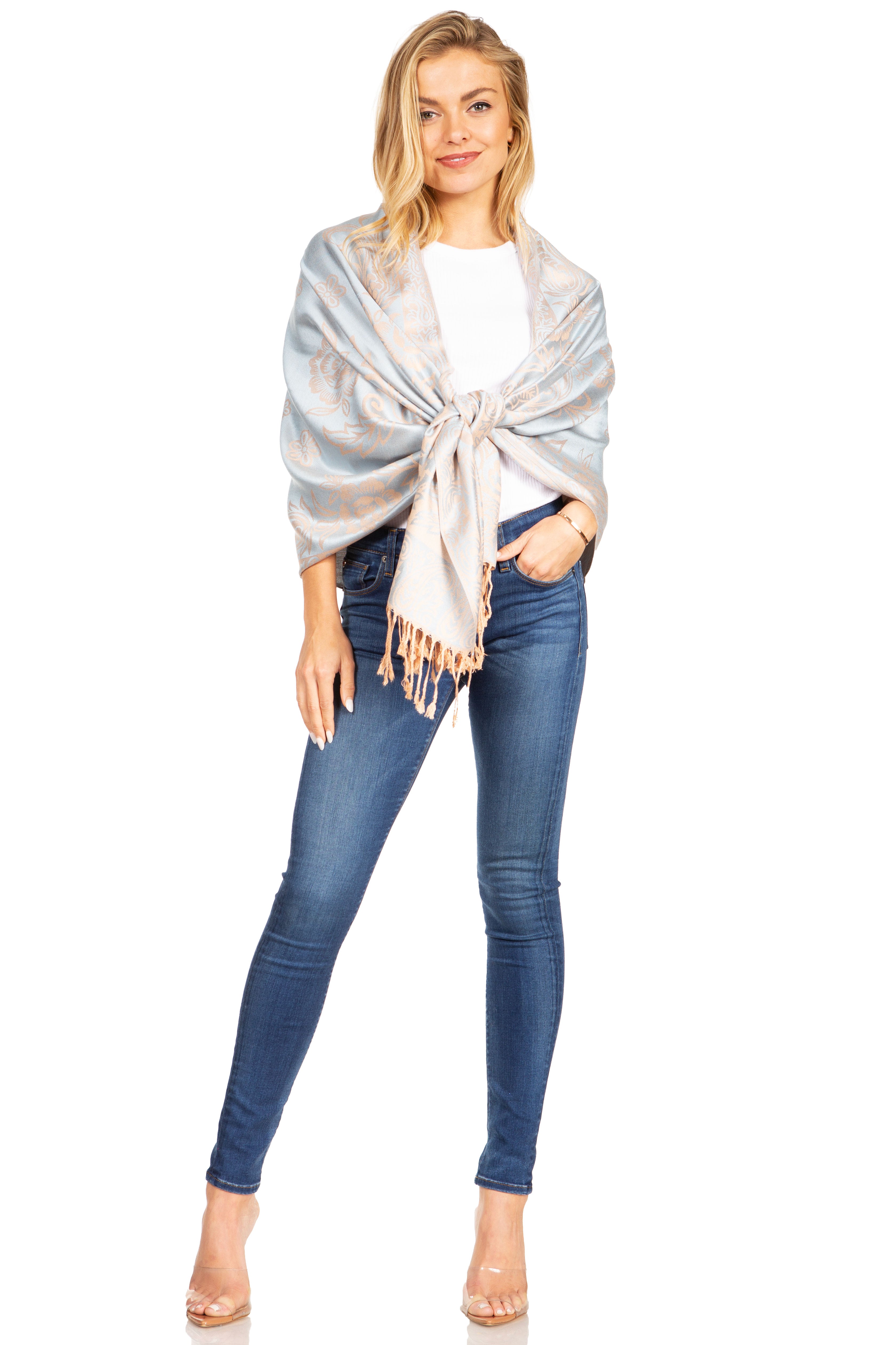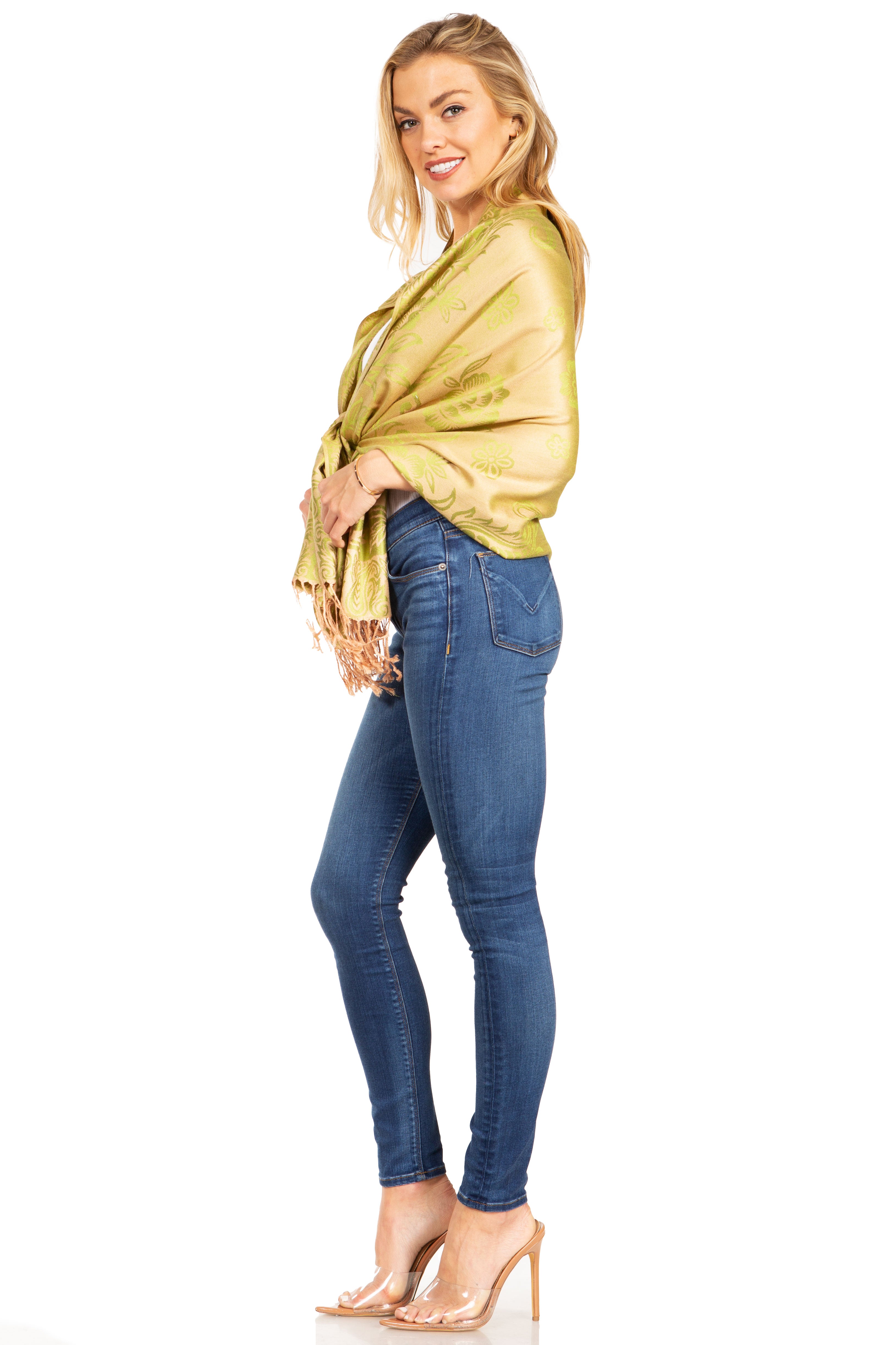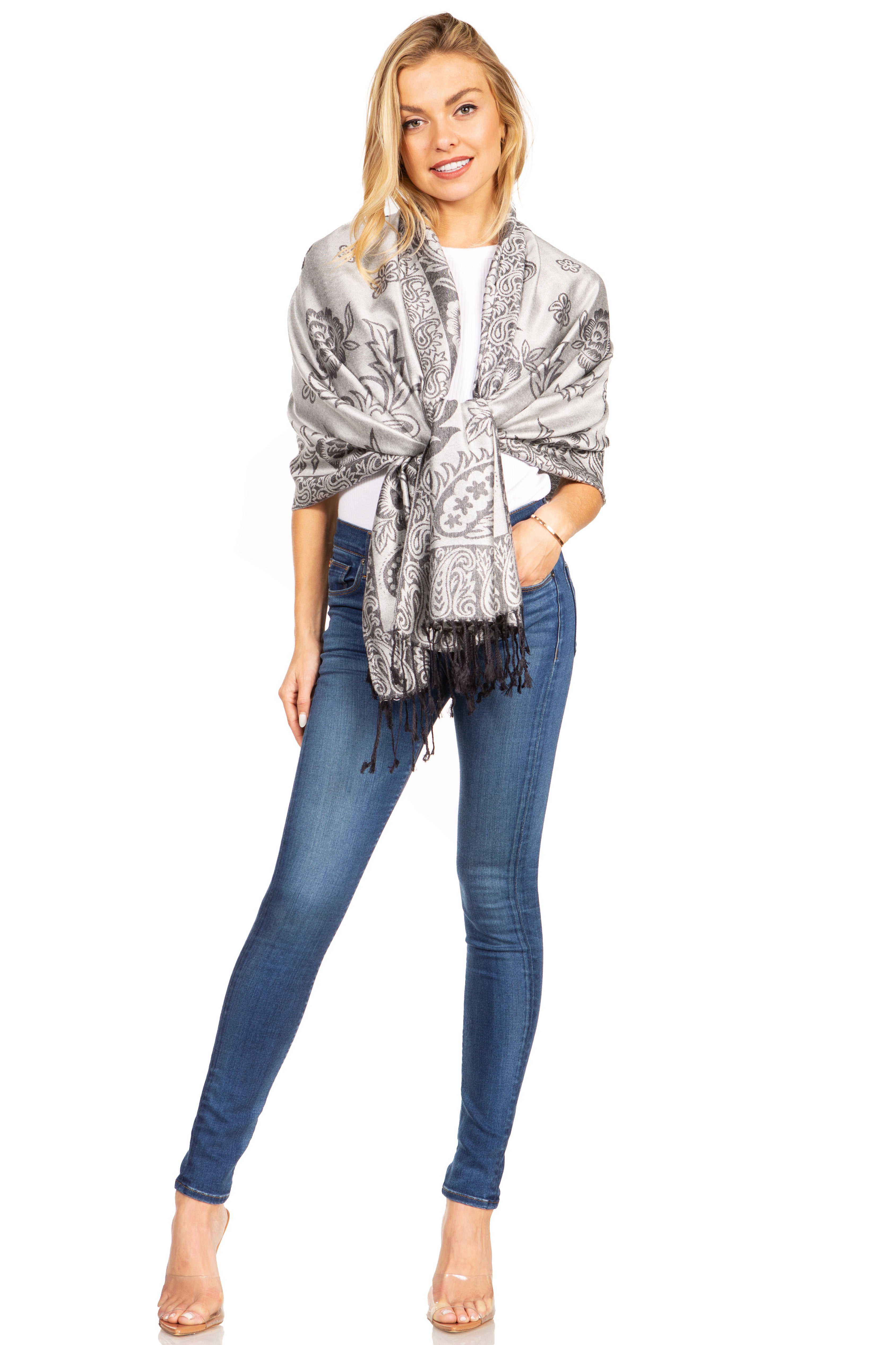 Sakkas Damari Women's Silky Soft Reversible Border Woven Pashmina Scarf Shawl Wrap