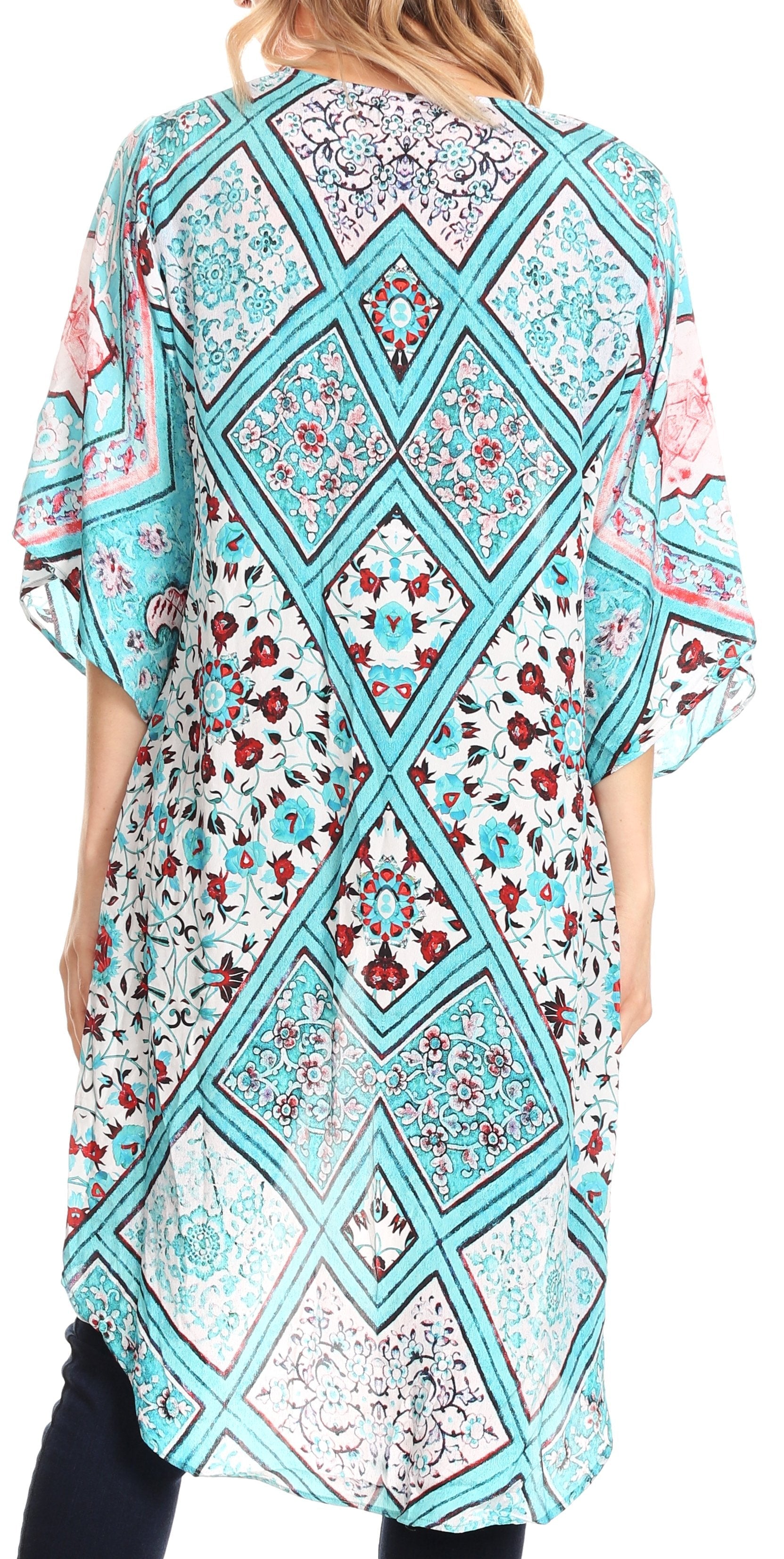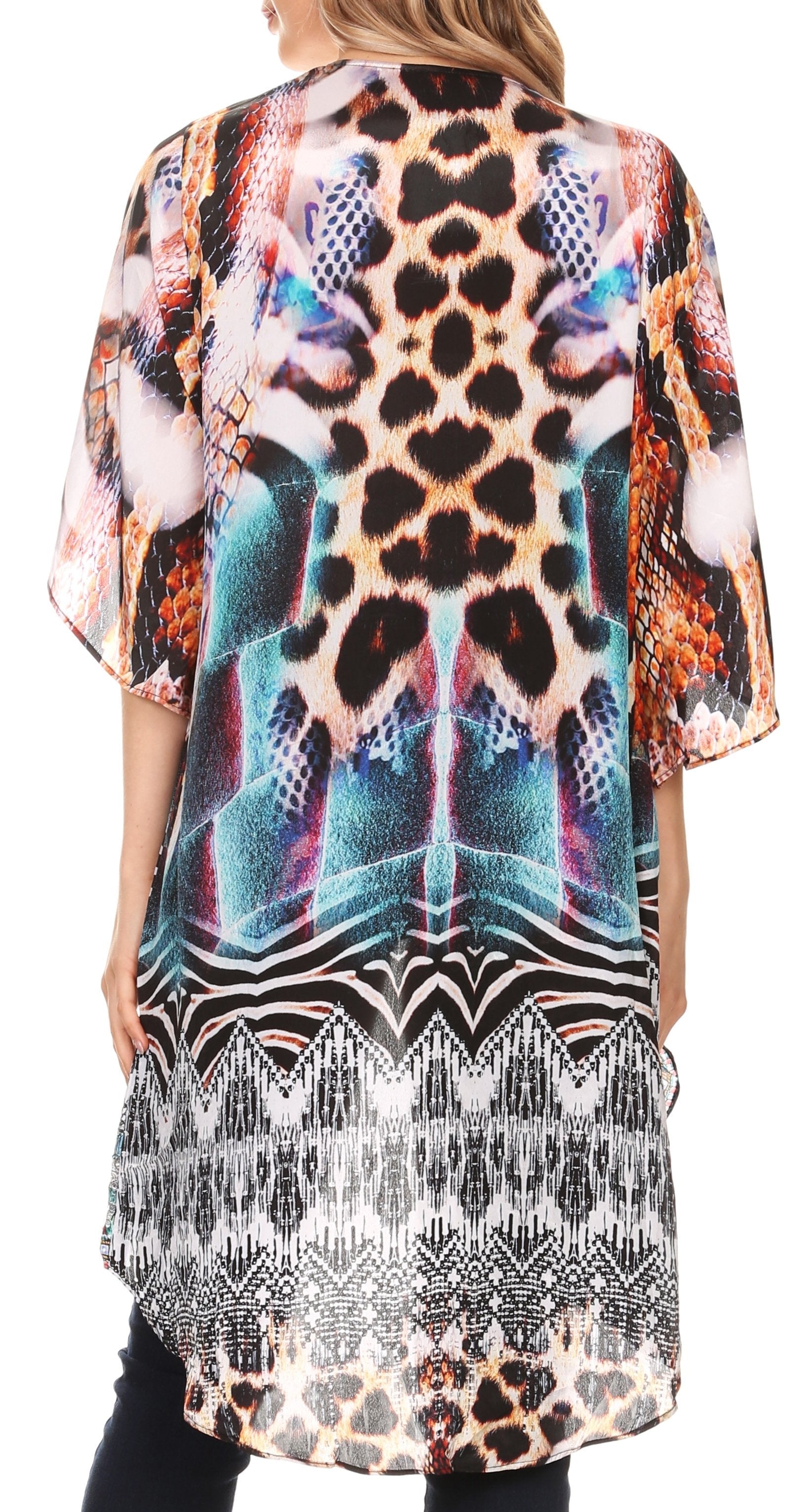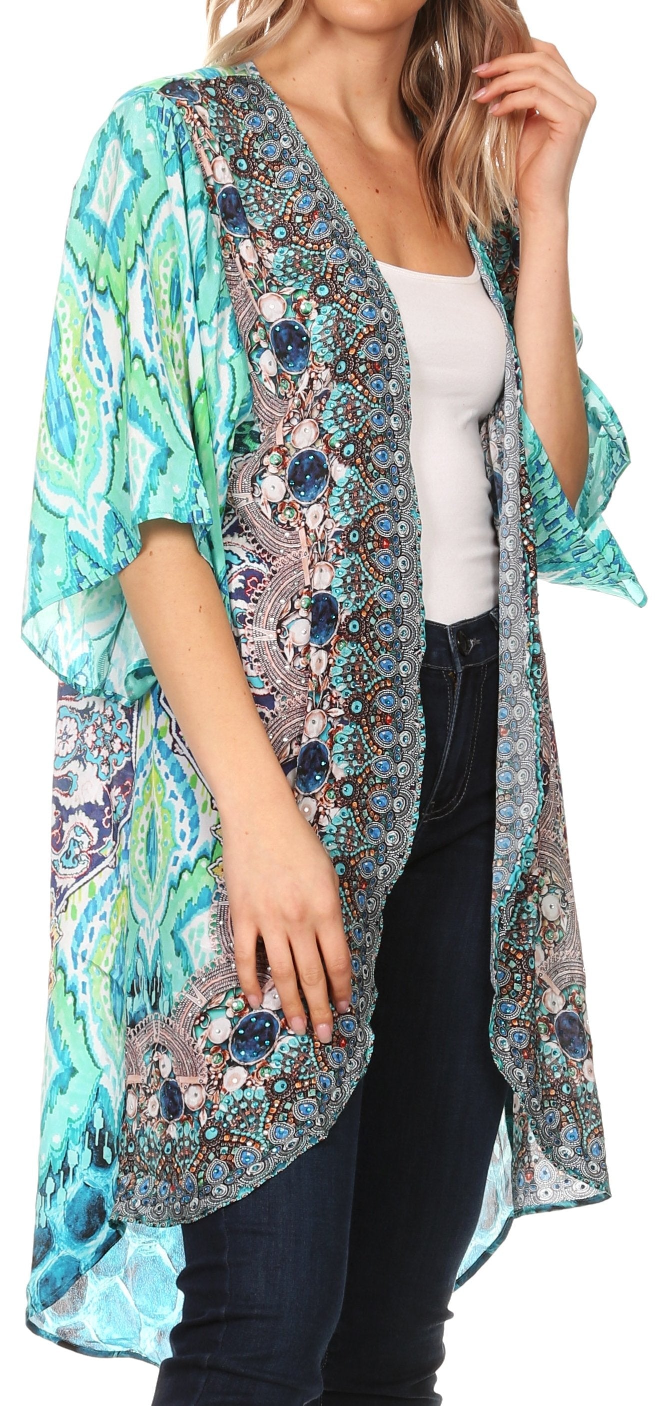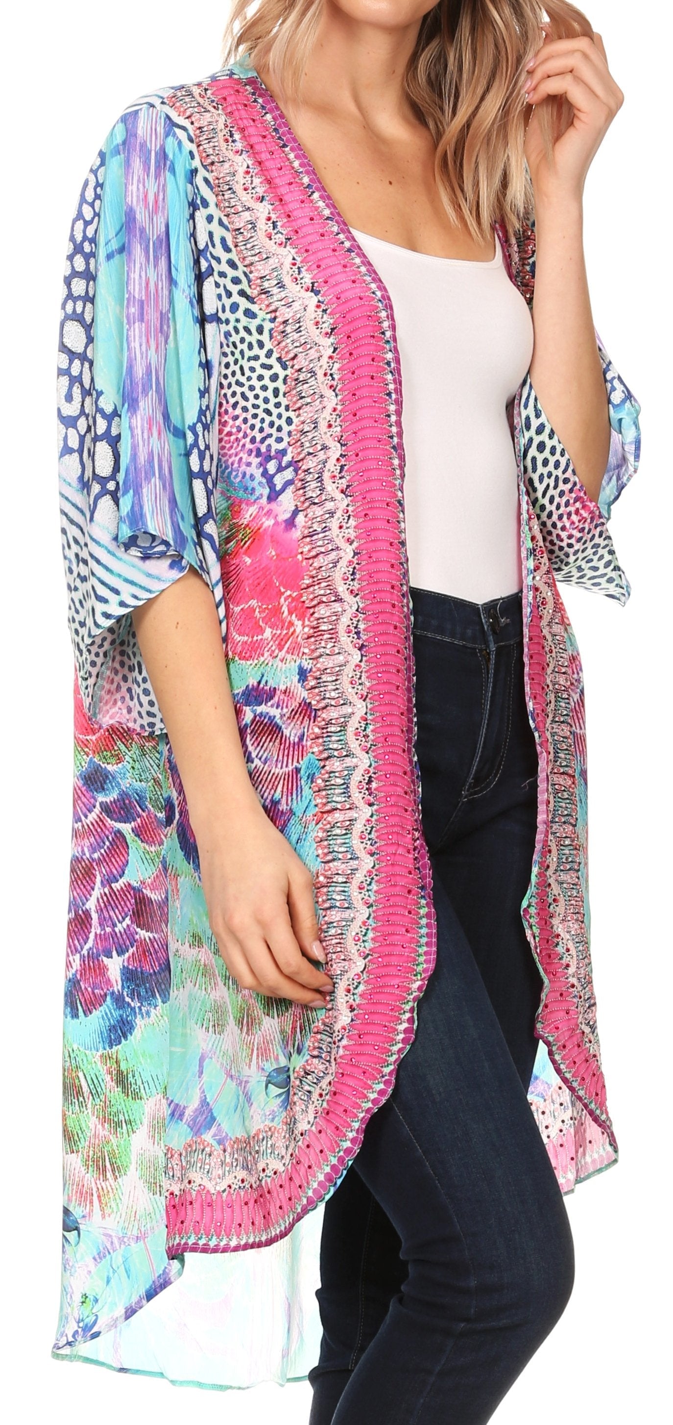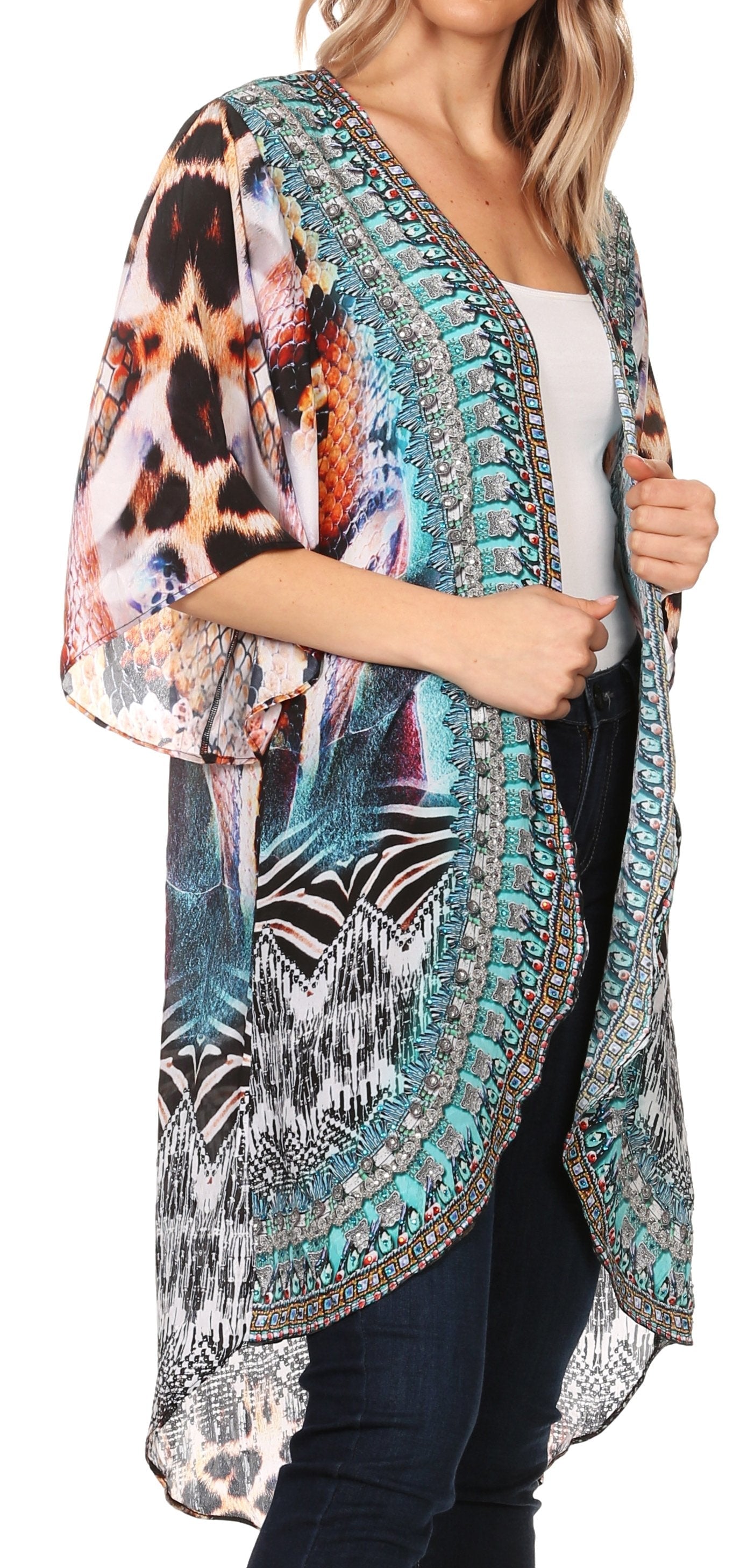 Sakkas Denora Women's Casual Draped Kimono Short Sleeve Boho Open Front Cardigan