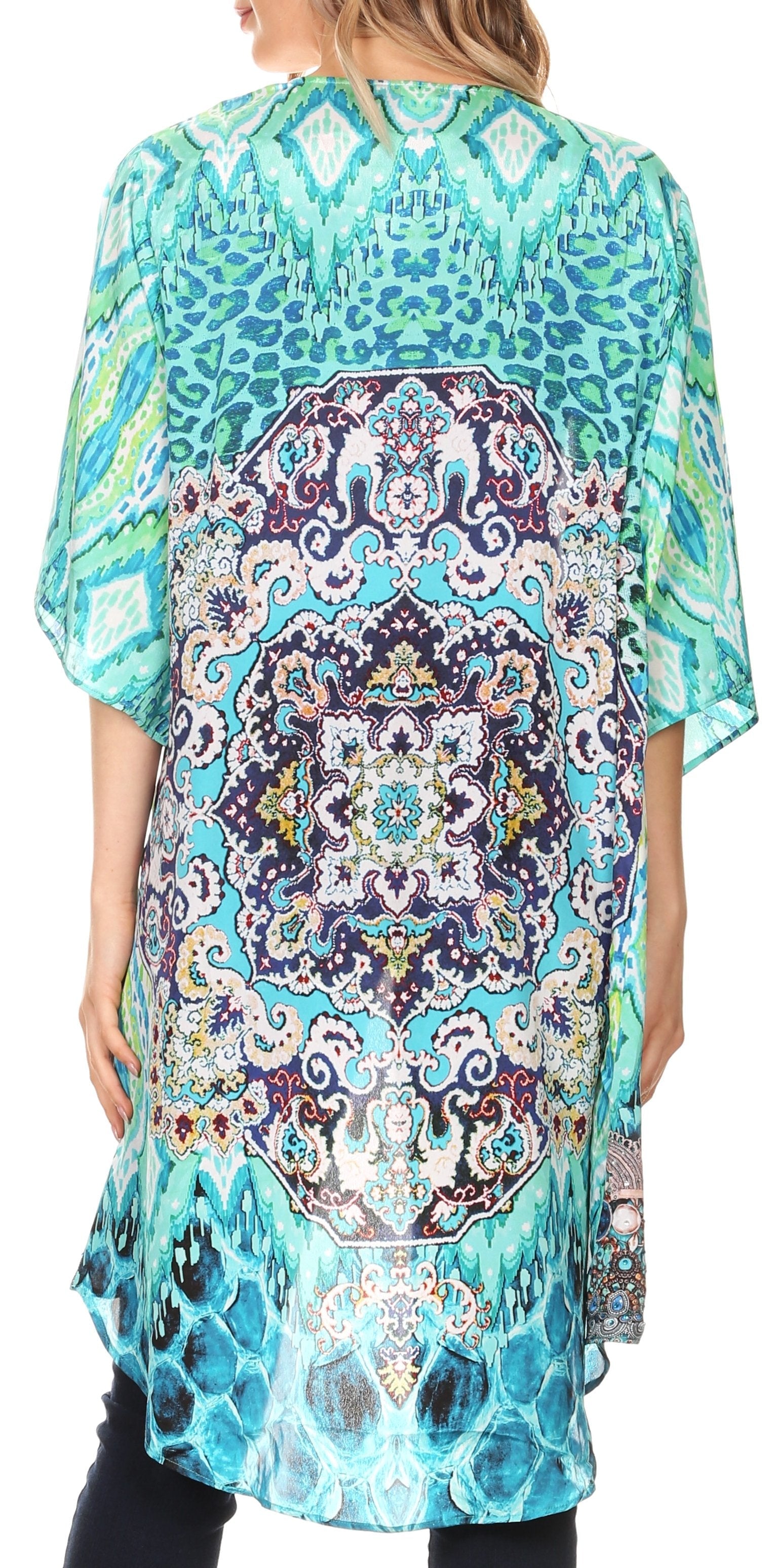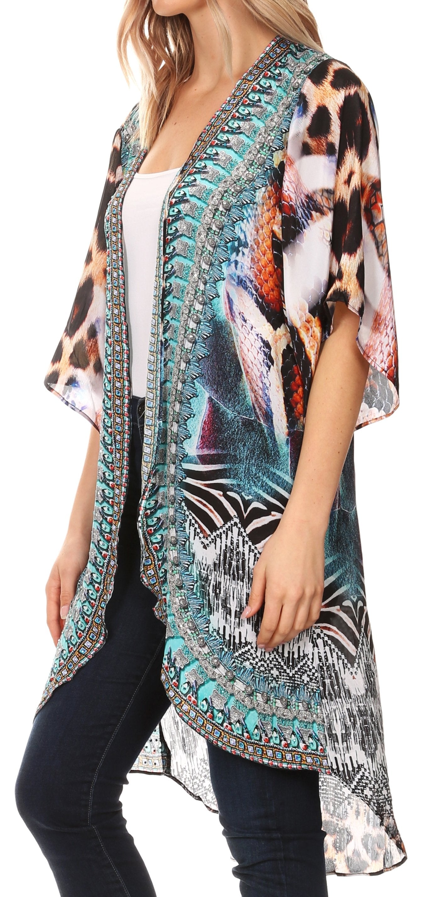 • CARDIGAN/OPEN FRONT CARDIGAN/KIMONO/TOP/CAFTAN: Denora, the perfect lightweight casual immaculate printed open front cardigan. This lovely garment features short sleeves, embellishment at front, loose/relaxed style, freely drapes, open at front. Made with super light silky feel material. Ideal for everyday wear, easily transitions from casual to formal, can also be worn as swimwear cover up! Look and feel like a goddess in any setting while wearing this gorgeous top!