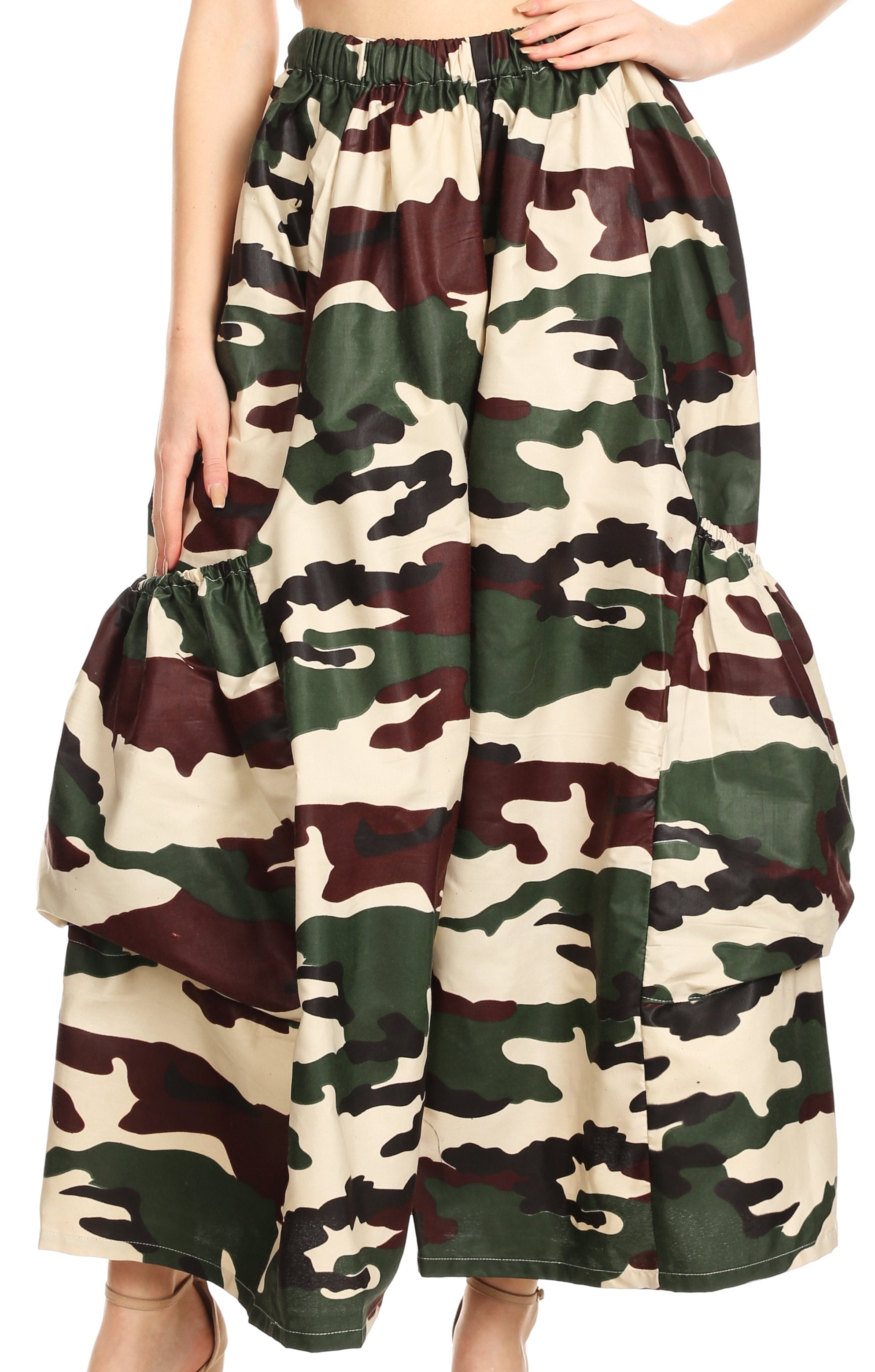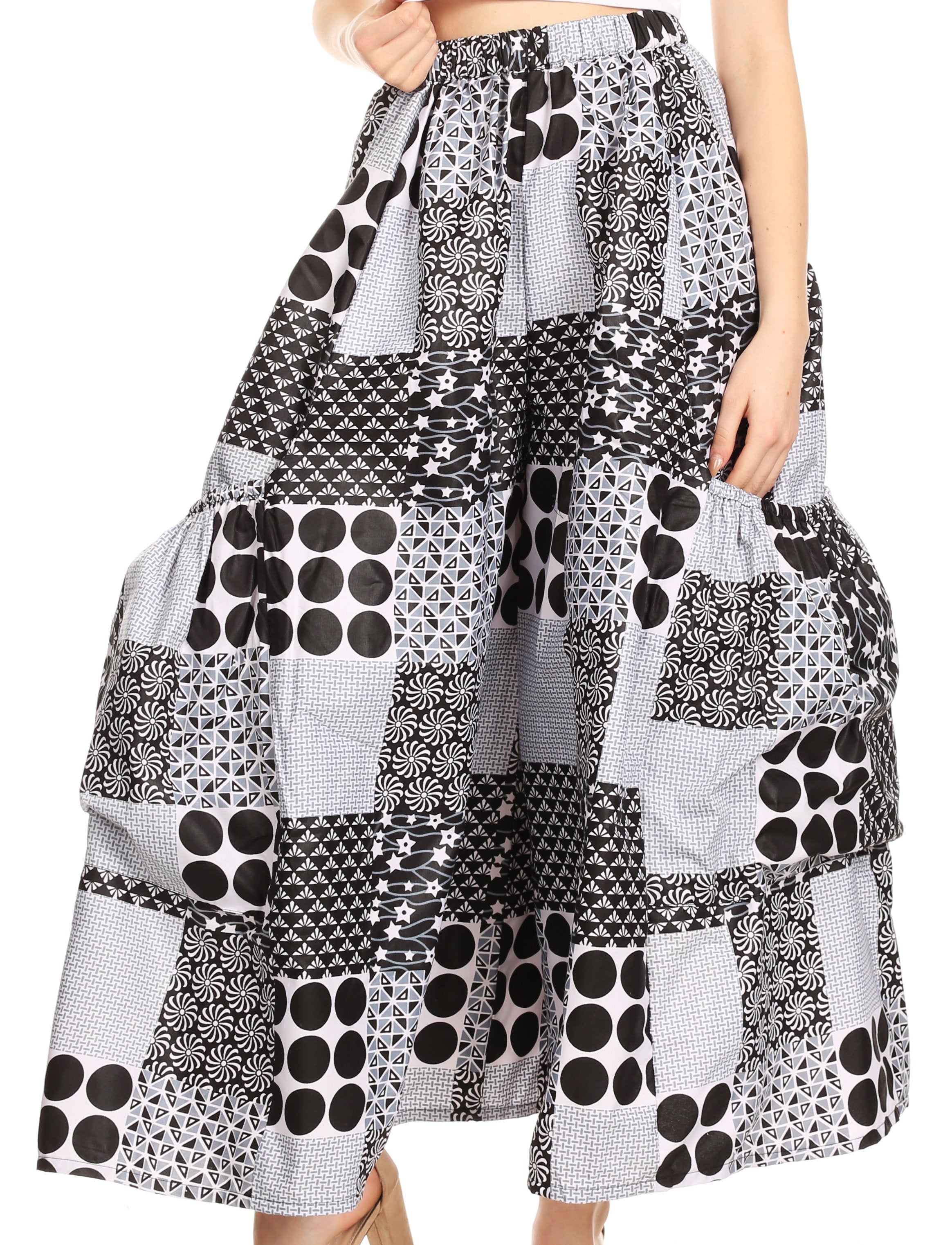Sakkas Duru Women's African Ankara Print Wide Leg Culotte Pants Elastic Waist