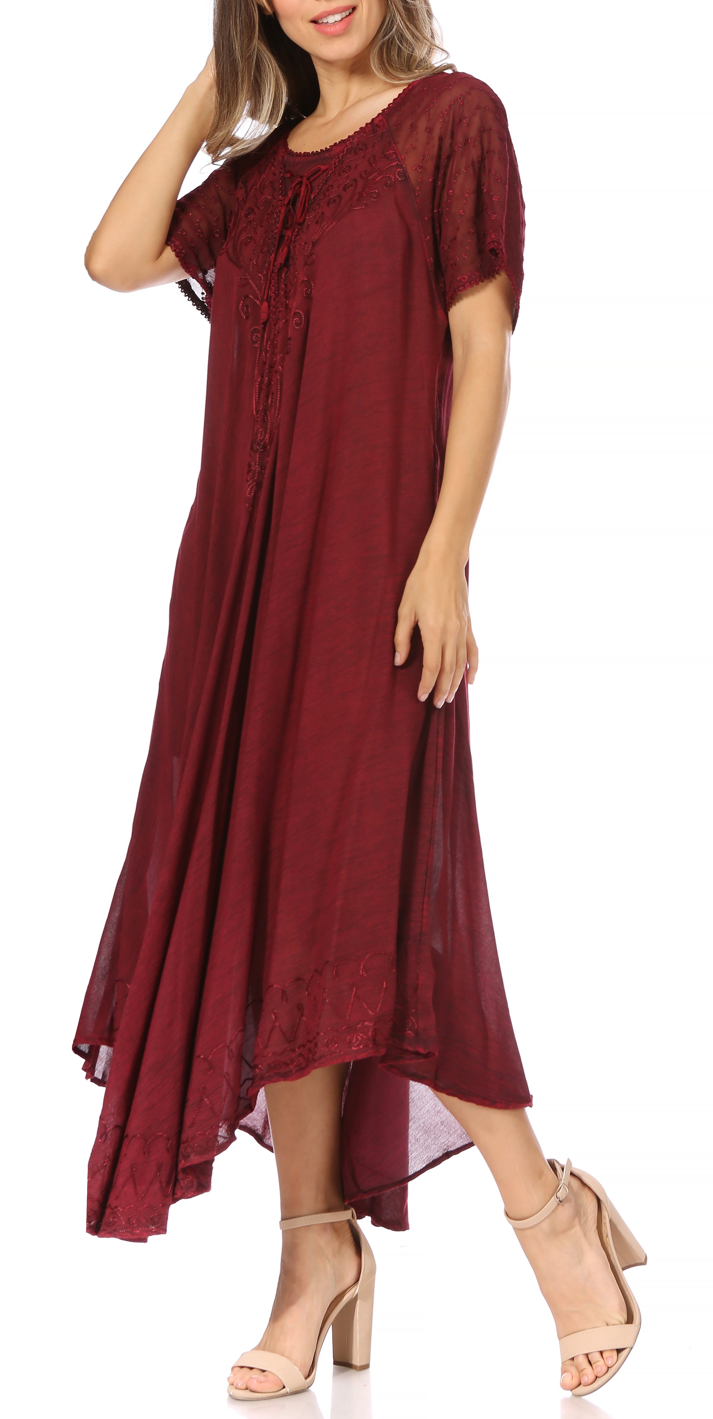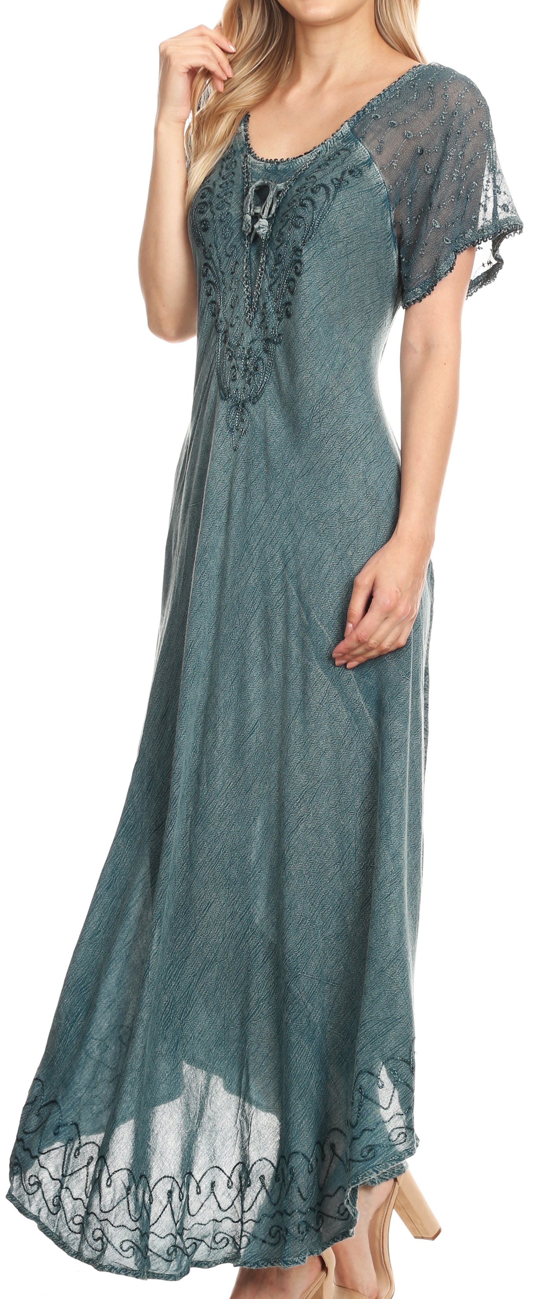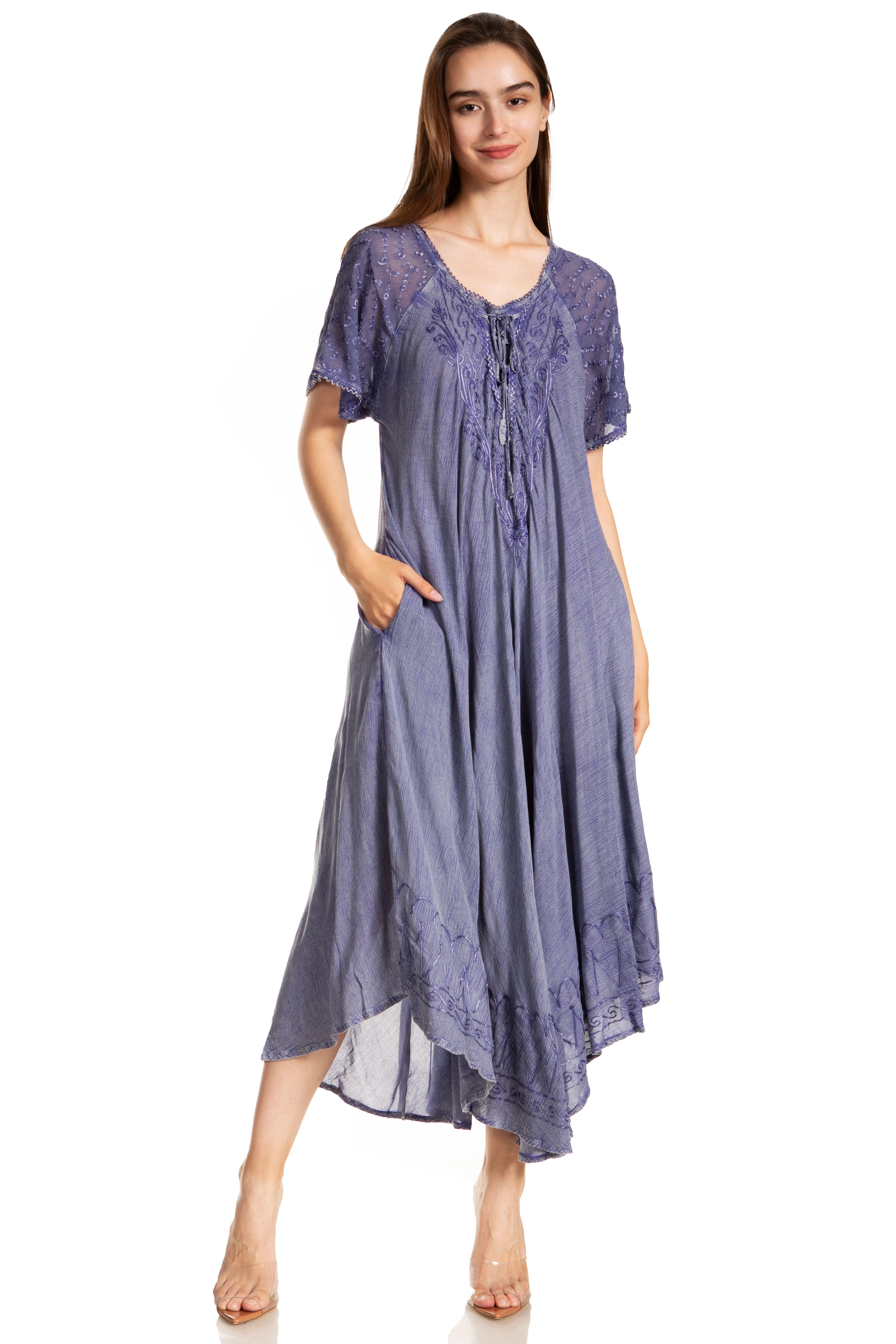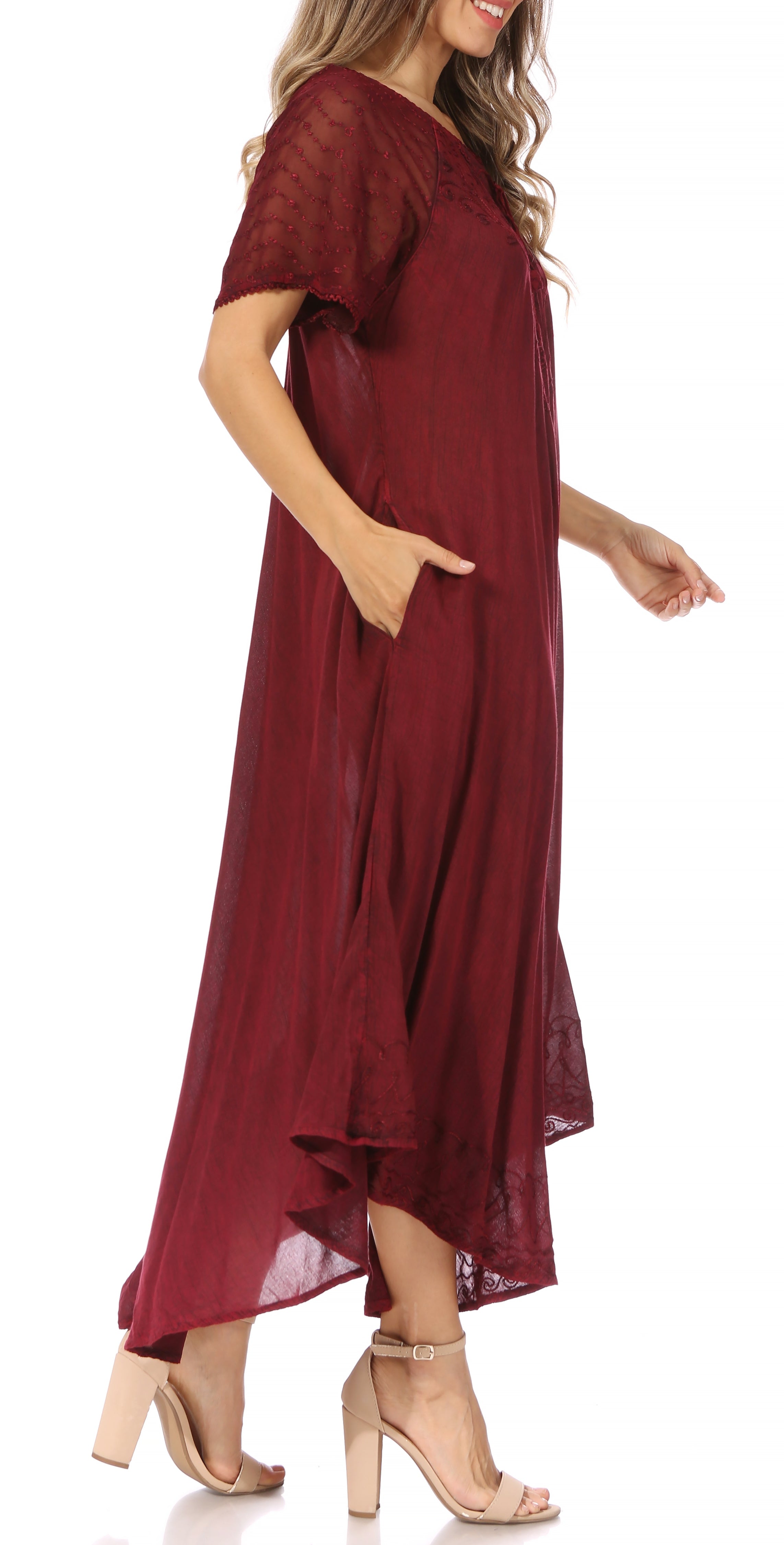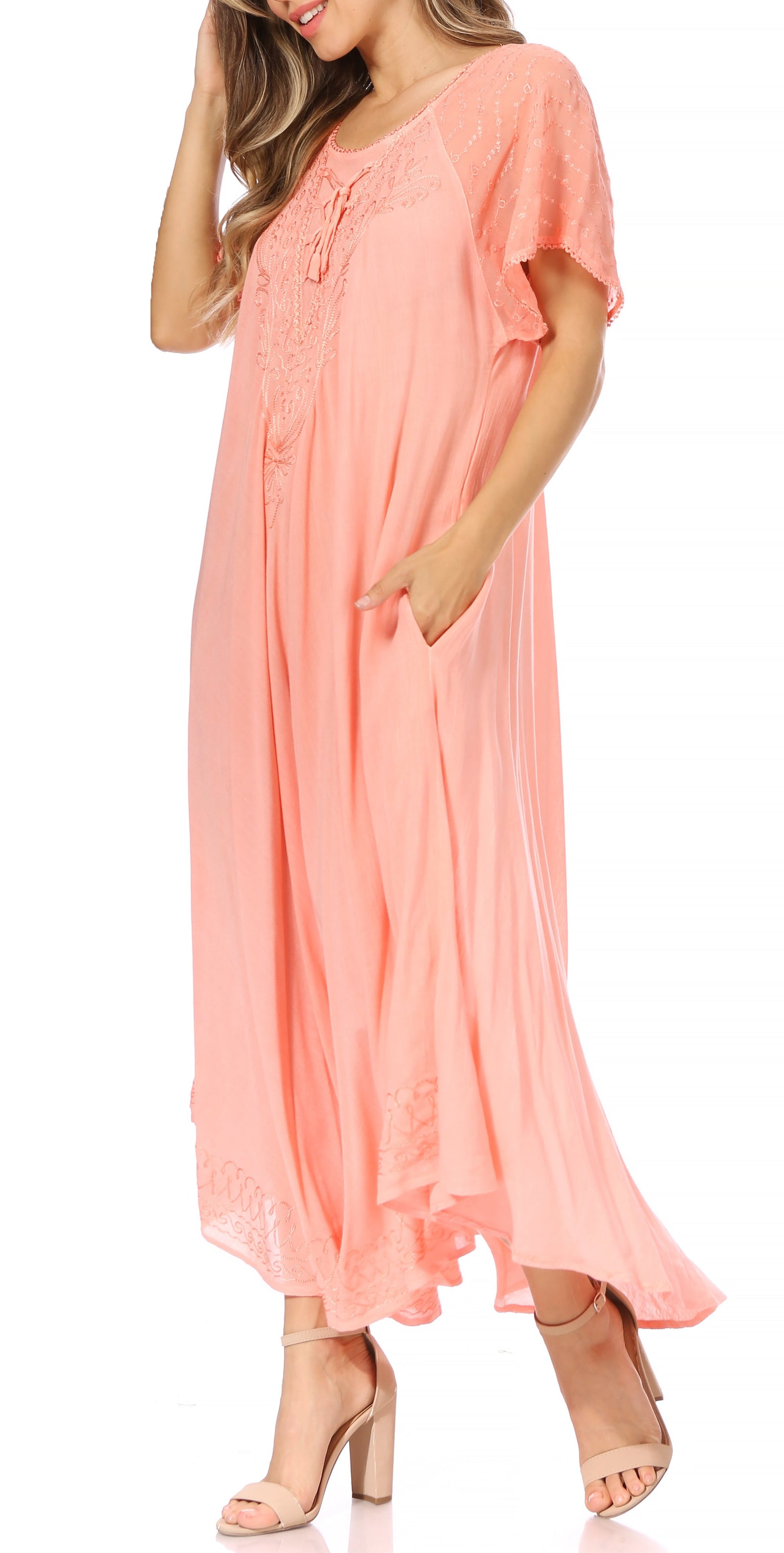 Sakkas Egan Women's Long Embroidered Caftan Dress / Cover Up With Embroidered Cap Sleeves