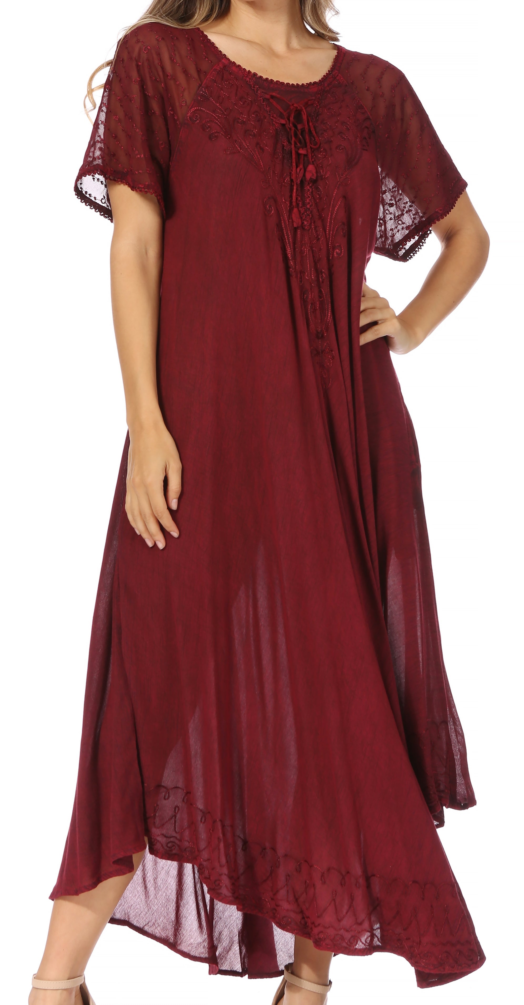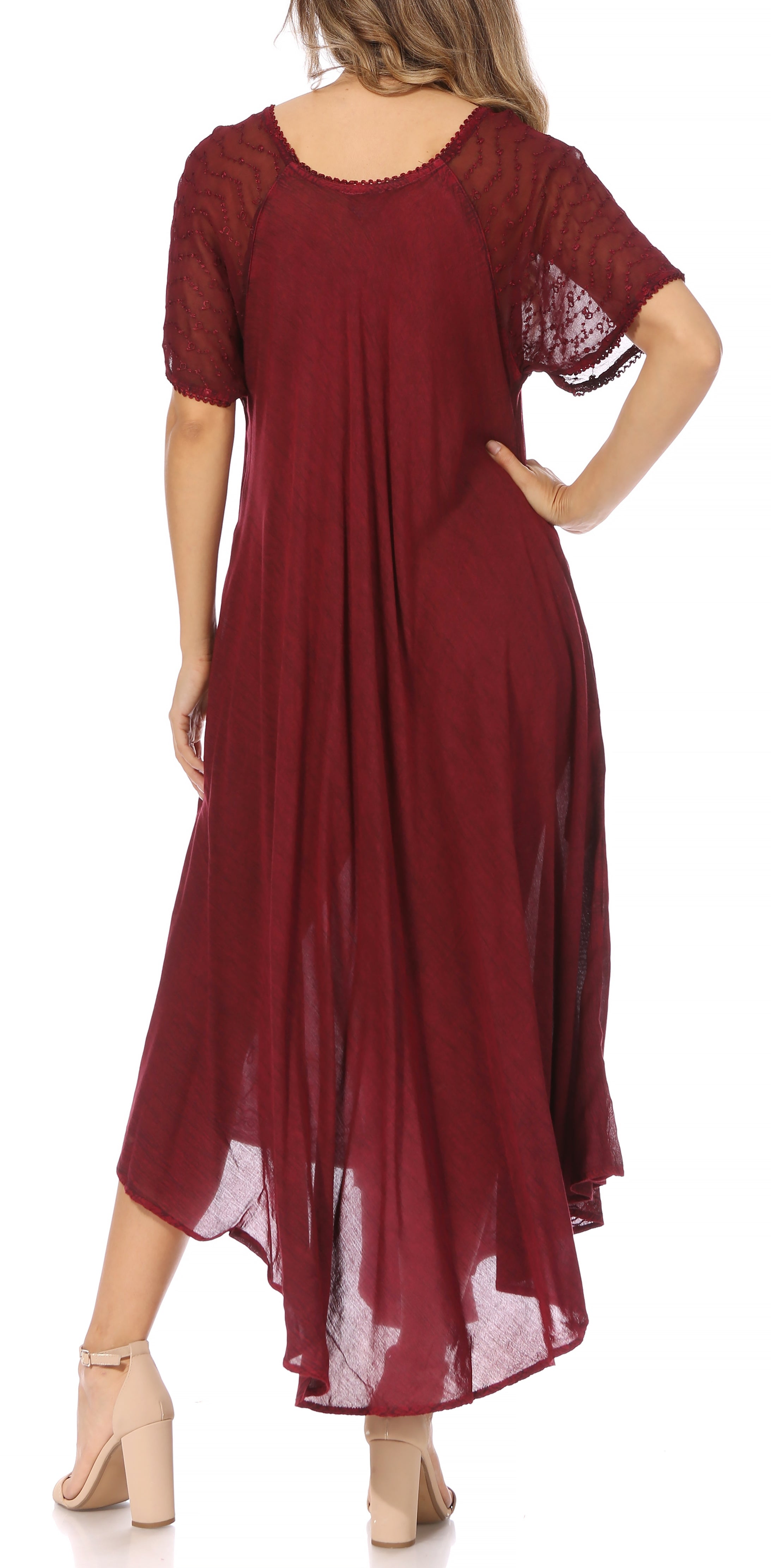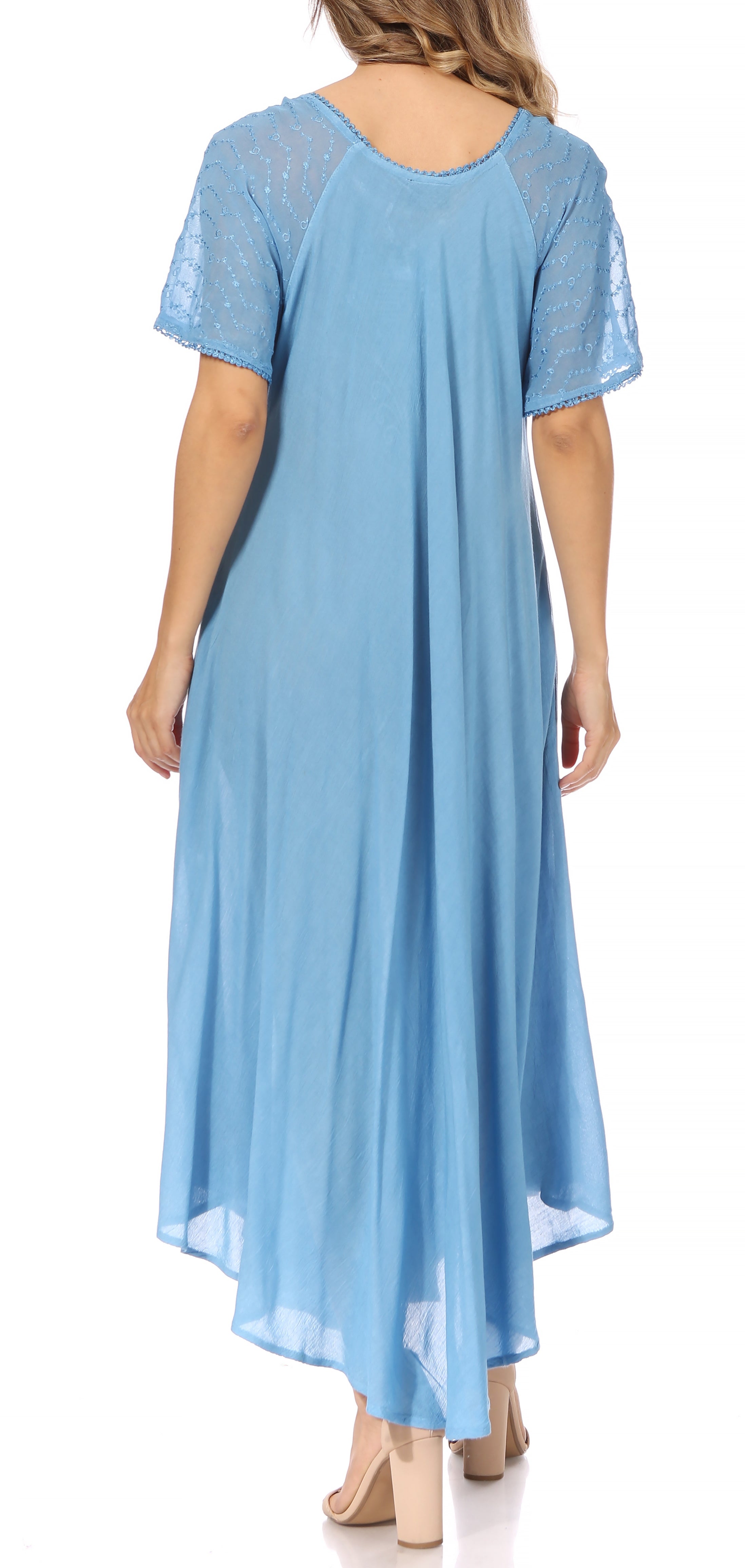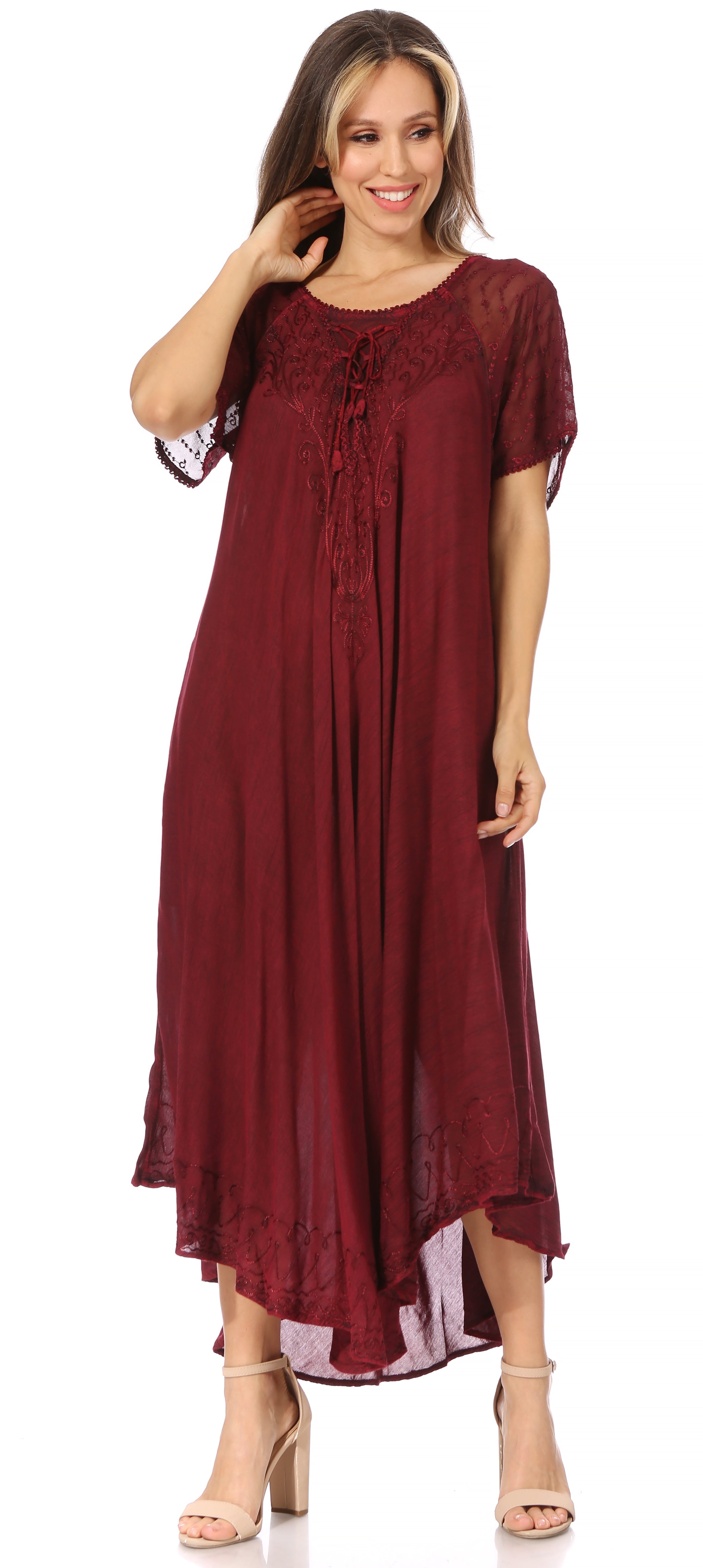 Sakkas Egan Women's Long Embroidered Caftan Dress / Cover Up With Embroidered Cap Sleeves