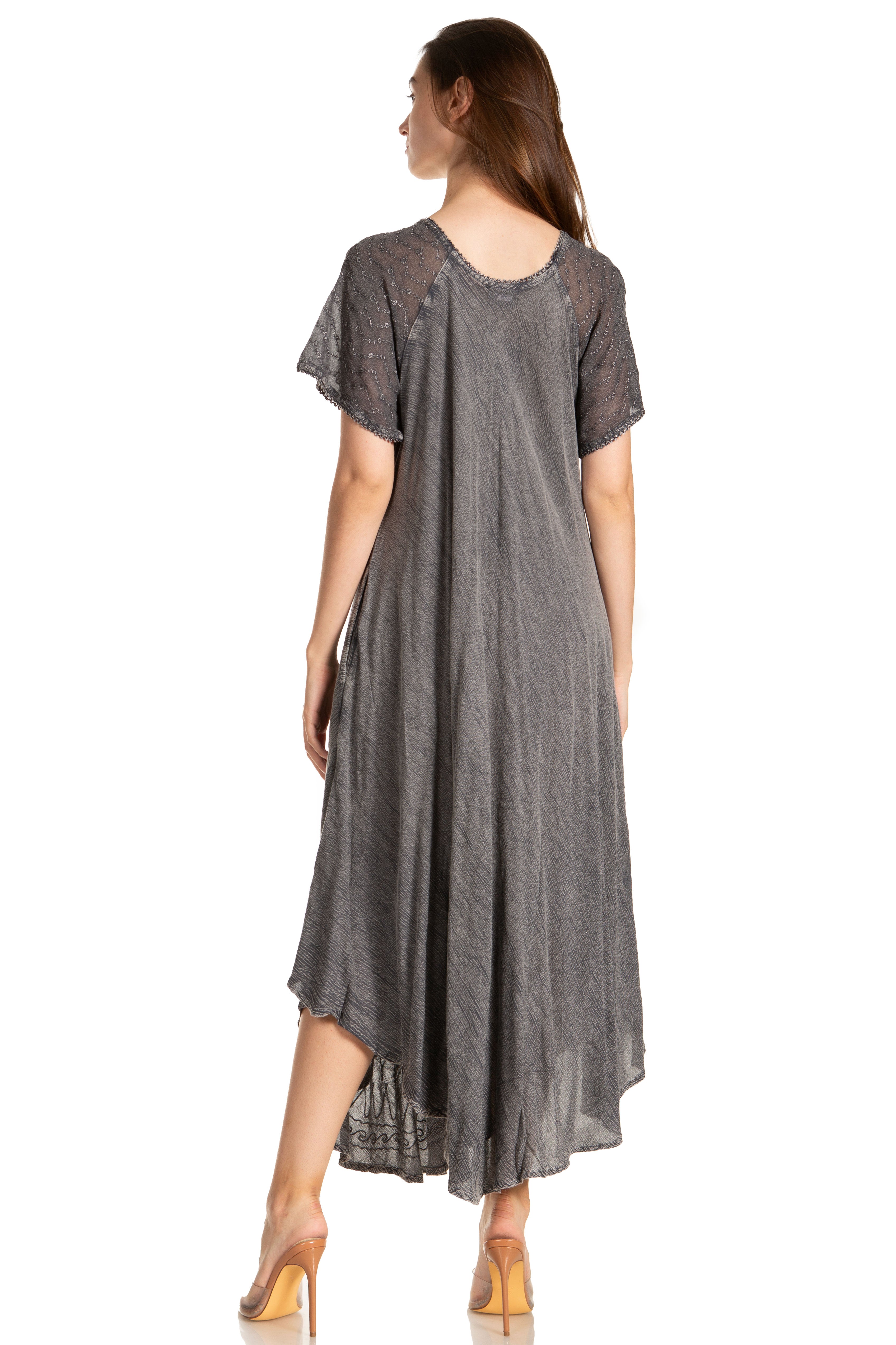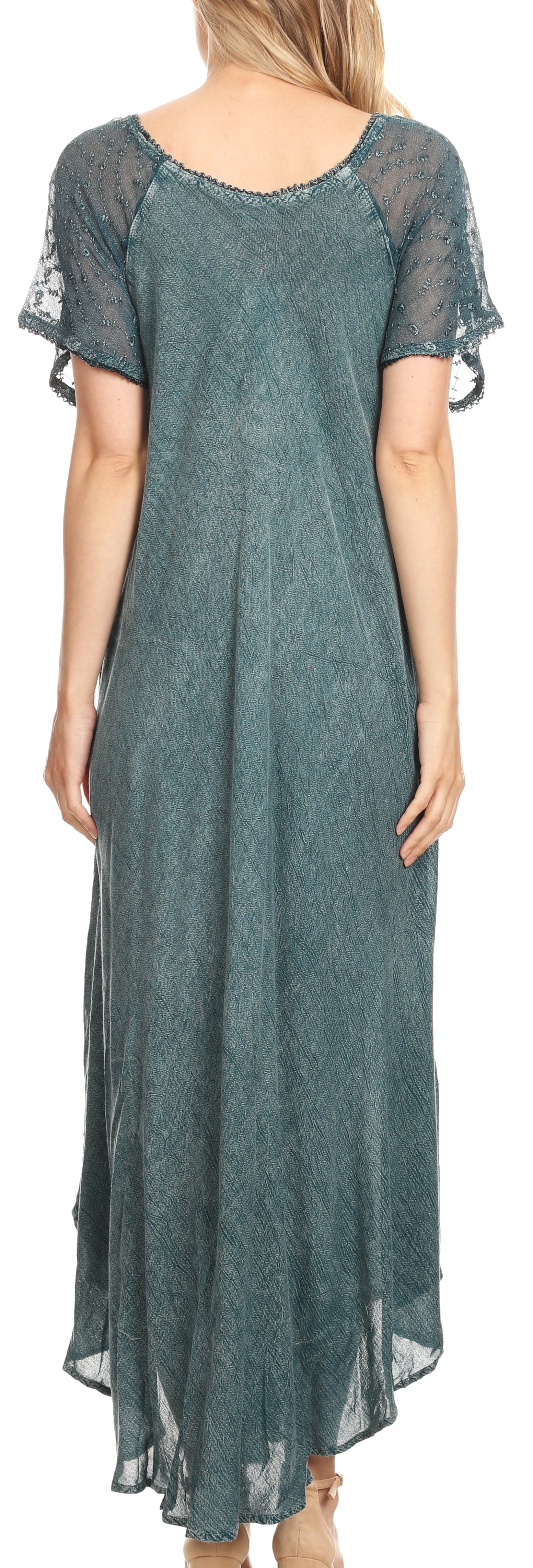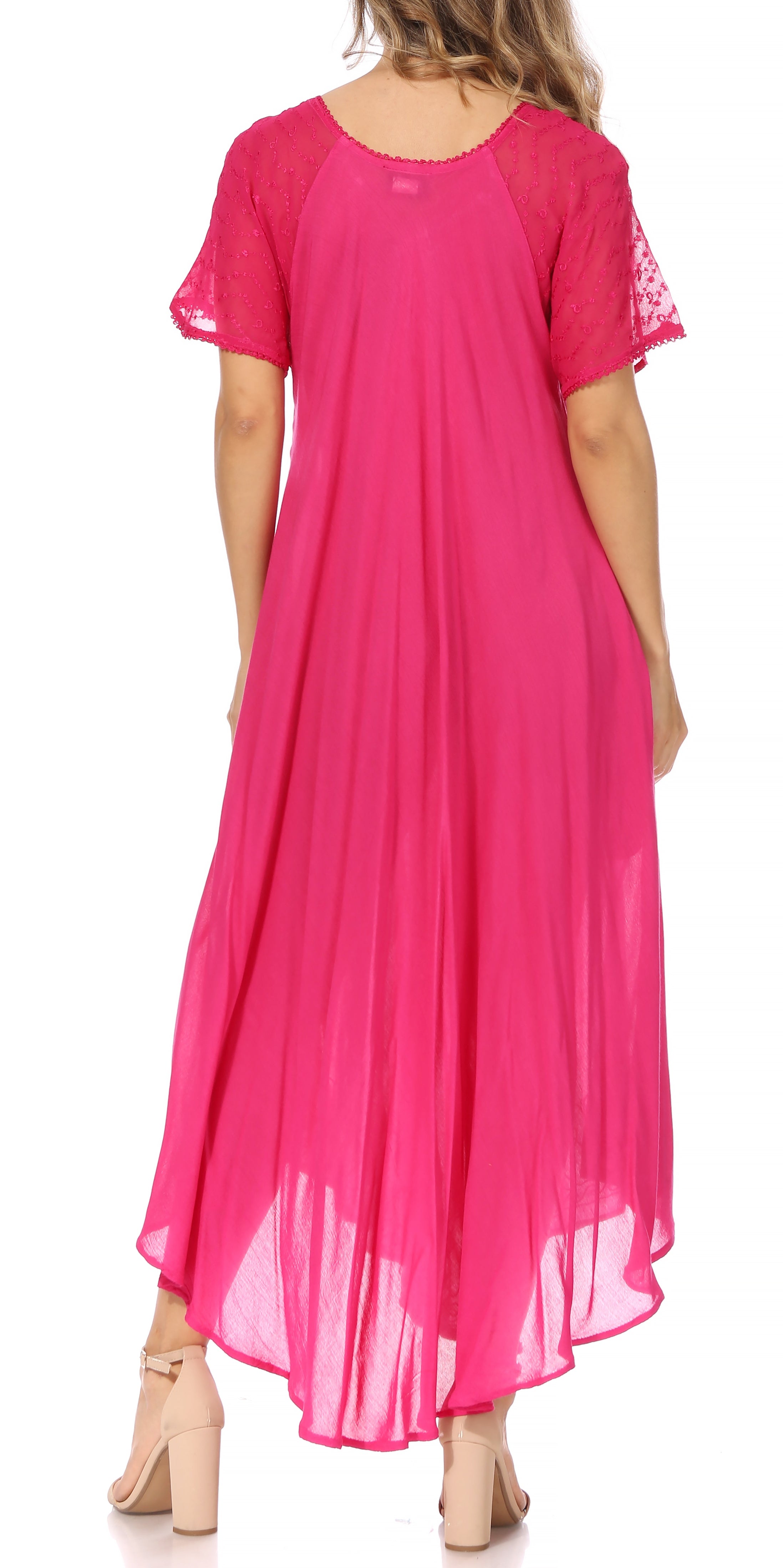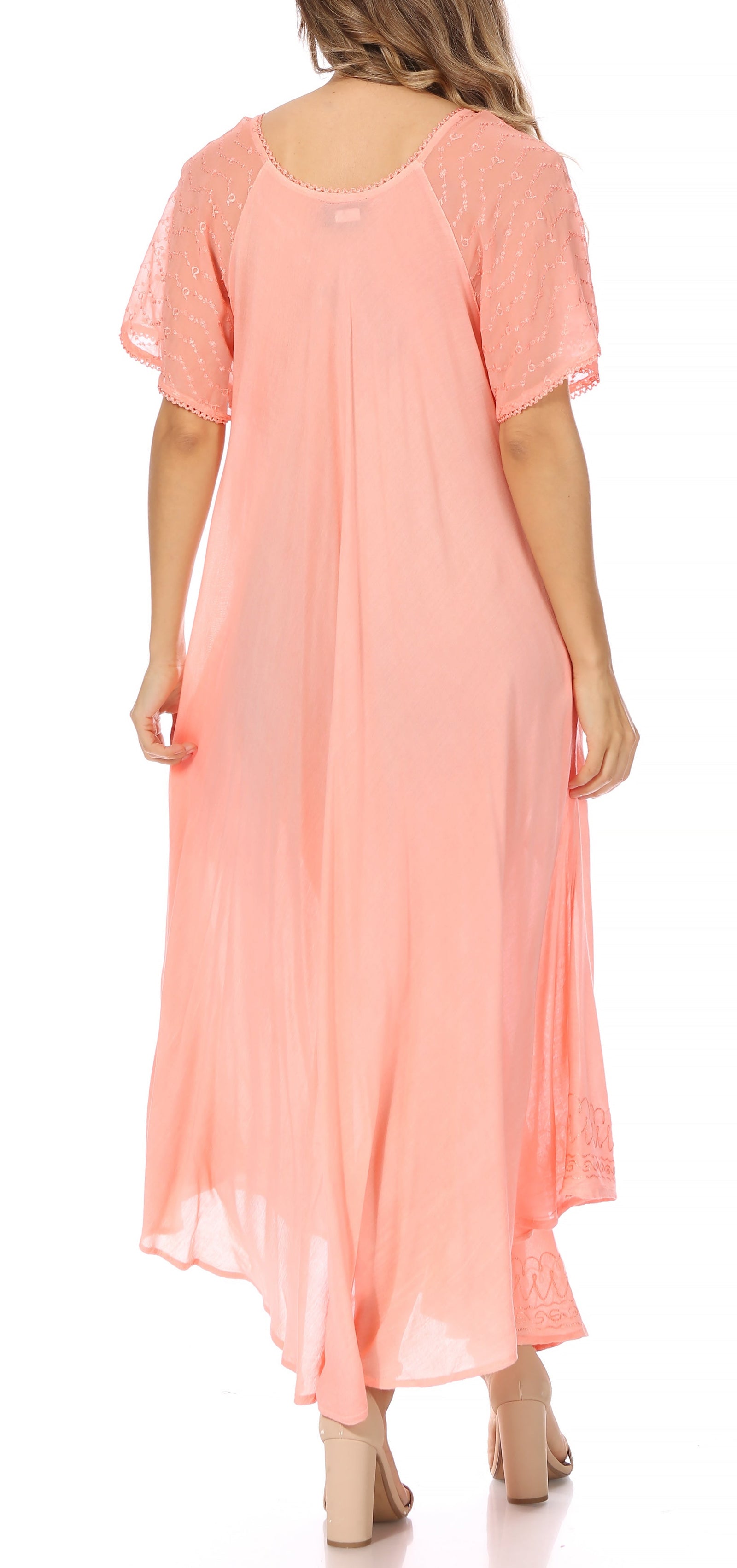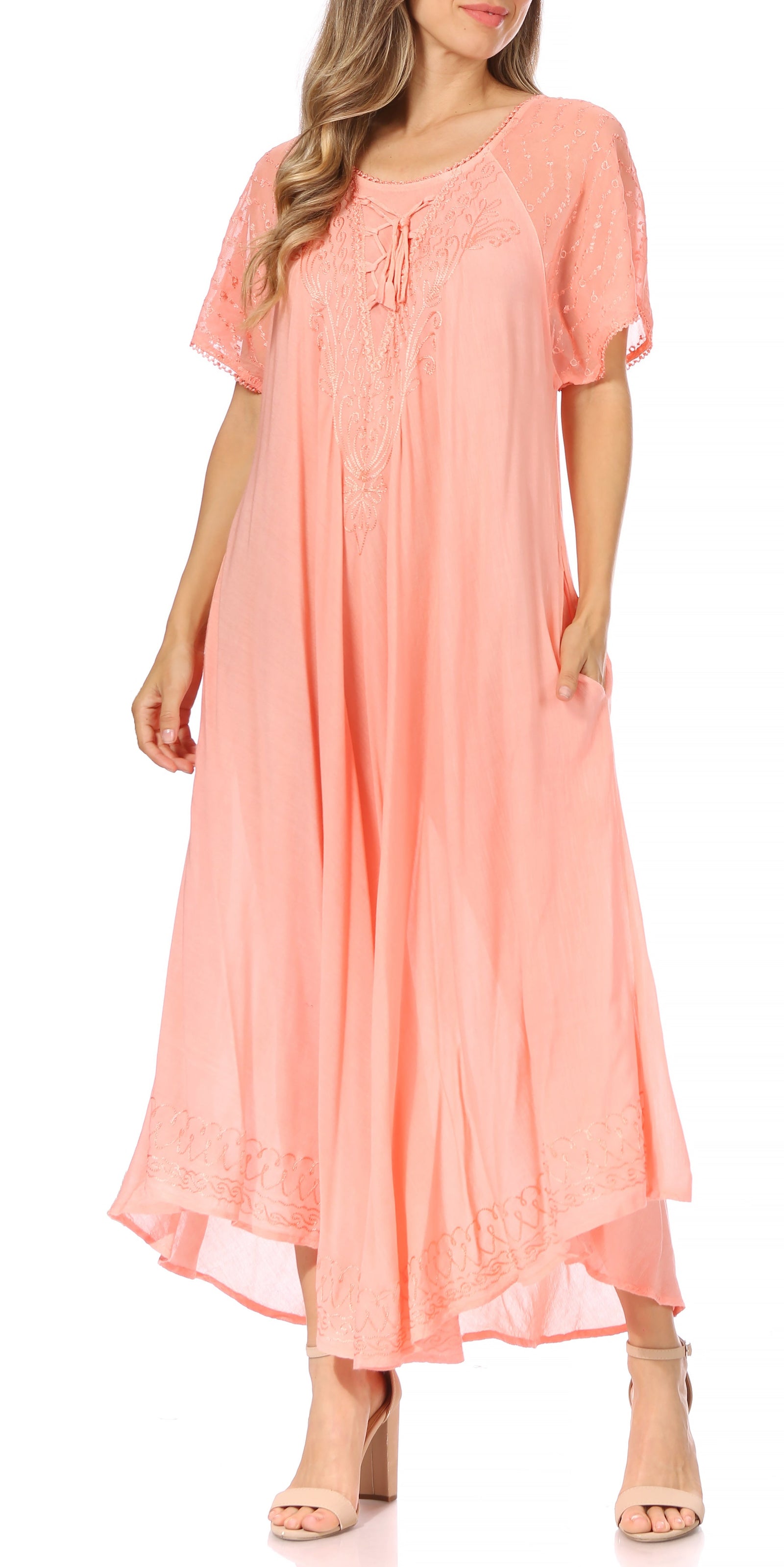 Sakkas Egan Women's Long Embroidered Caftan Dress / Cover Up With Embroidered Cap Sleeves