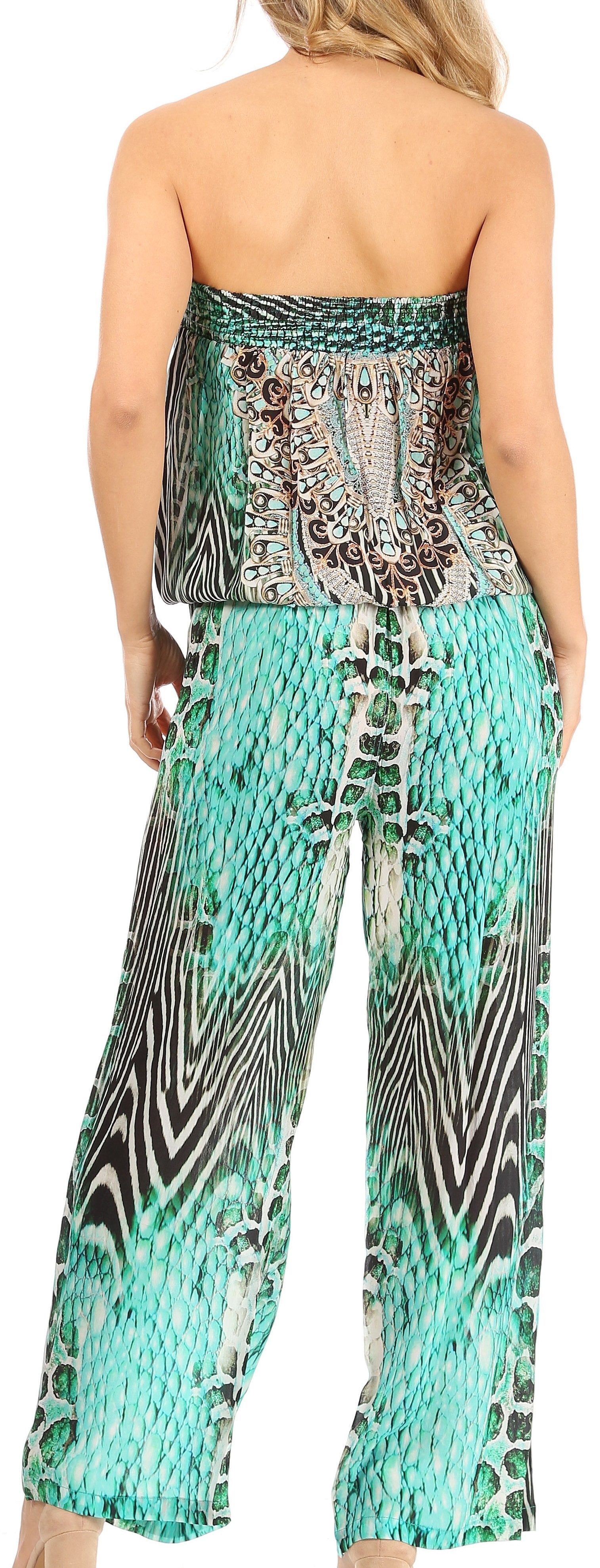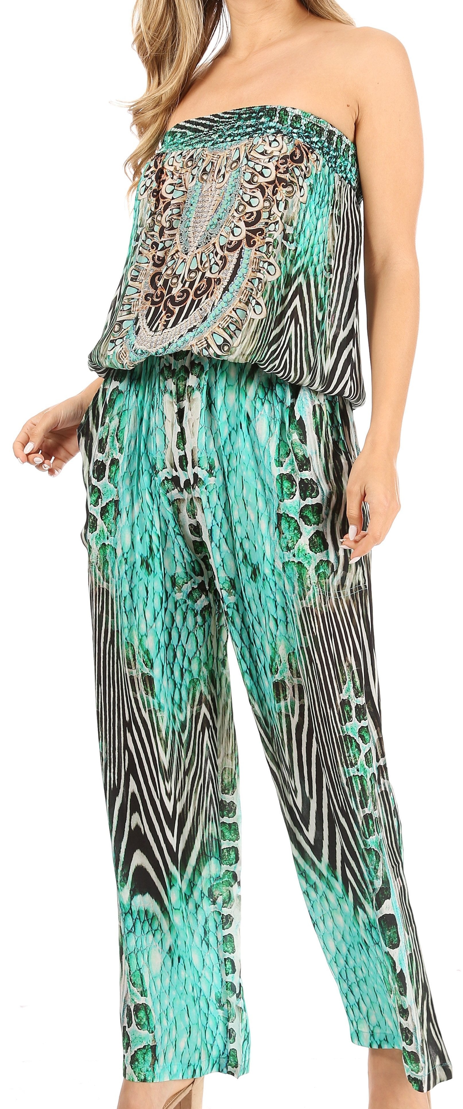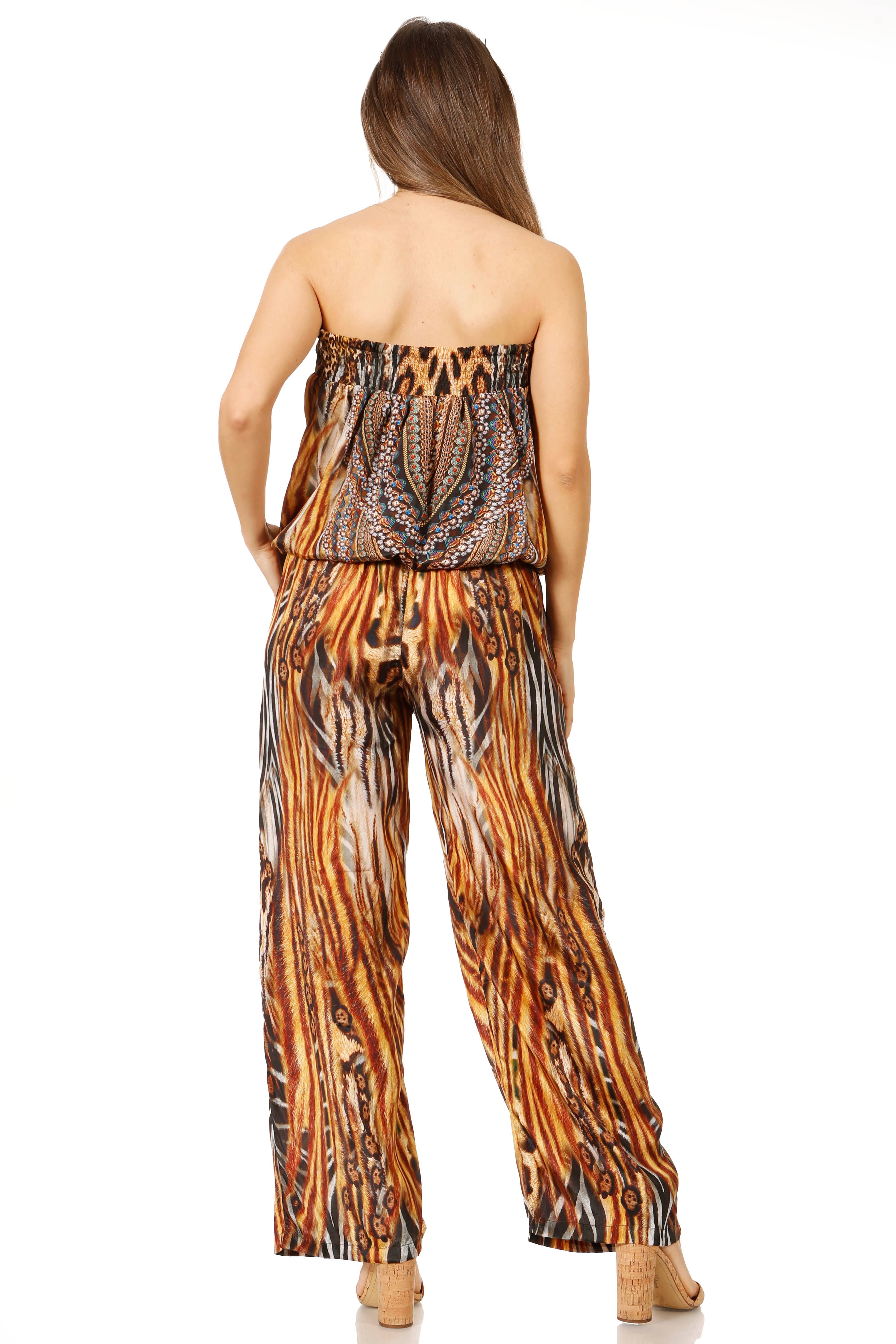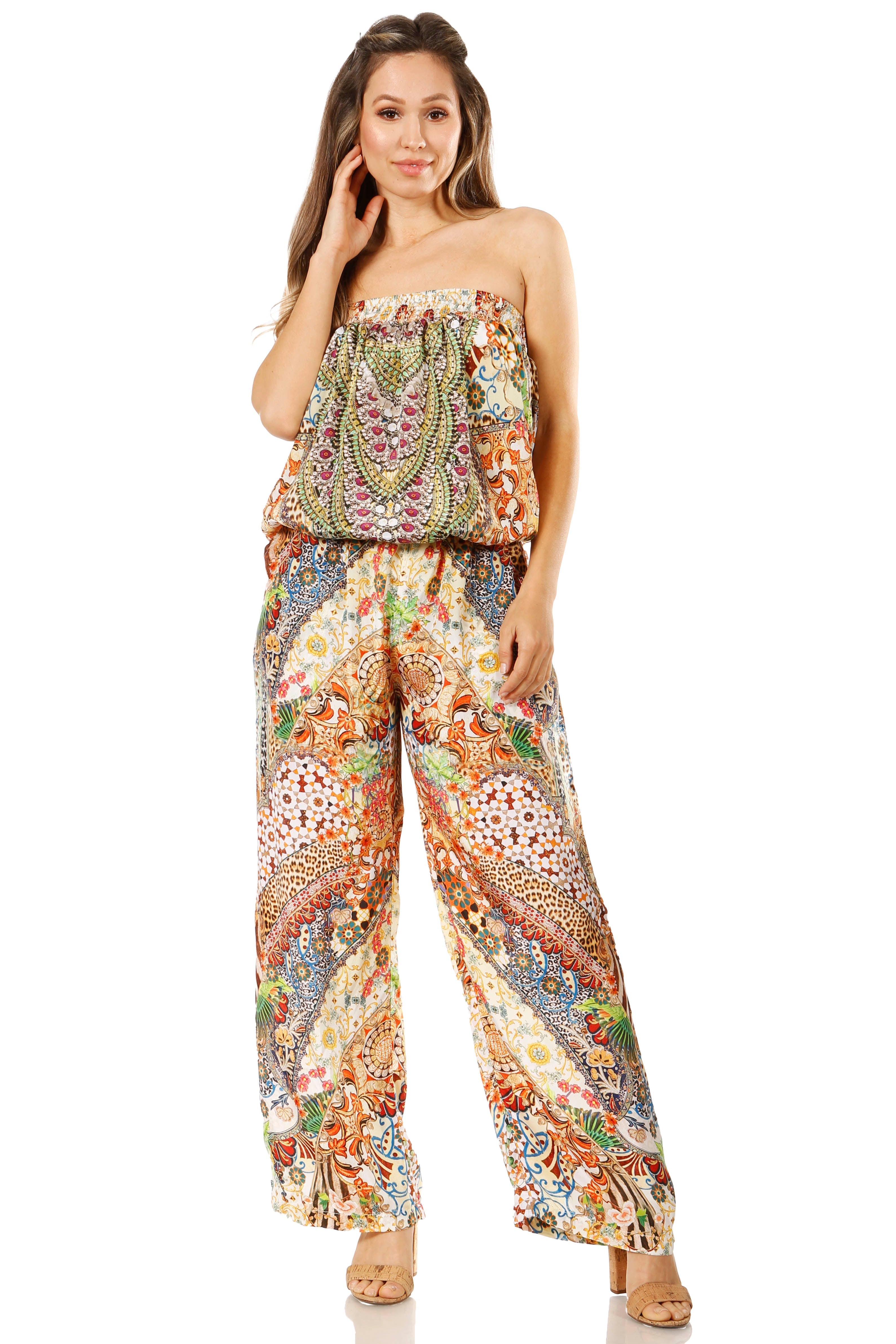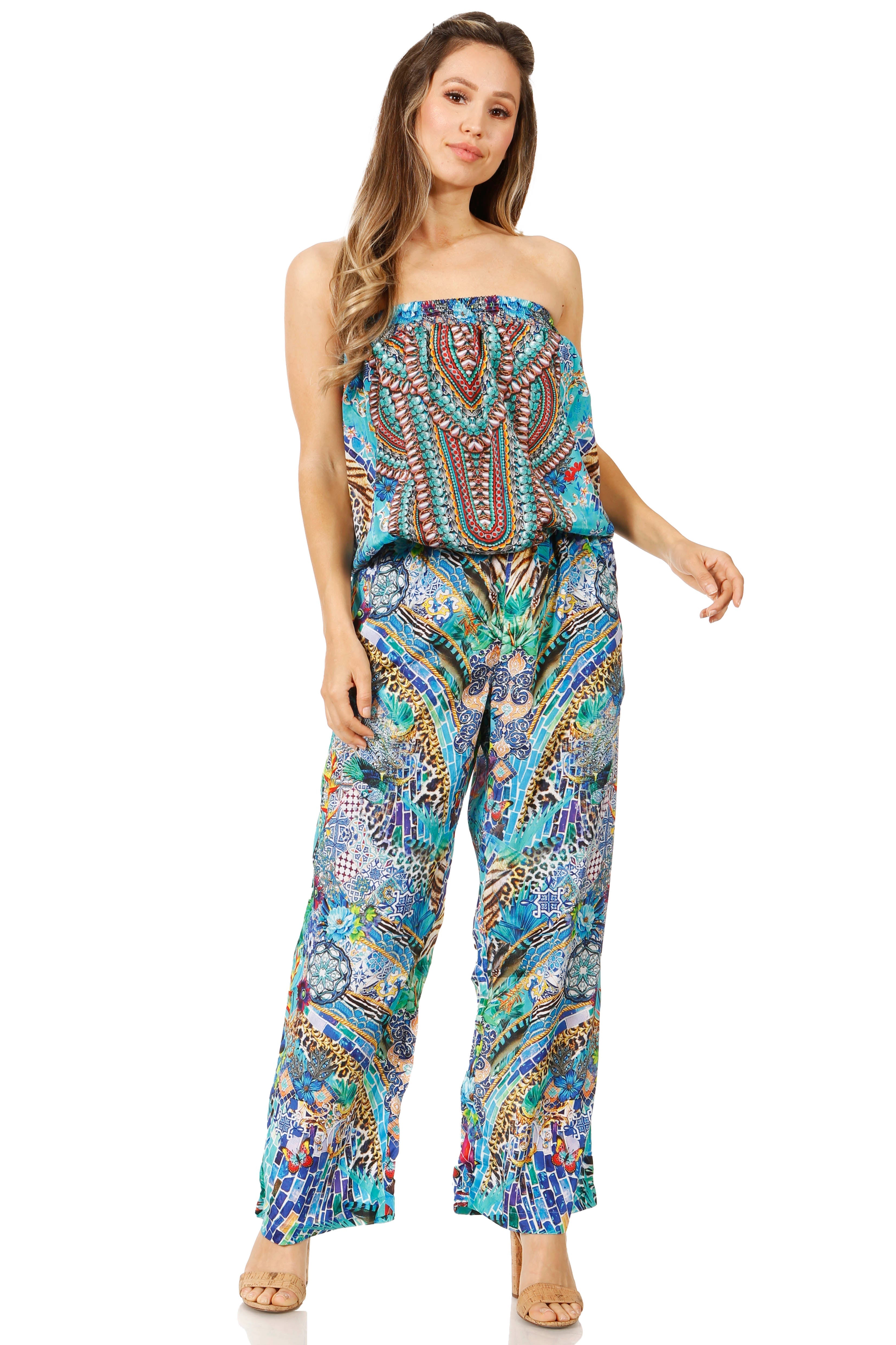 • JUMPSUIT/BOHO/PANTS/STRAPLESS: Esha, the perfect jumpsuit to wear in warm weather. This lovely garment features a pull over closure, smock elastic detail, loose relax bodice, pockets and elastic at waist. Made with super light material, bohemian casual style. Look and feel like a goddess in any setting while wearing this lovely flattering jumpsuit! It's generous relax fit makes it suitable to wear it year round.