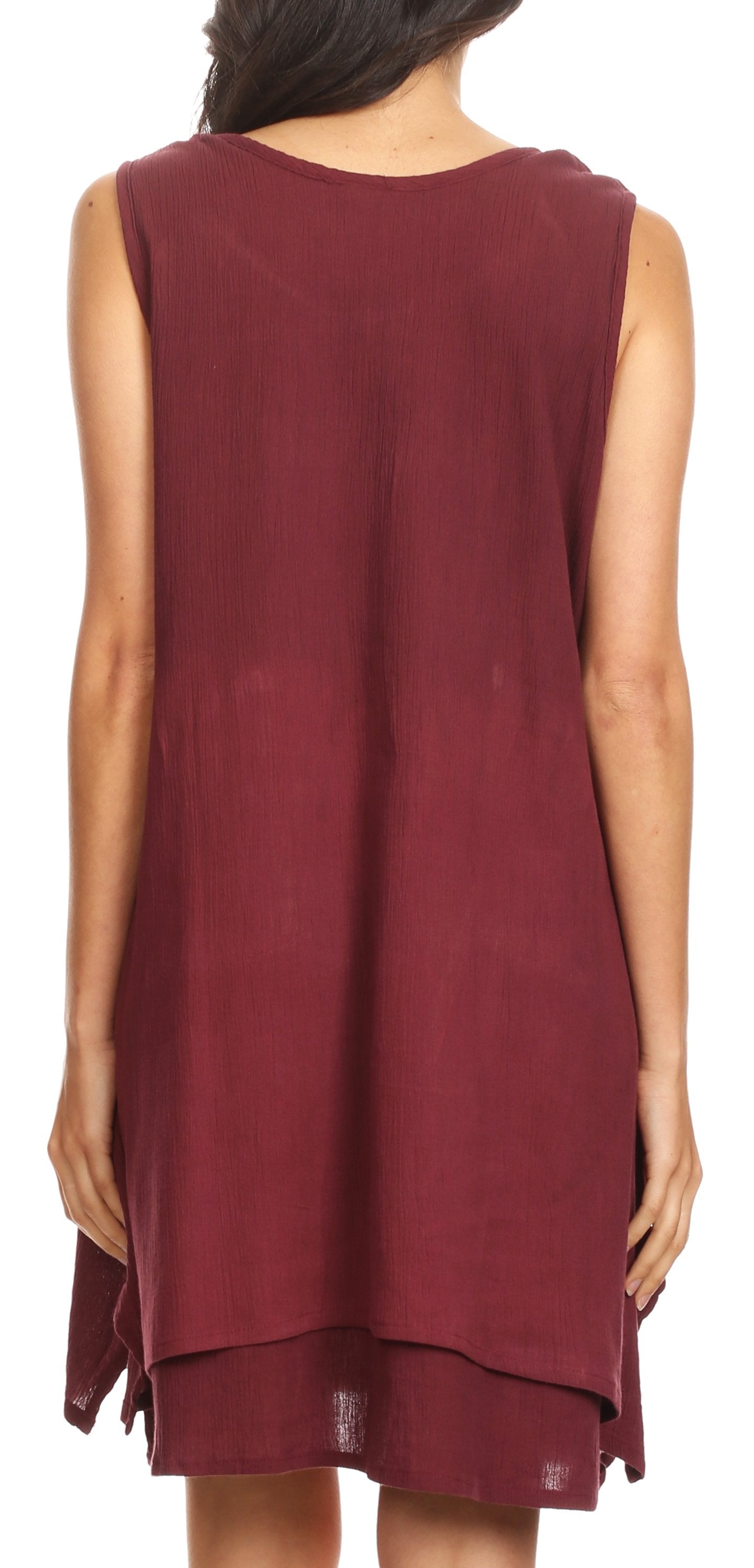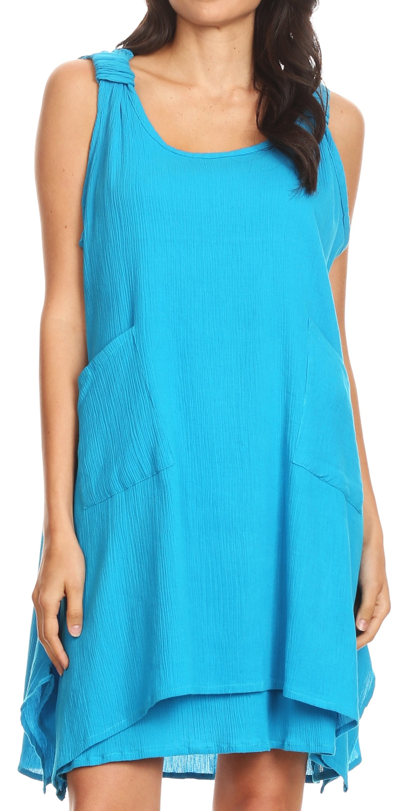 Sakkas Genna Two Layer Sleeveless Ruched Shoulder Straps Round Neck Tent Dress