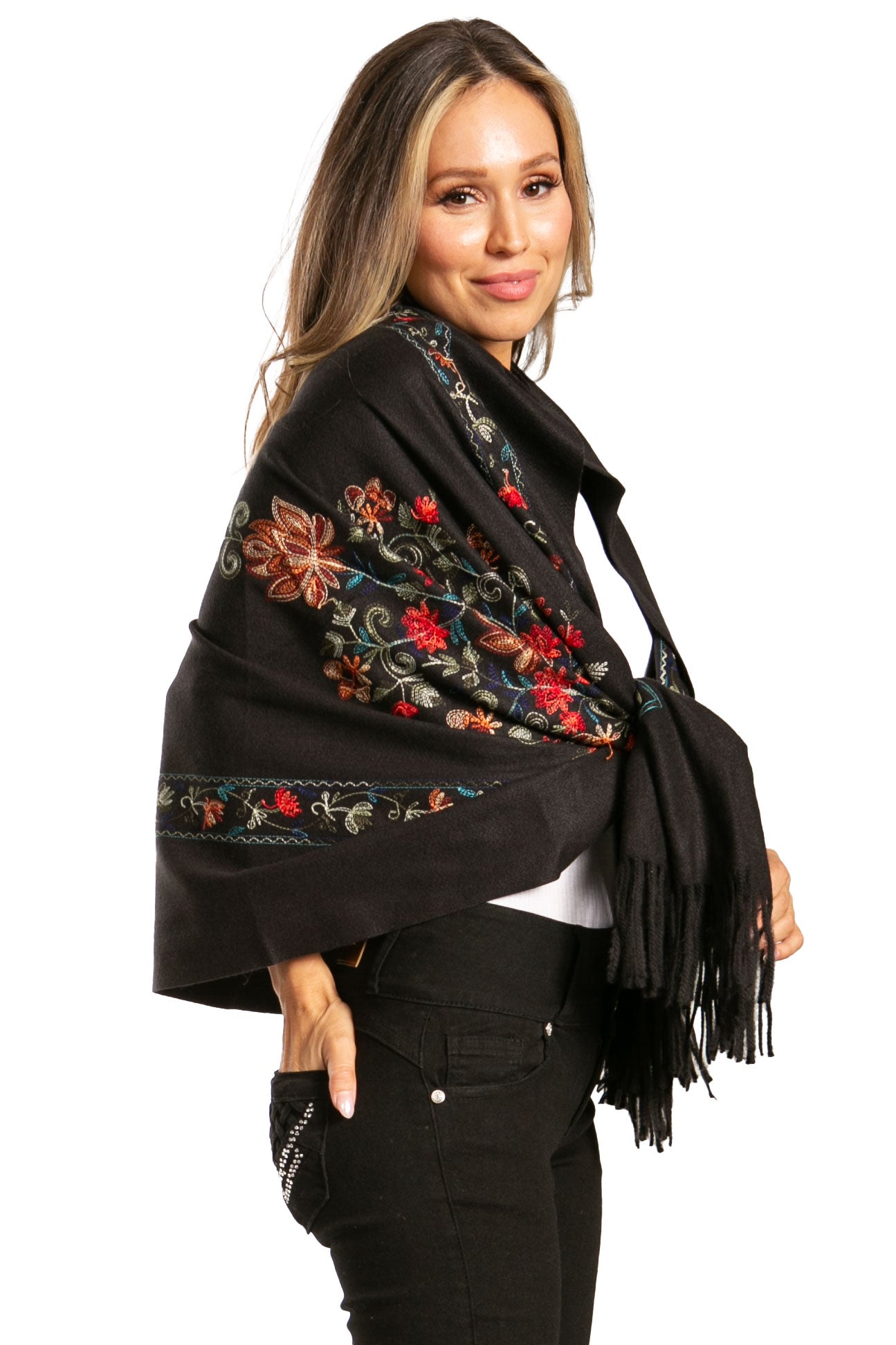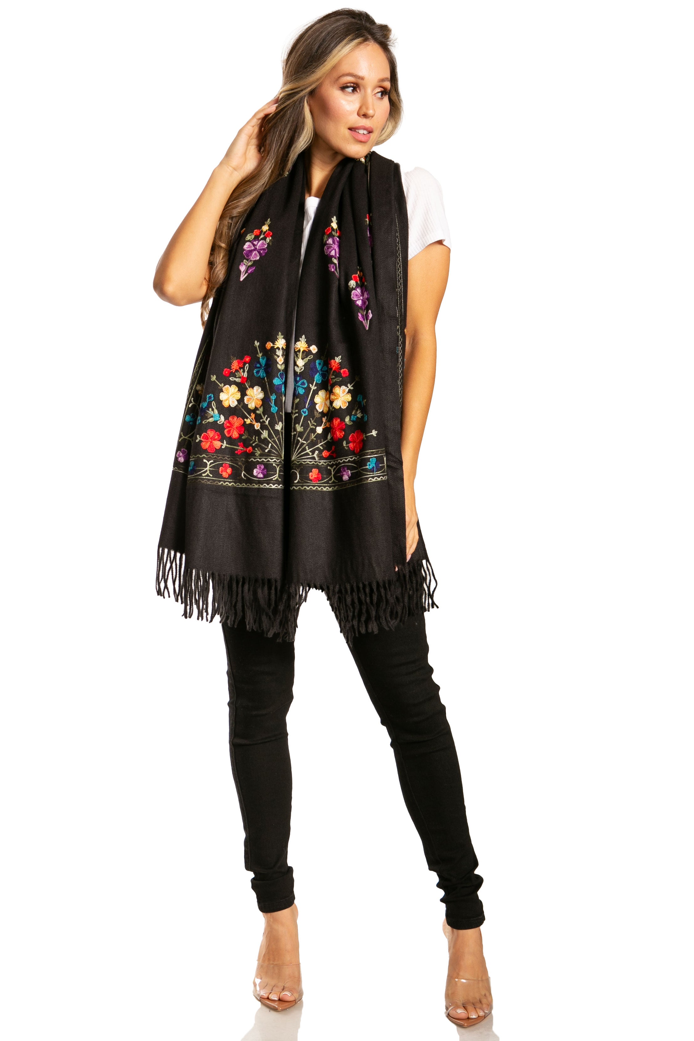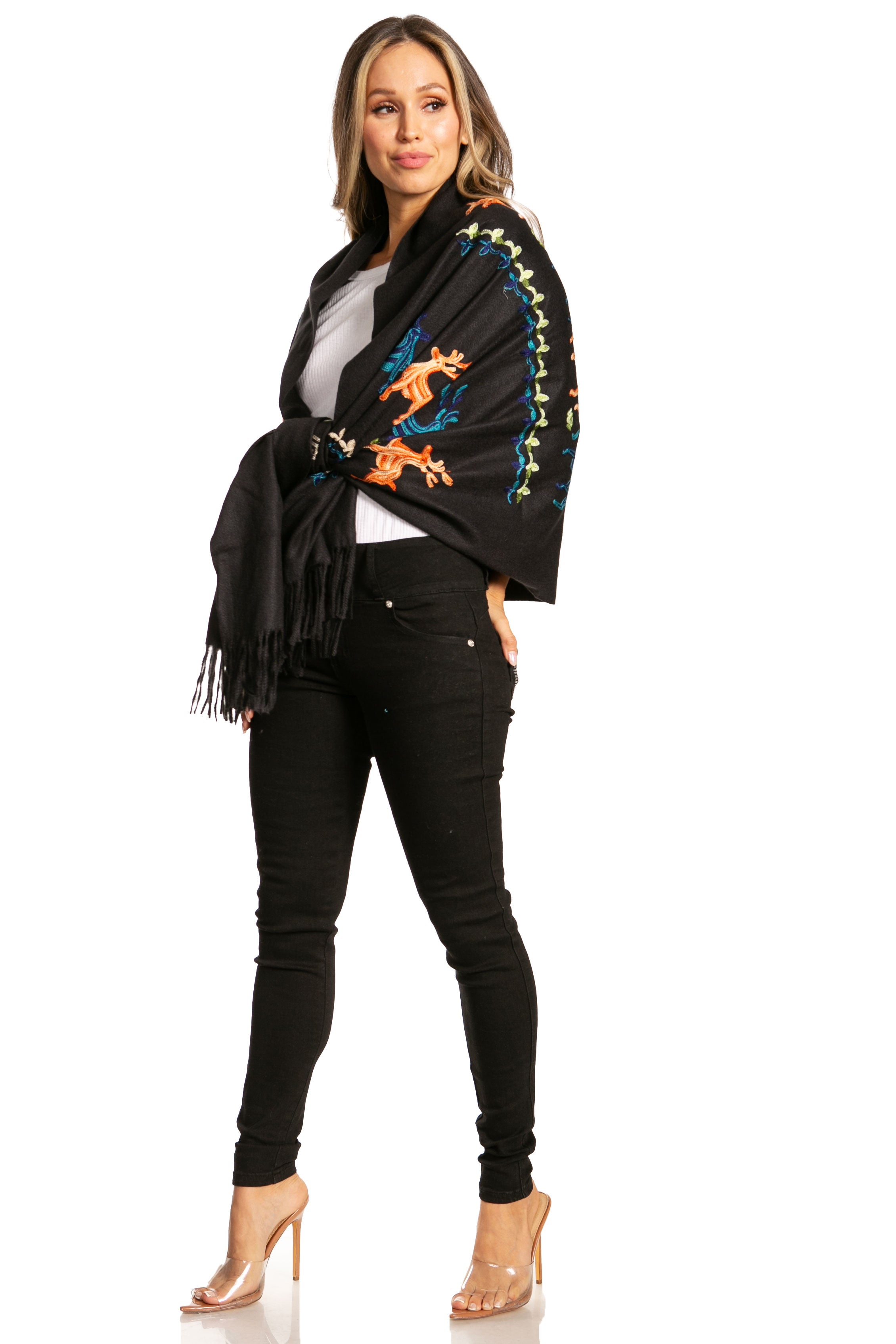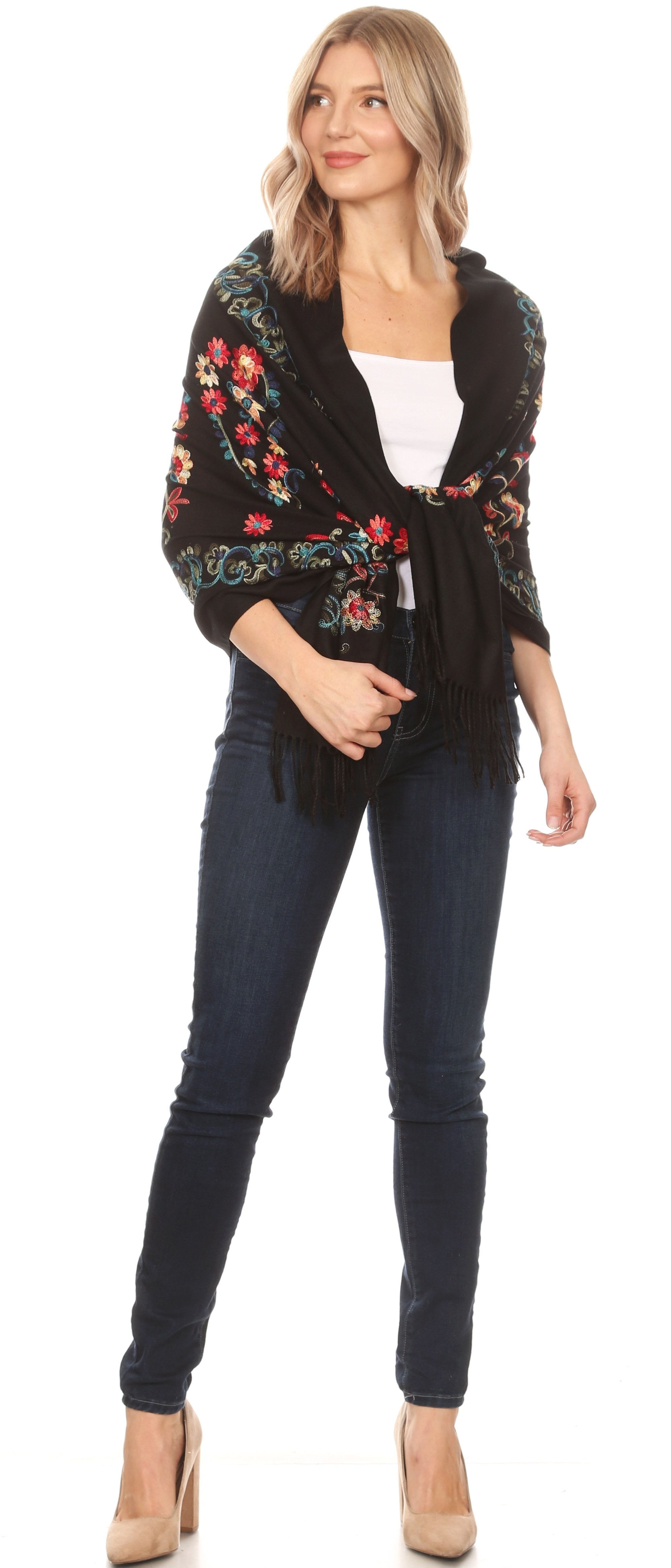 Sakkas Ginata Women's Large Casual Super Soft Embroidery Scarf Shawl Wrap Stole
