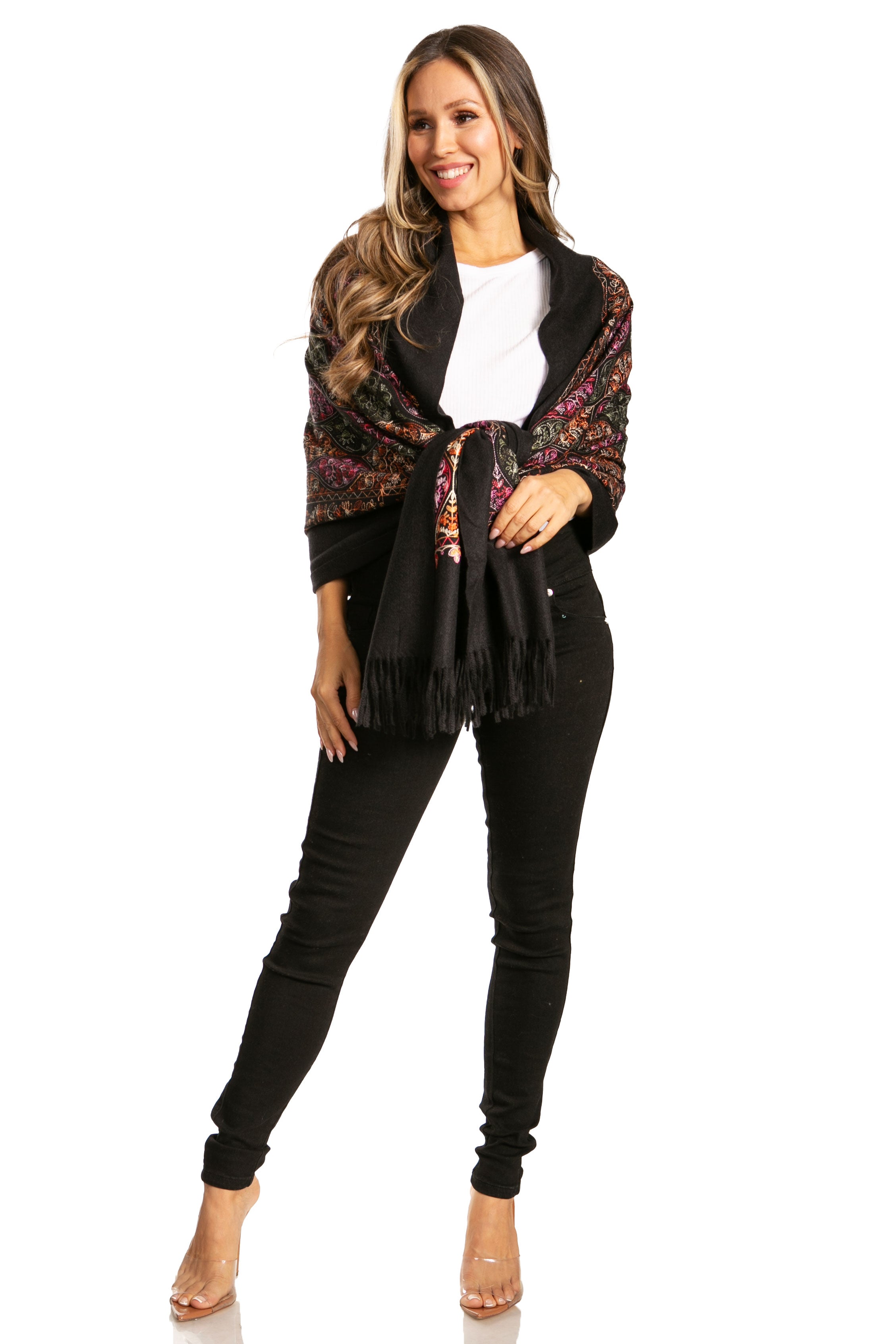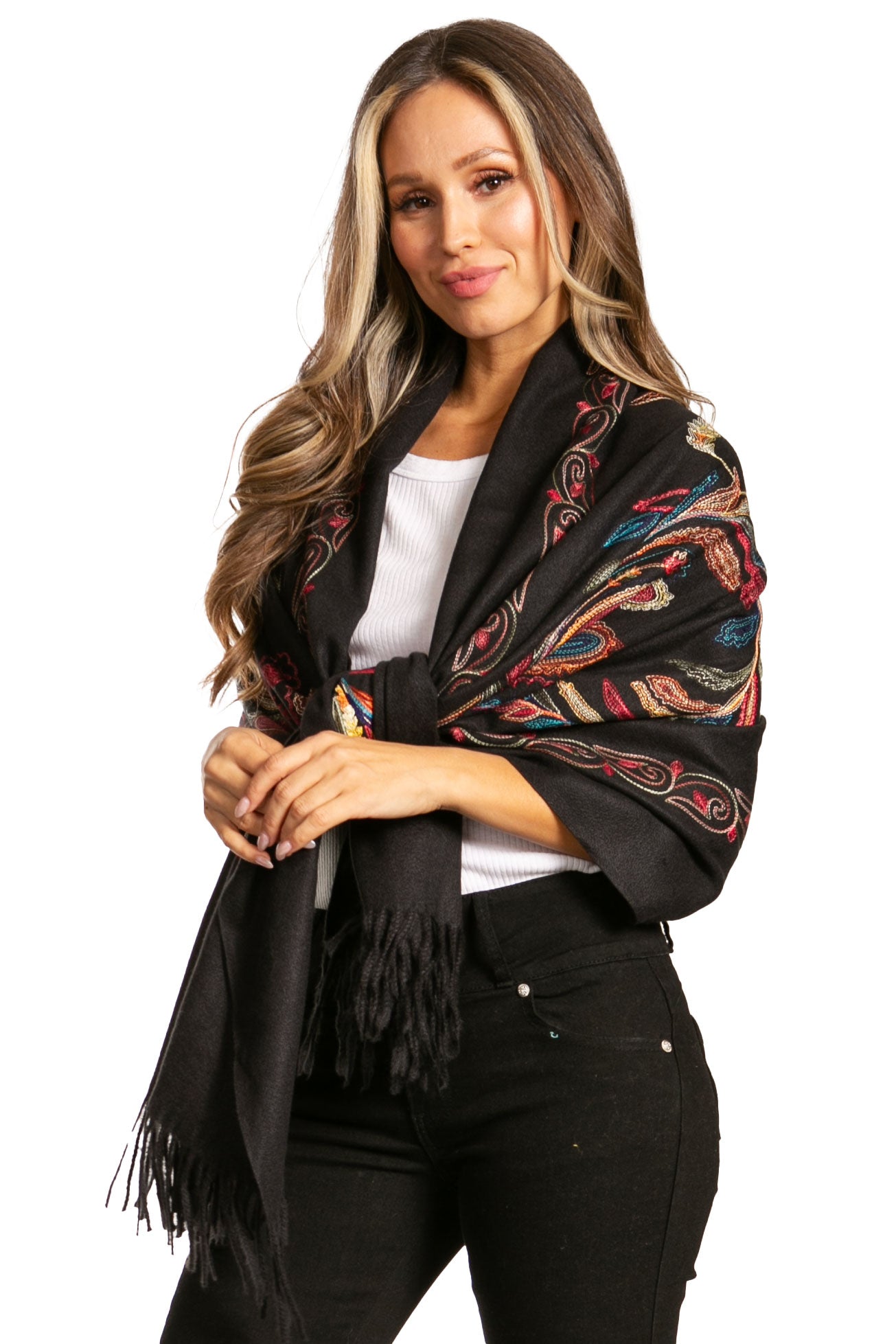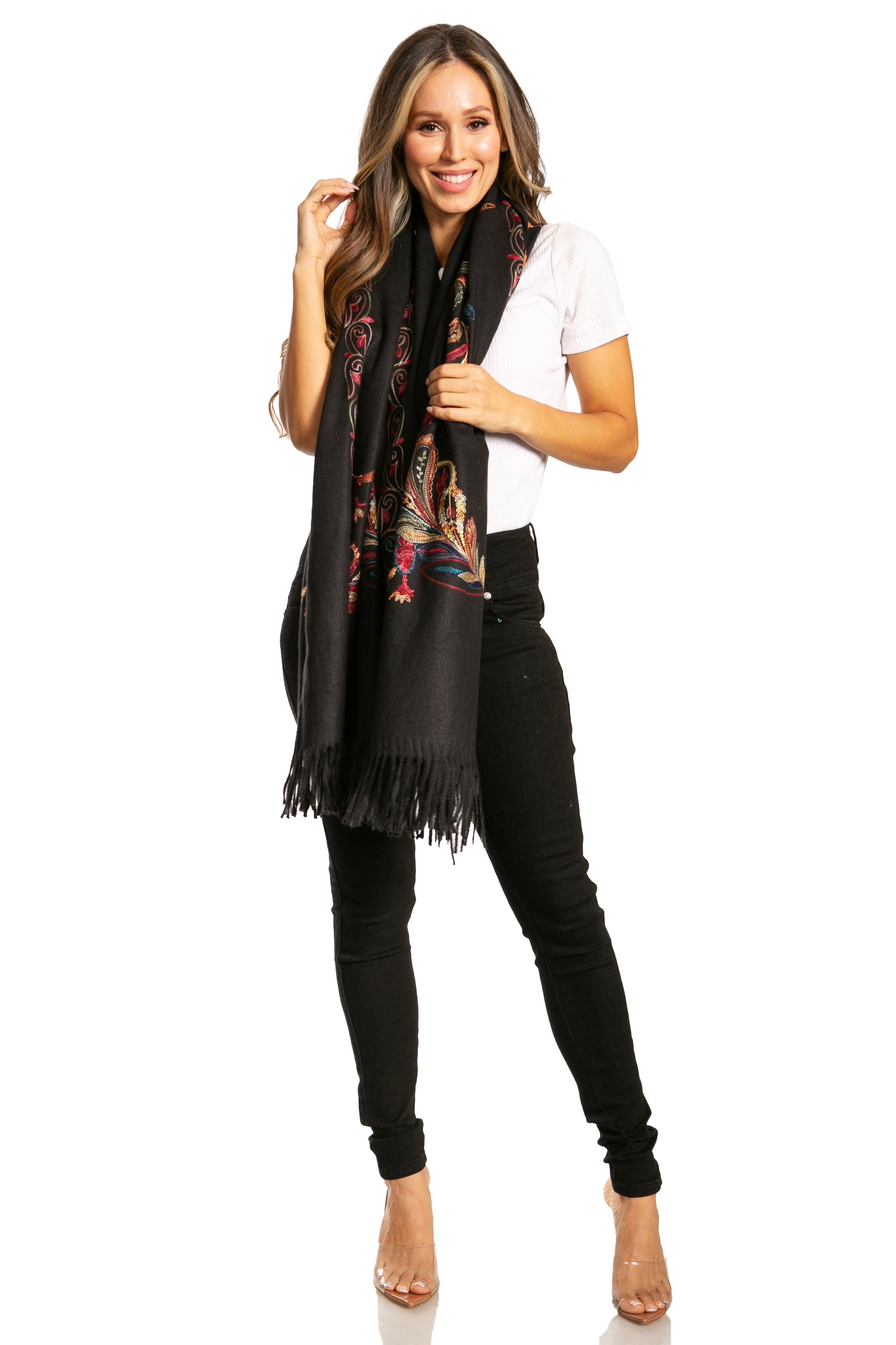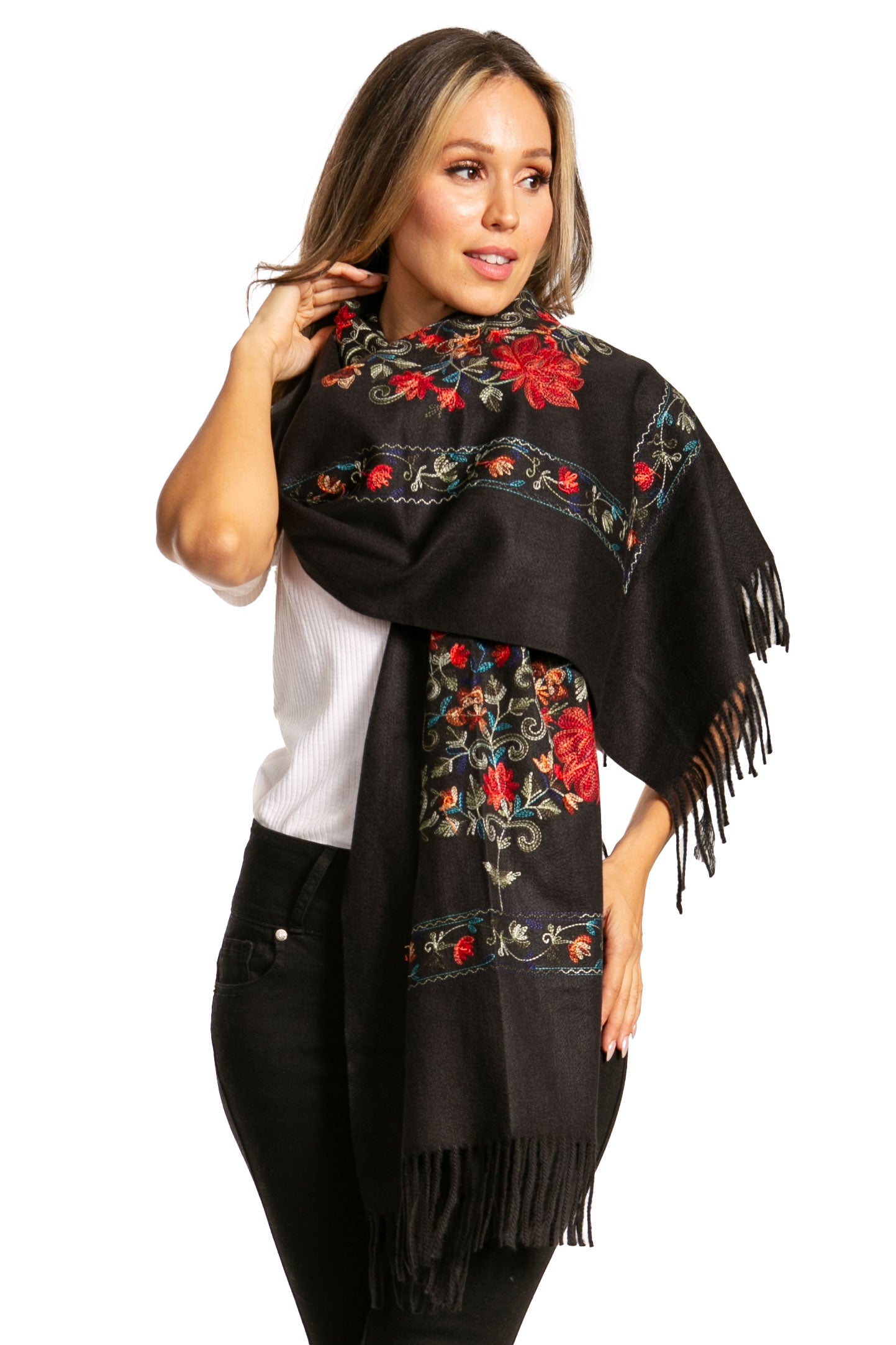 Sakkas Ginata Women's Large Casual Super Soft Embroidery Scarf Shawl Wrap Stole