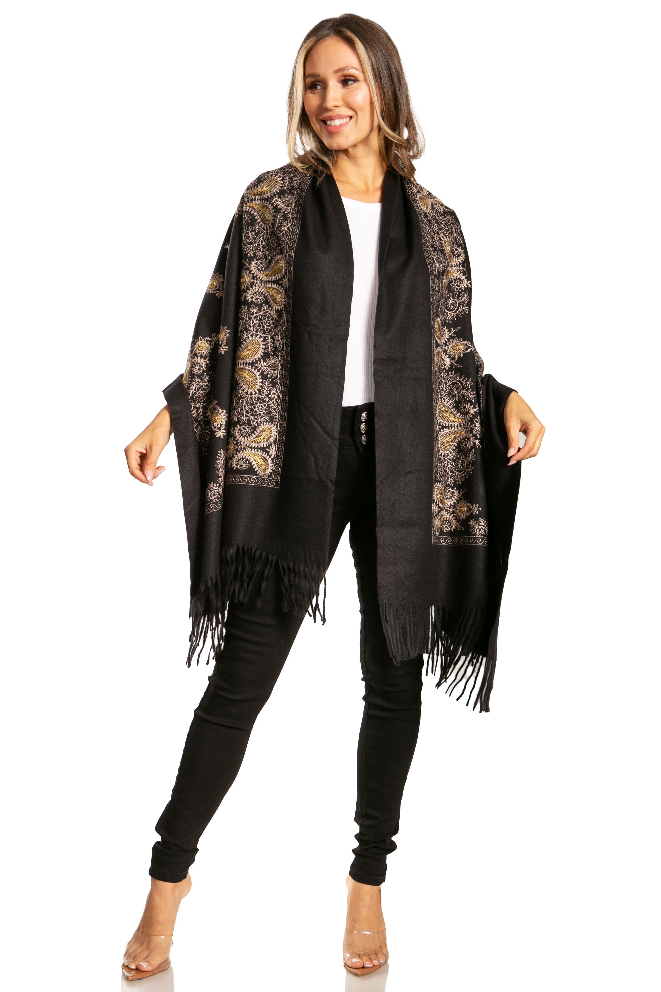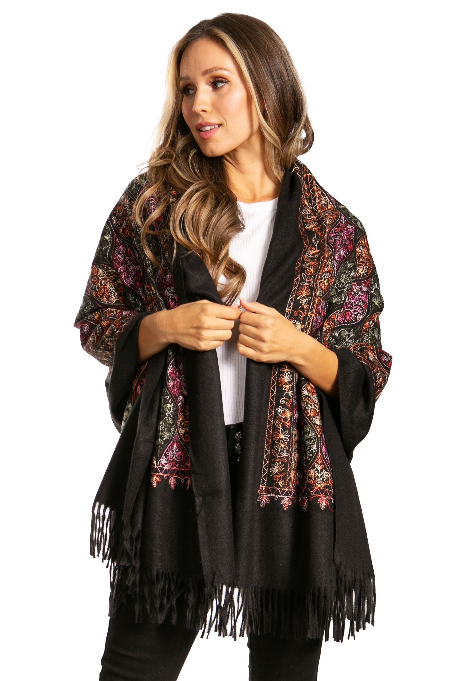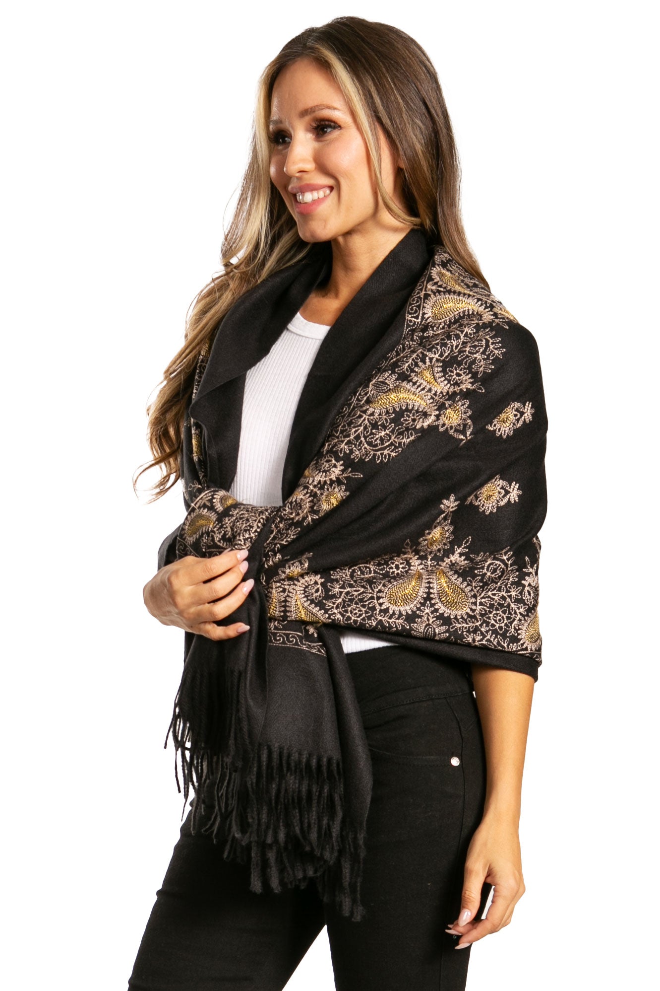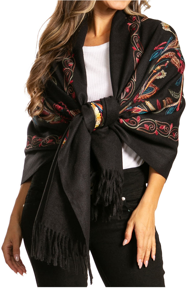 Sakkas Ginata Women's Large Casual Super Soft Embroidery Scarf Shawl Wrap Stole