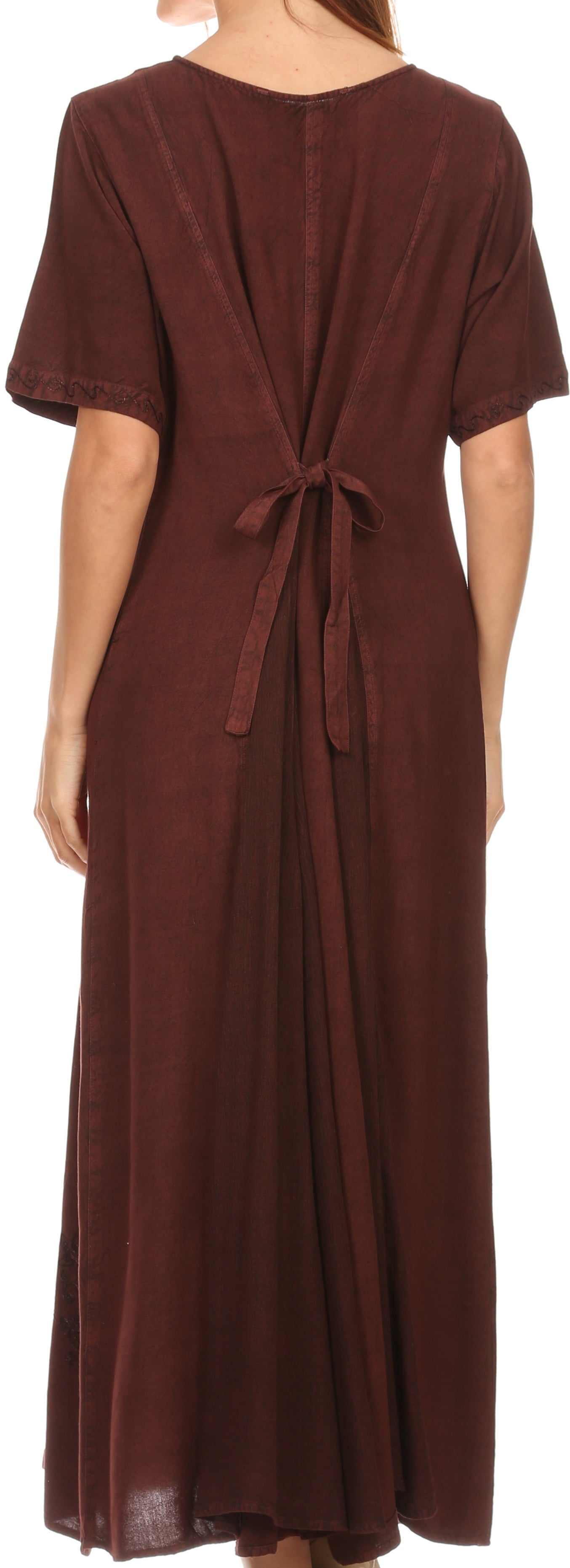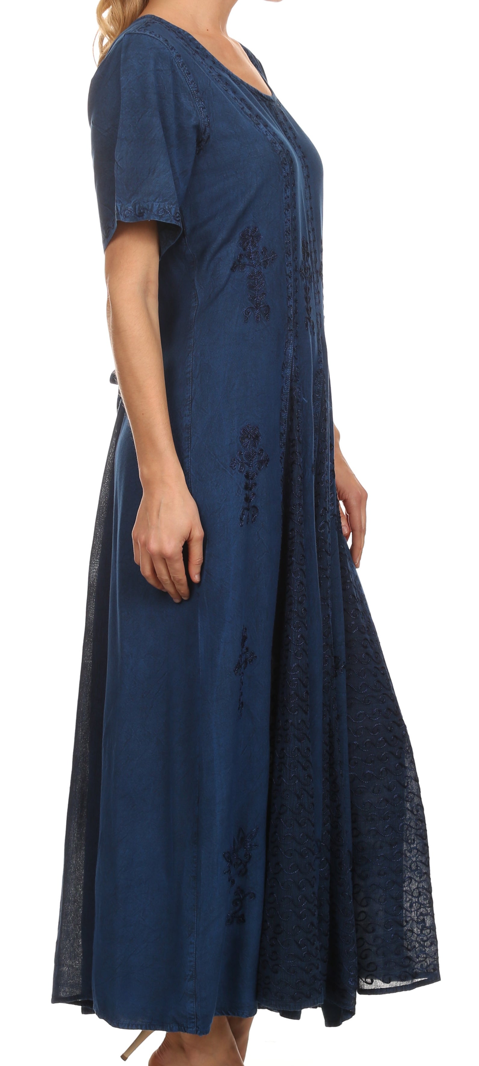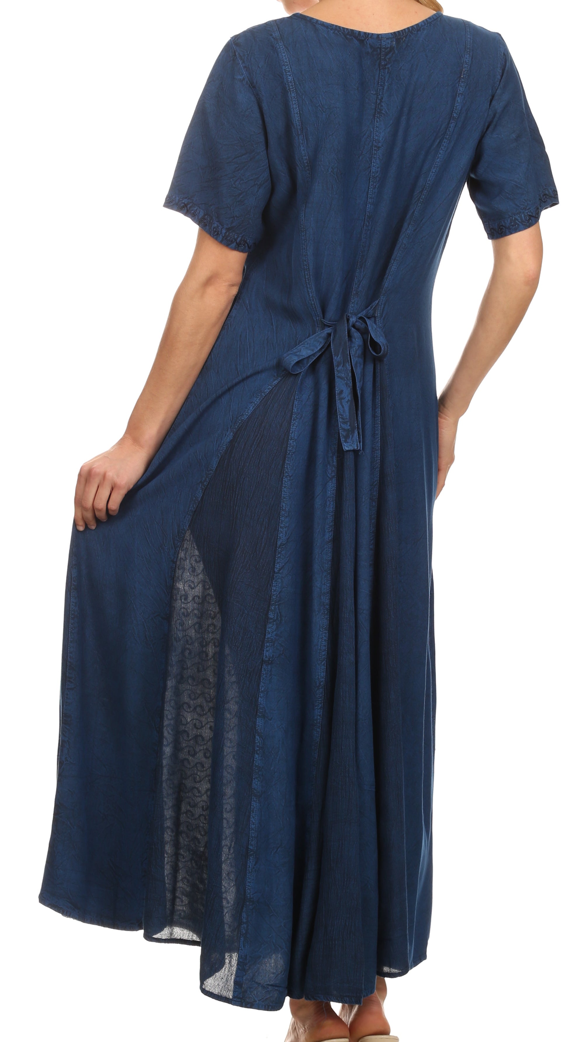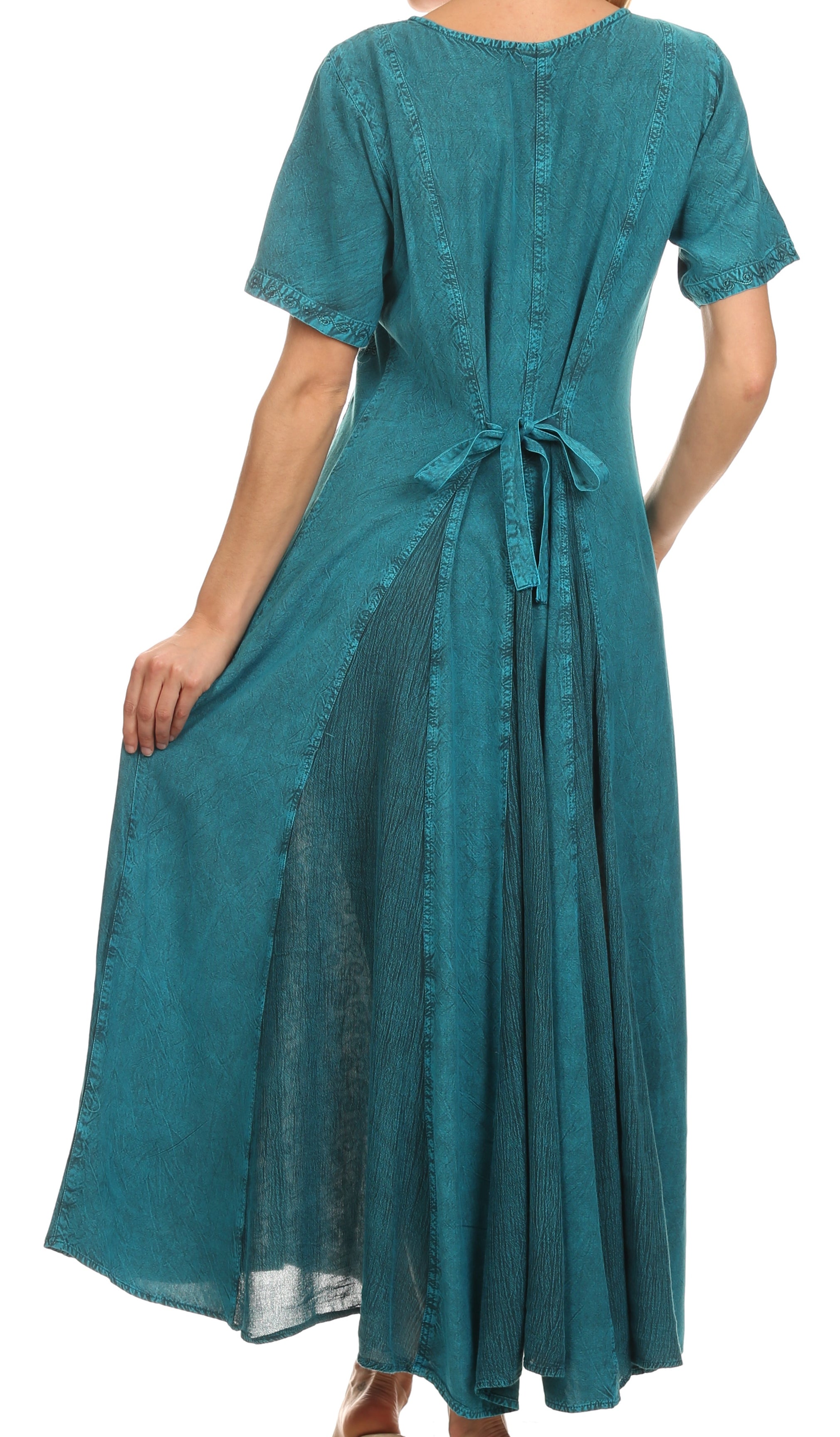 Sakkas Hailey Cap Sleeve Caftan Long Embroidered Stonewashed Dress