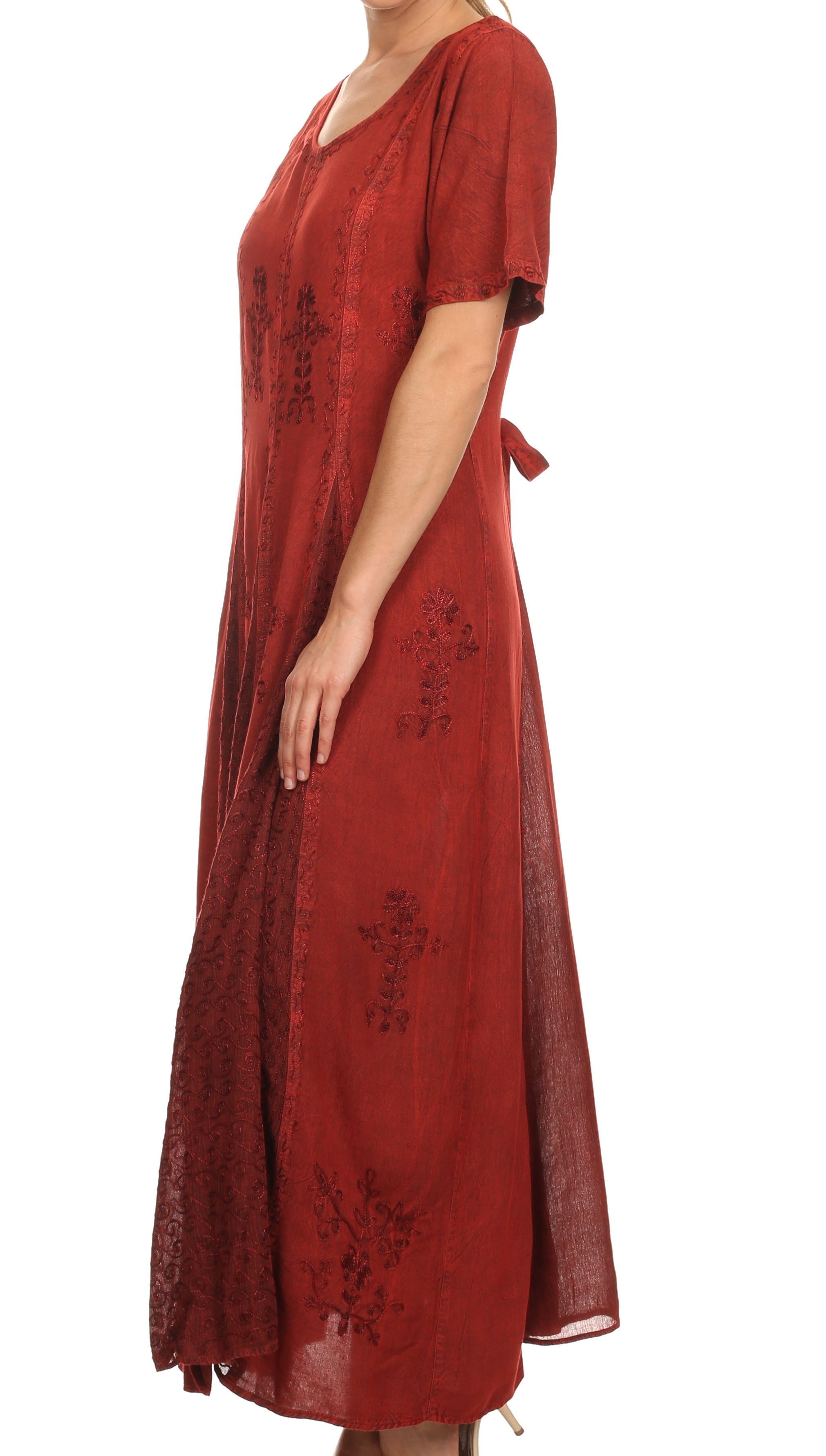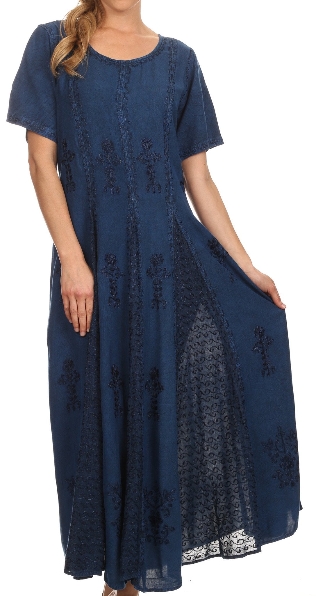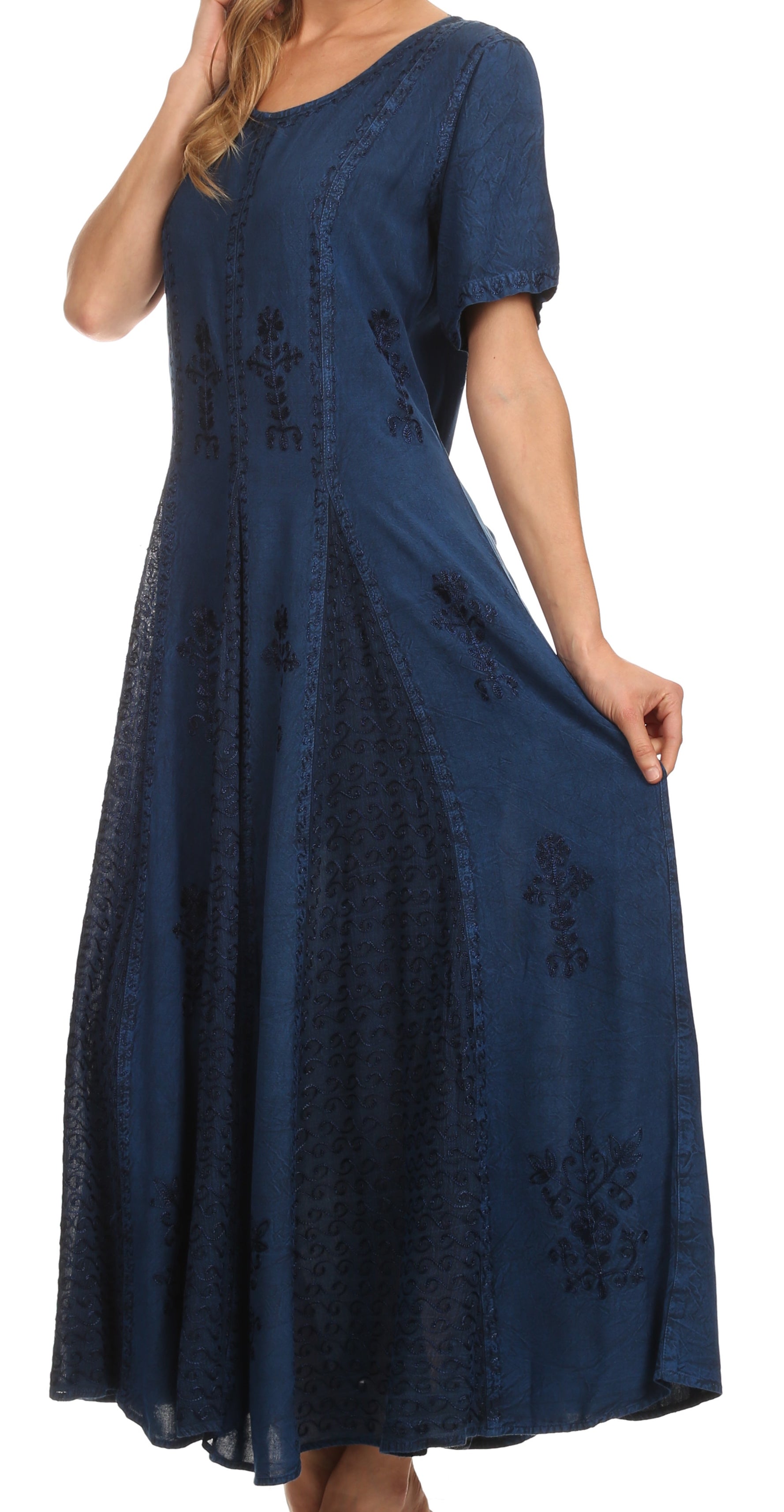 Sakkas Hailey Cap Sleeve Caftan Long Embroidered Stonewashed Dress