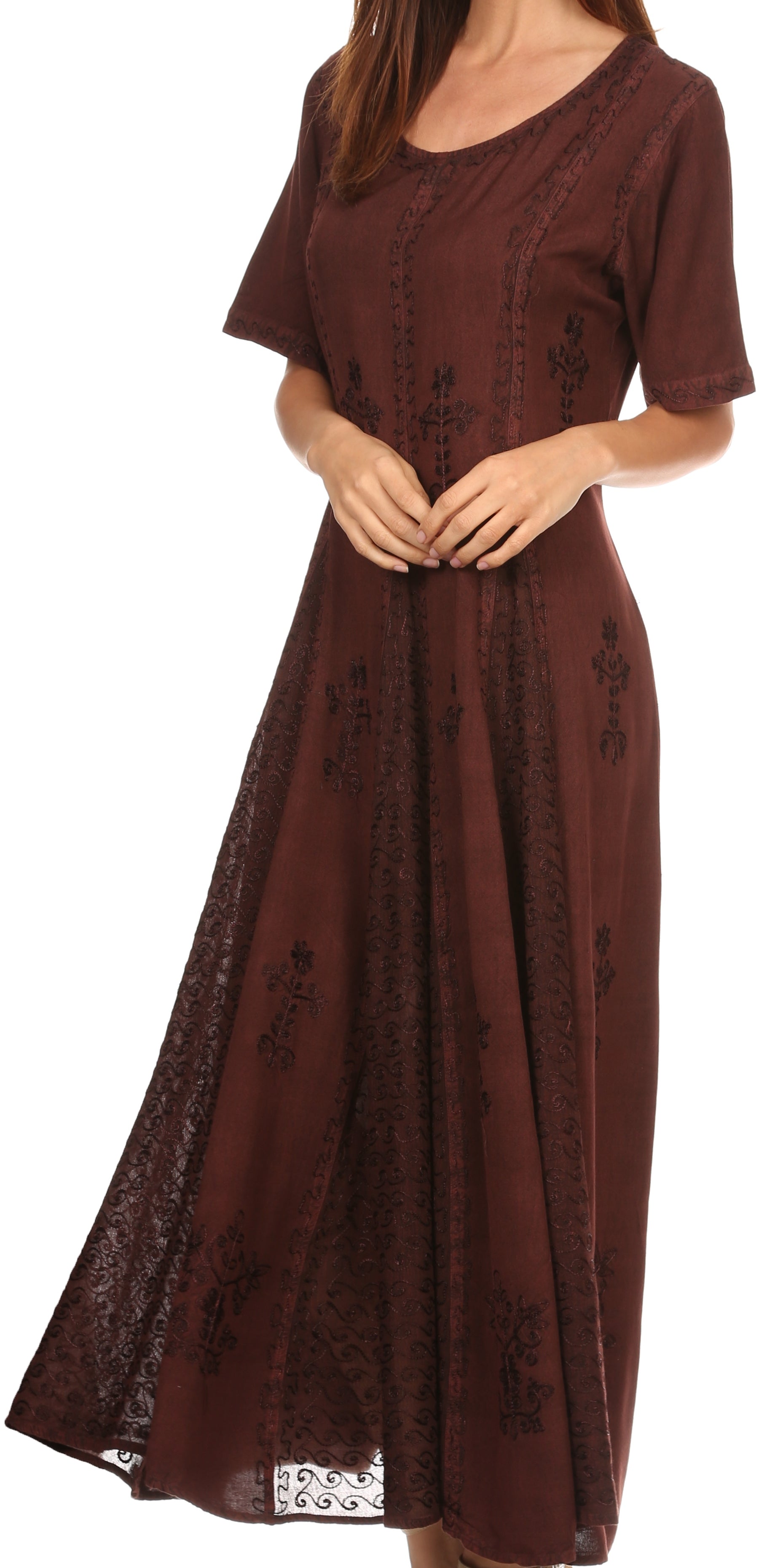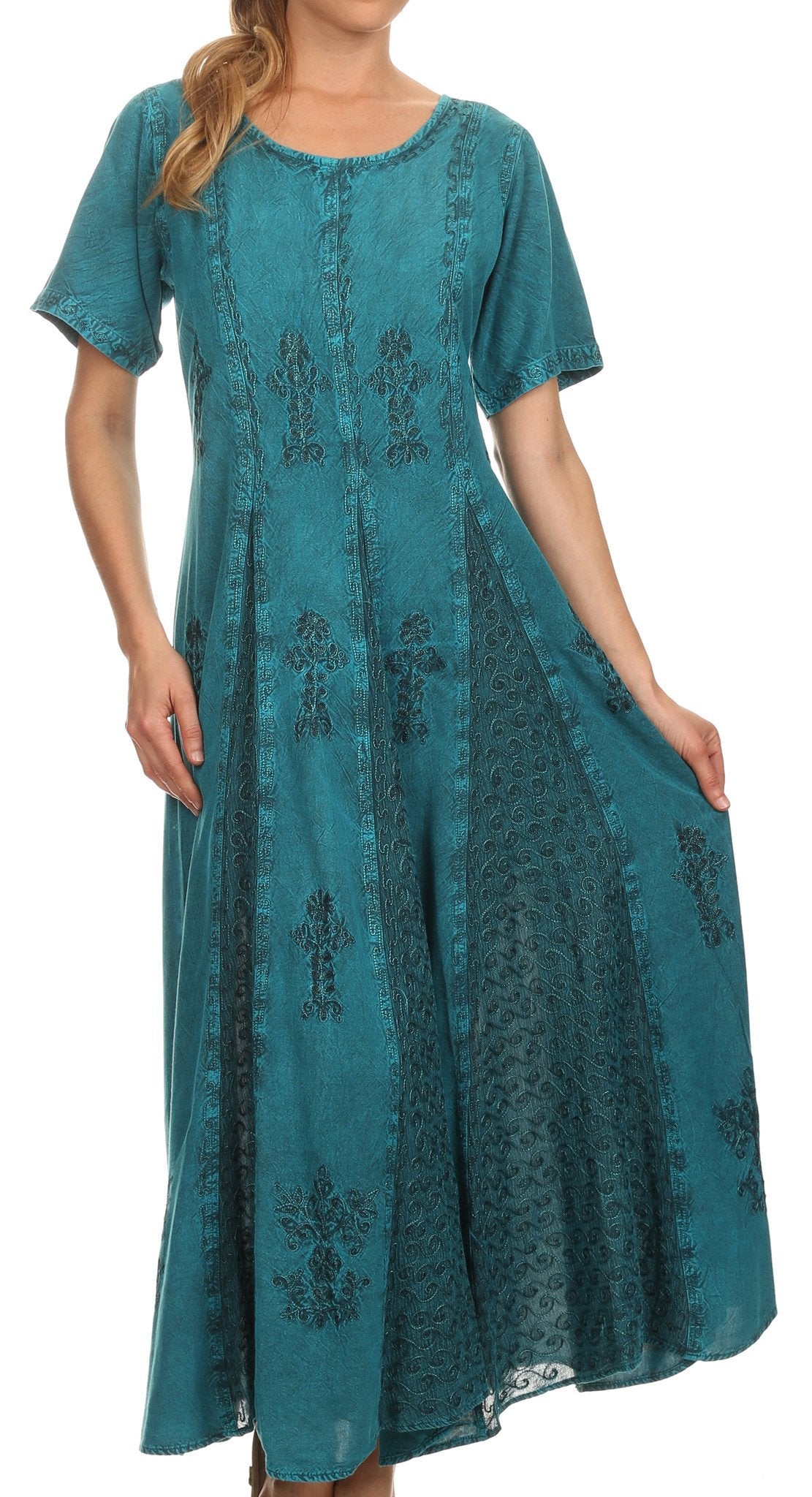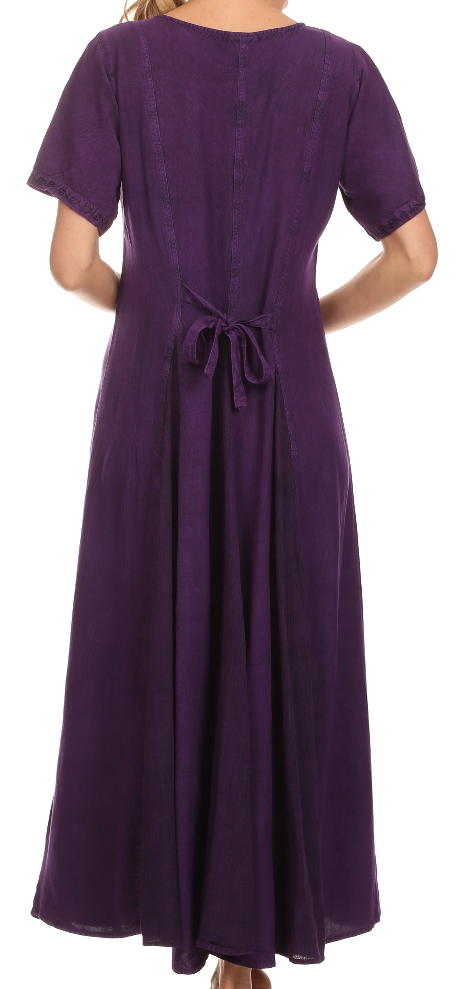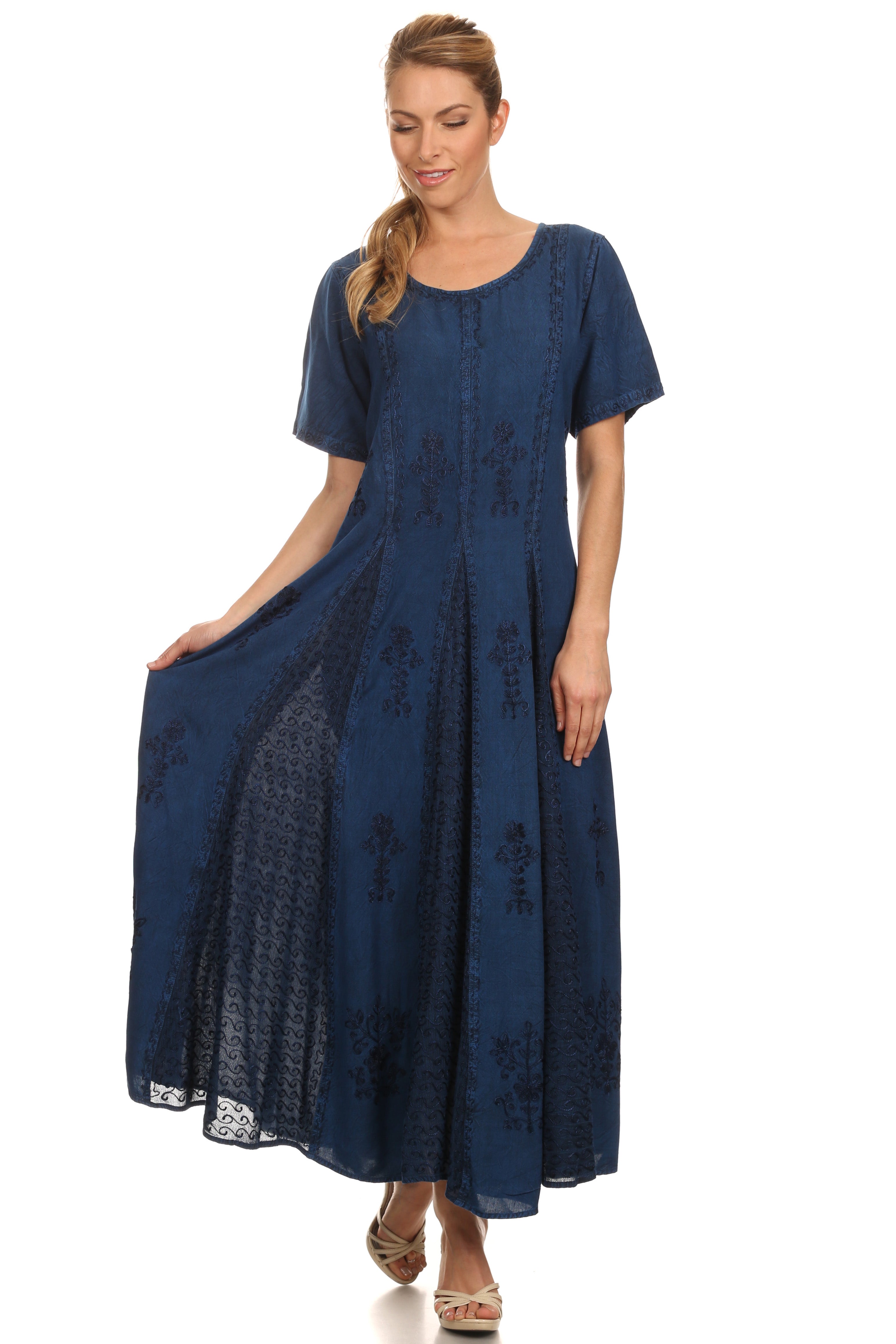 Sakkas Hailey Cap Sleeve Caftan Long Embroidered Stonewashed Dress