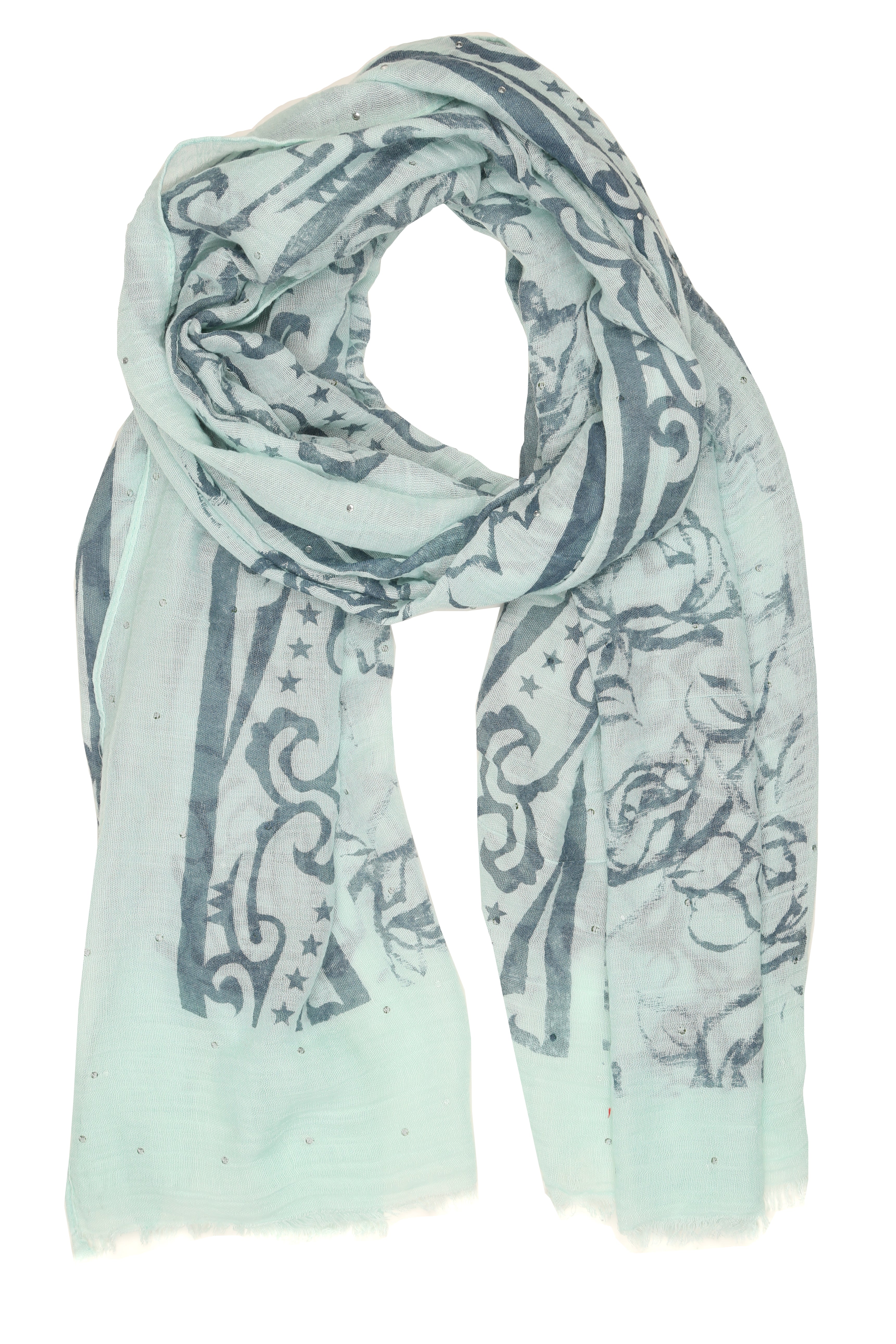 • This scarf has beautiful designs and colors. It features a beautiful gauze feel that is flowy and light. It is very soft to touch and comfortable, the perfect length for wear in many ways.