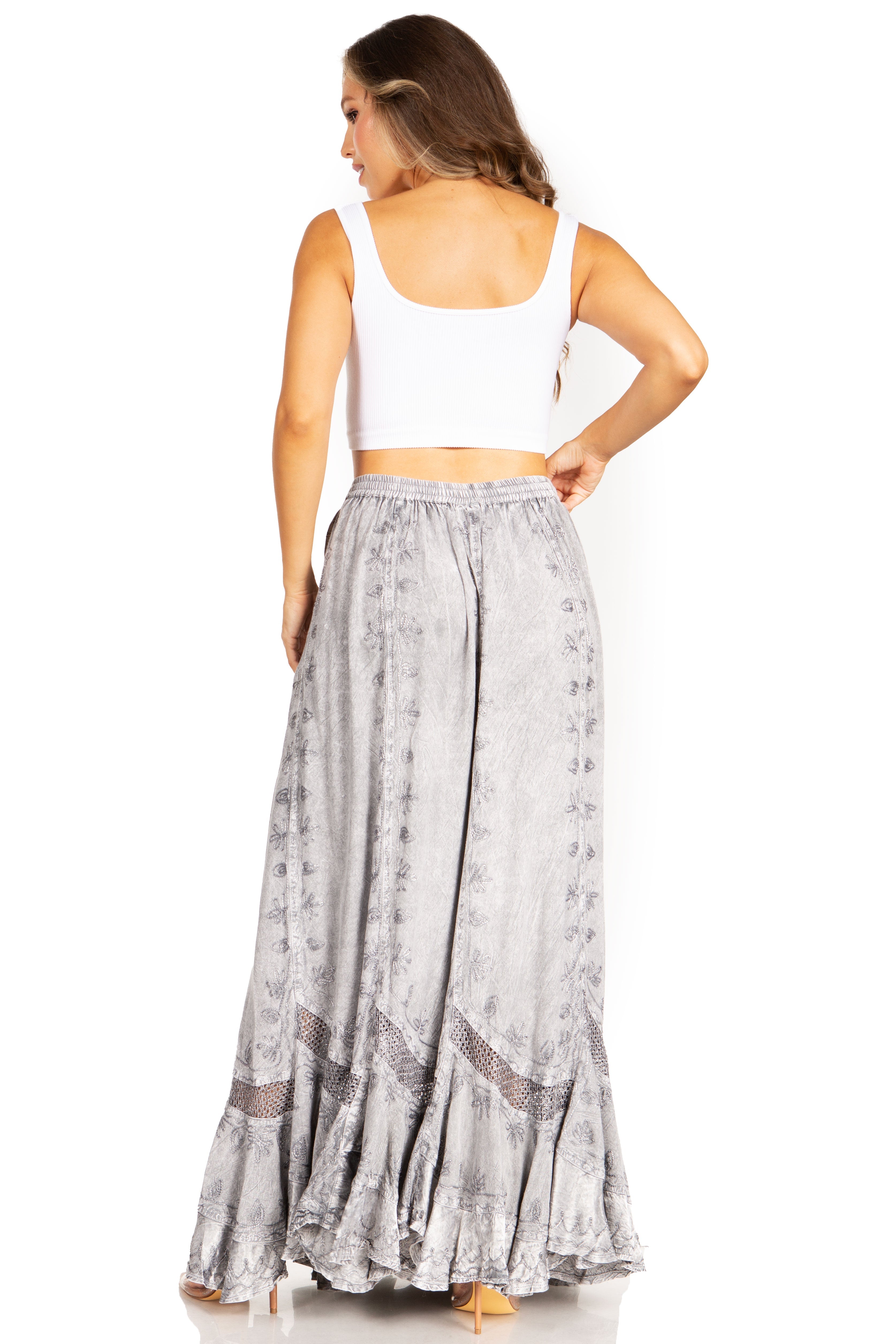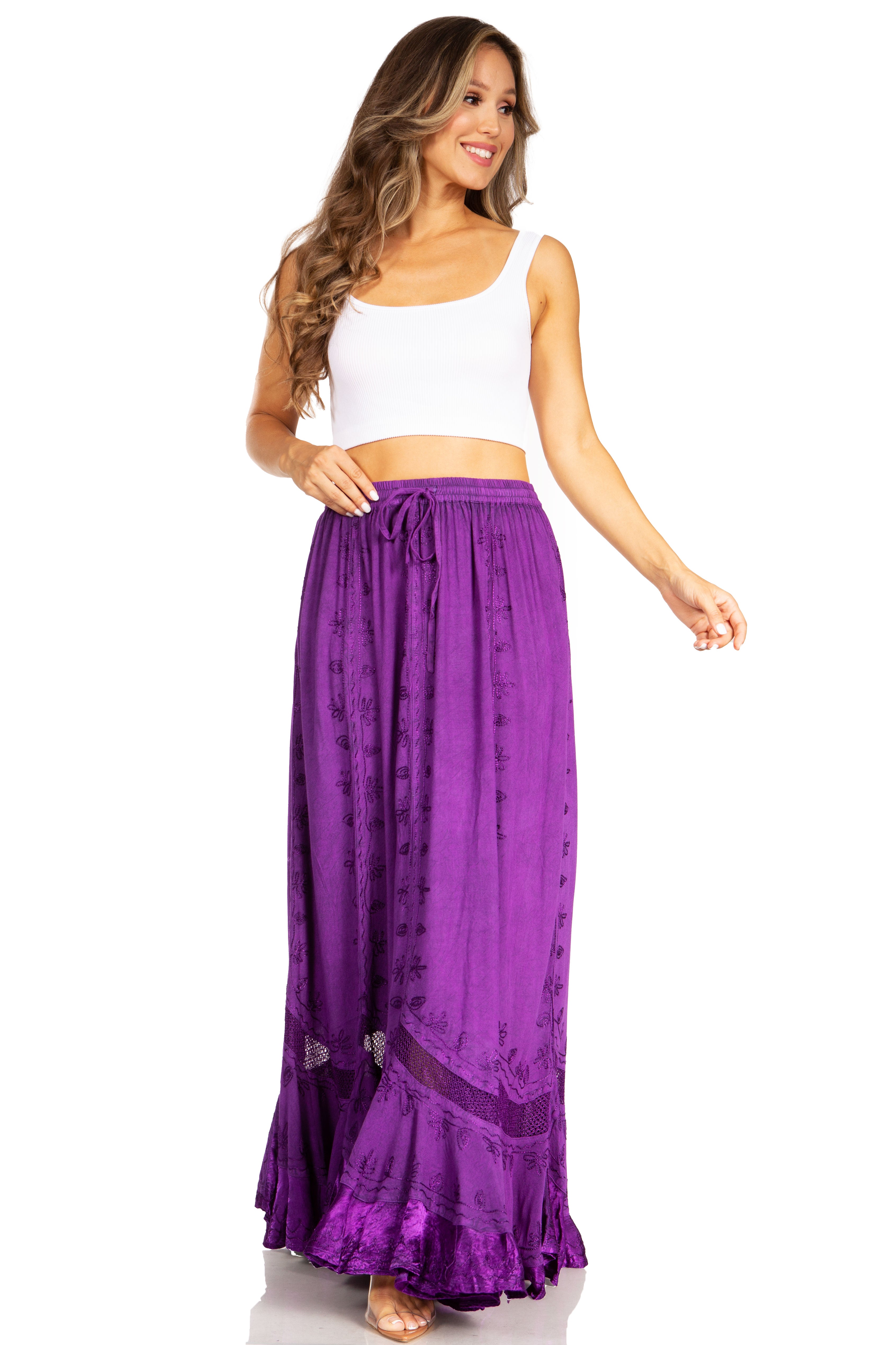 Sakkas Ivy Second Women's Maxi Boho Elastic Waist Embroidered A Line Long Skirt
