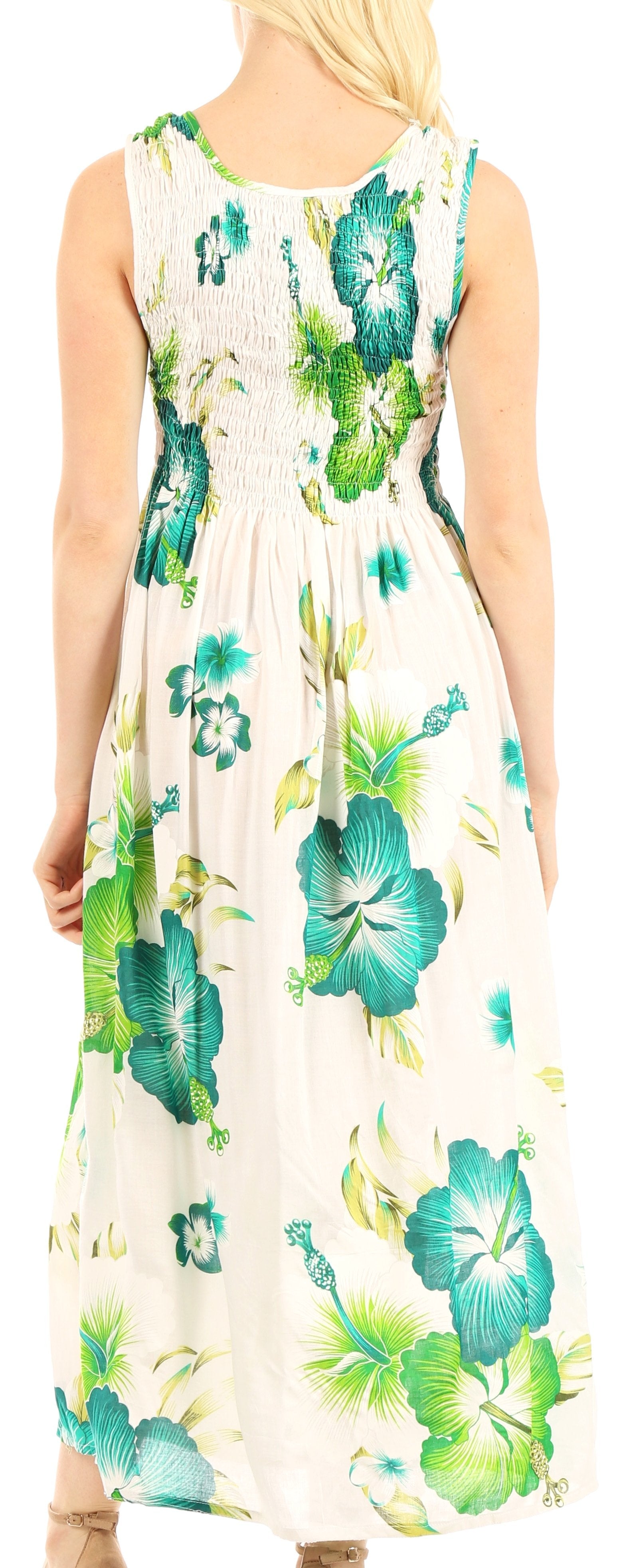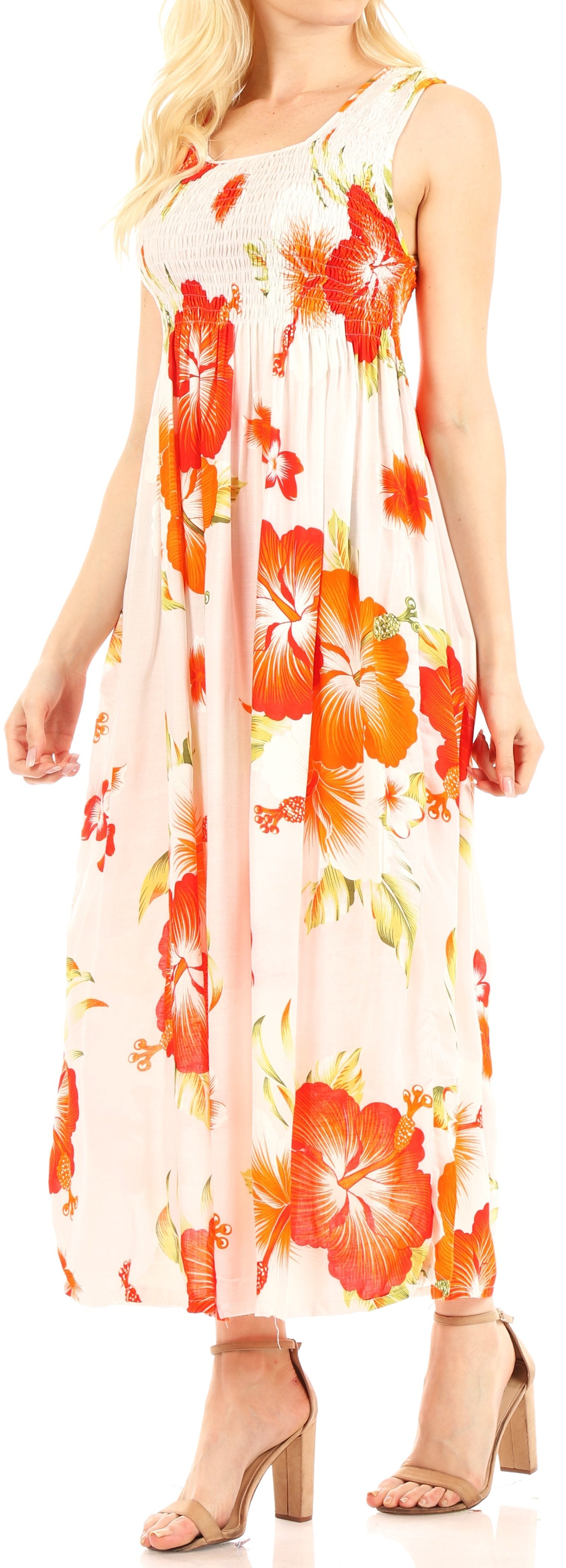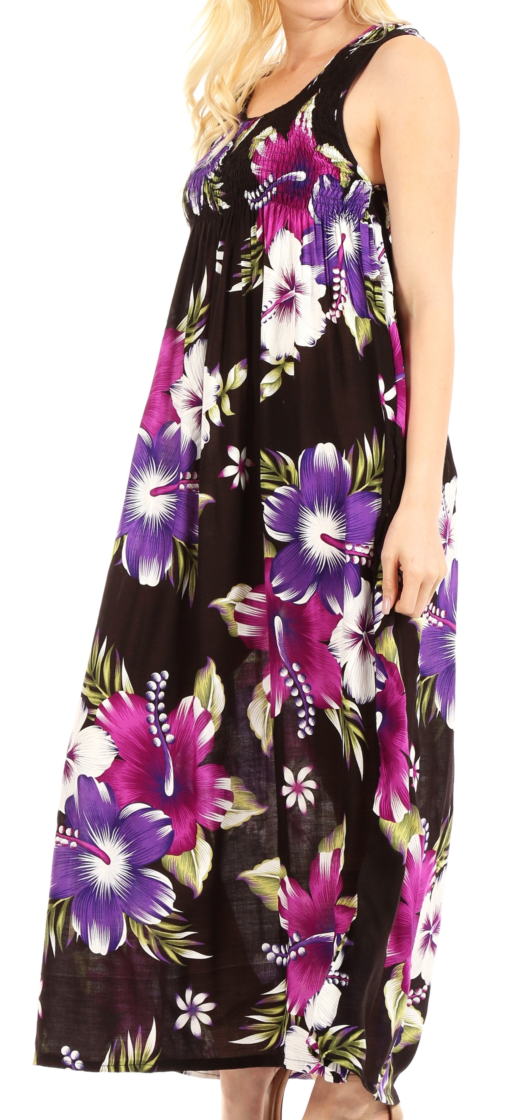 Sakkas Iyabo Women's Sleeveless Casual Summer Floral Print Dress Maxi Long Stretch