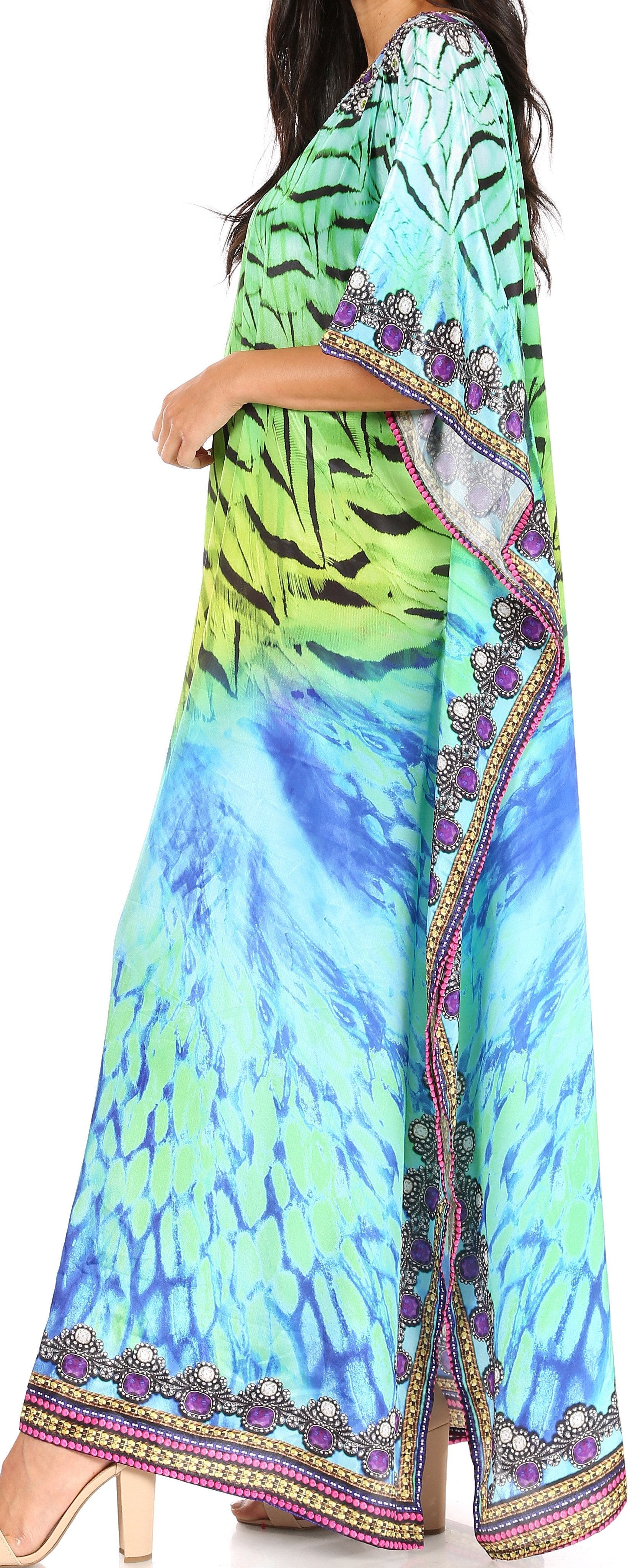 Sakkas Jabari Women's Maxi Short Sleeve Long Beach Kaftan Dress Boho Loose Gown