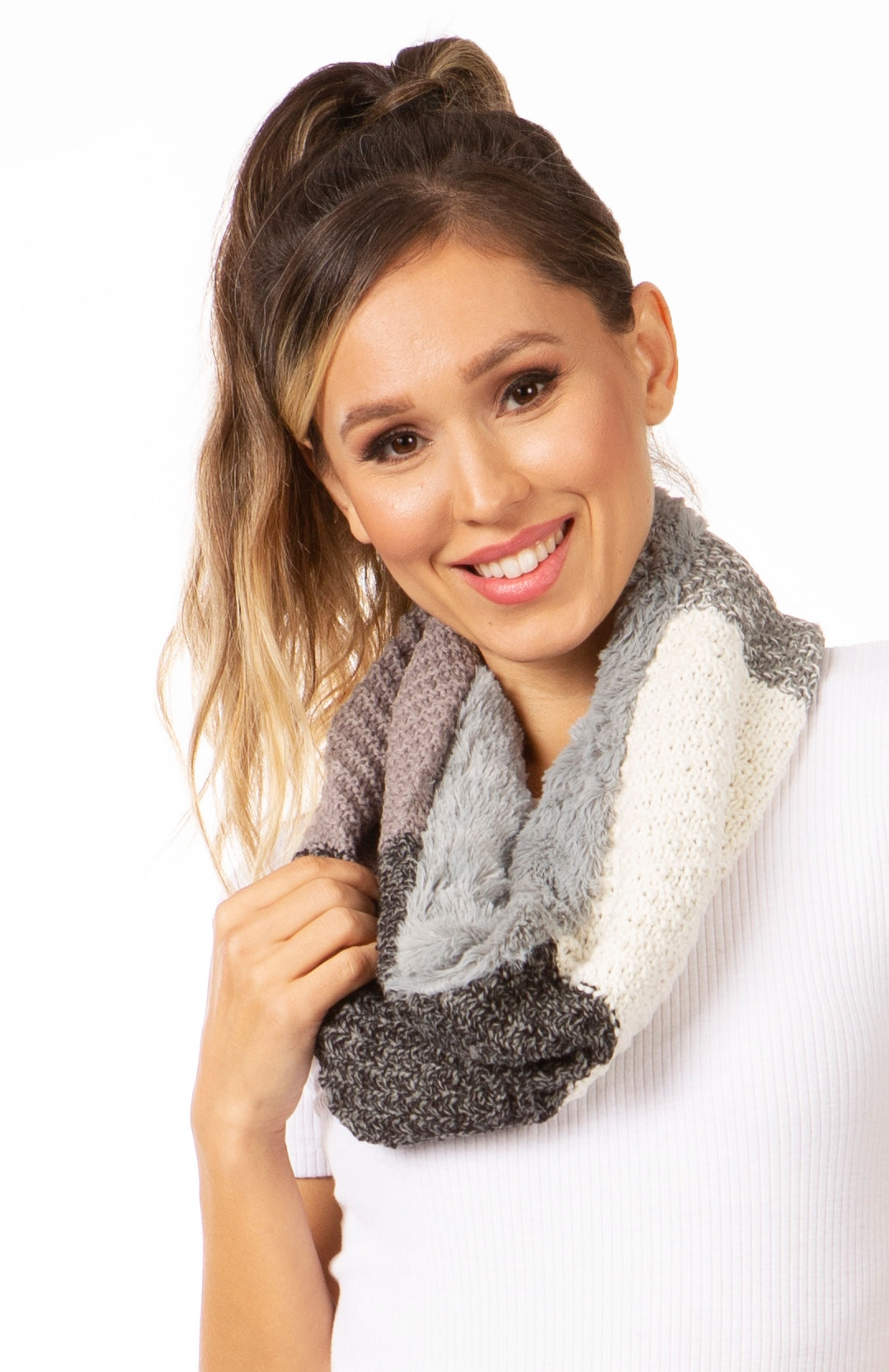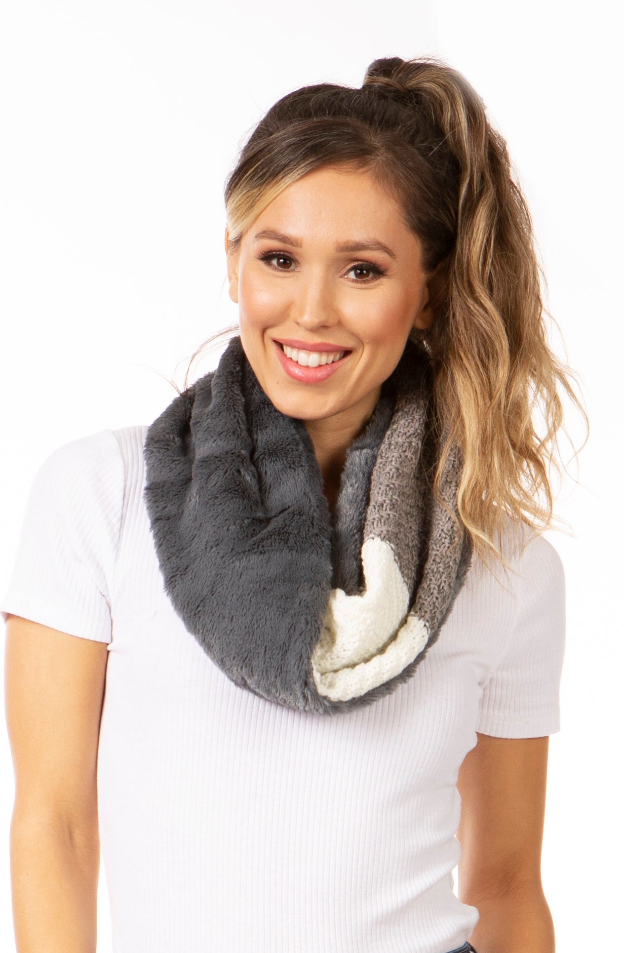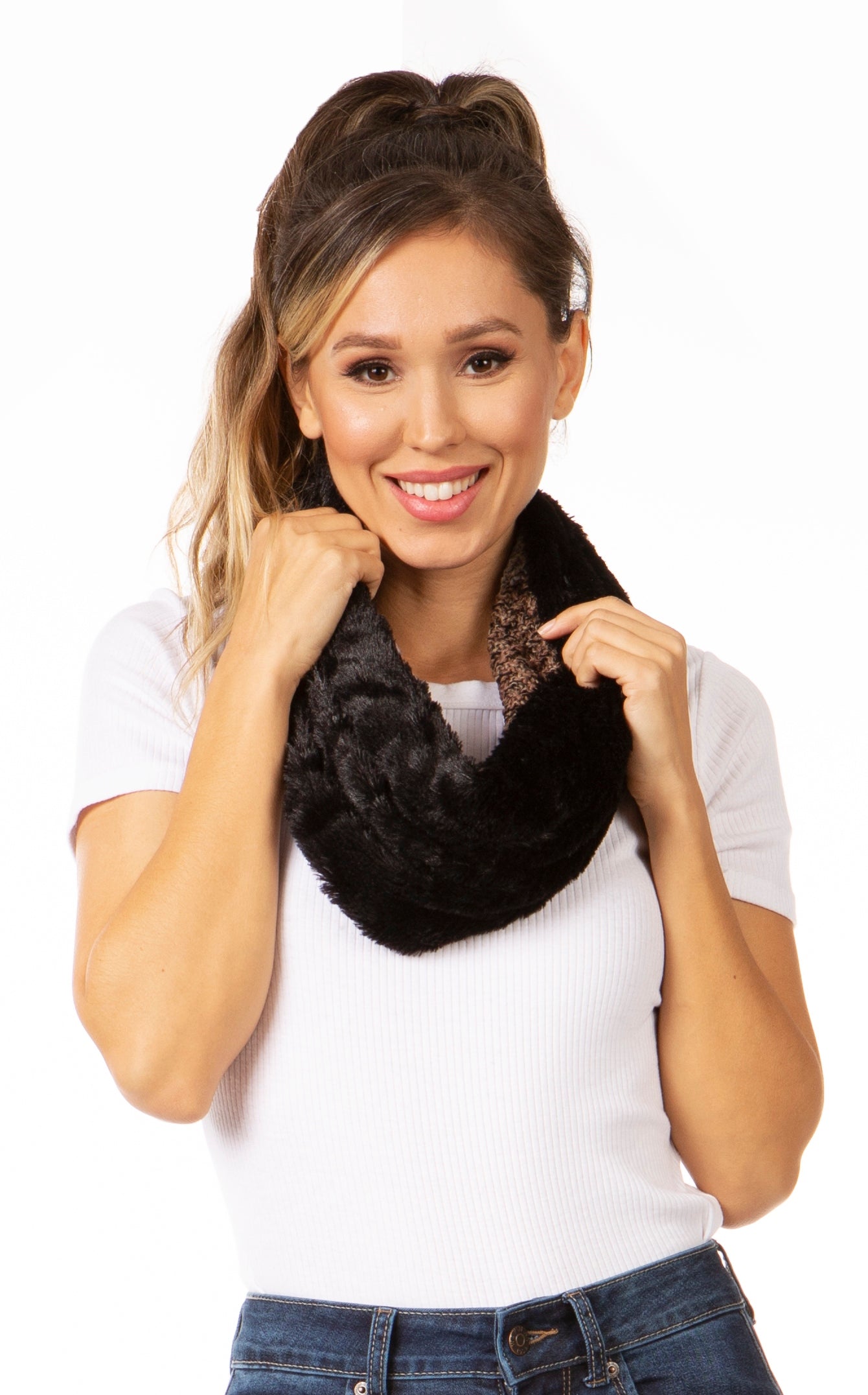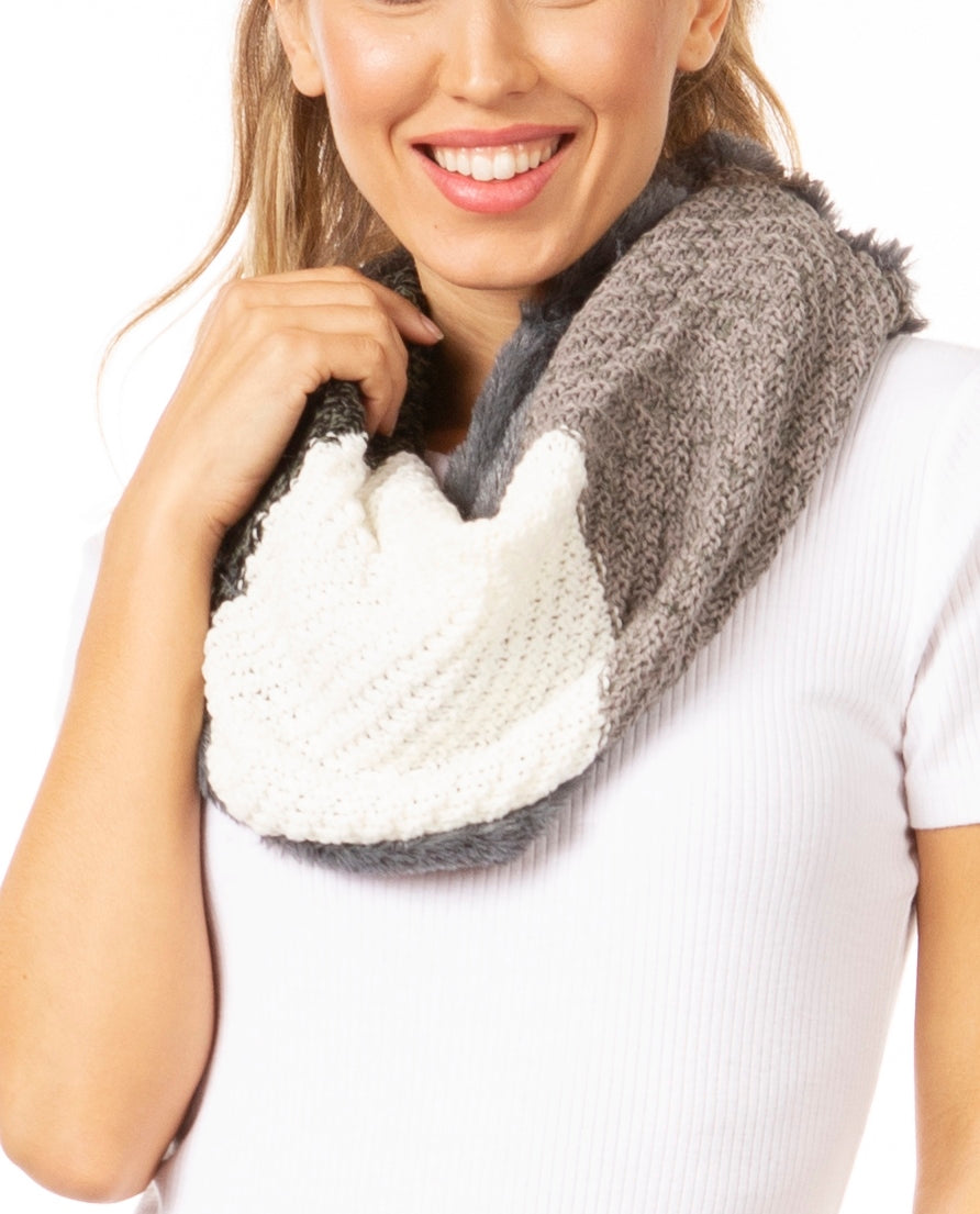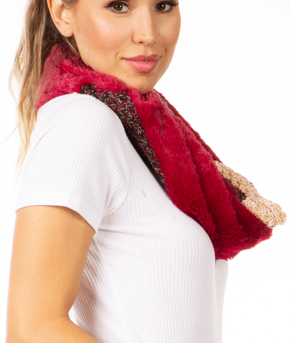 Sakkas Julie Short Wrap Around Two Sided Faux Fur And Ribbed Knit Infinity Scarf