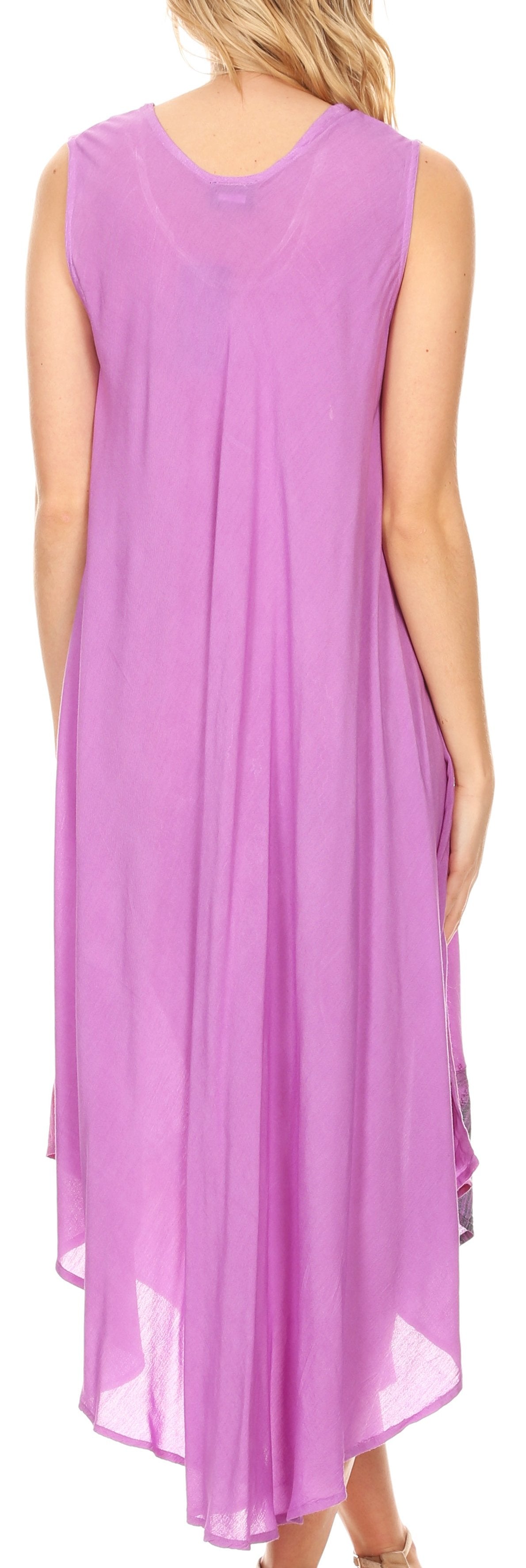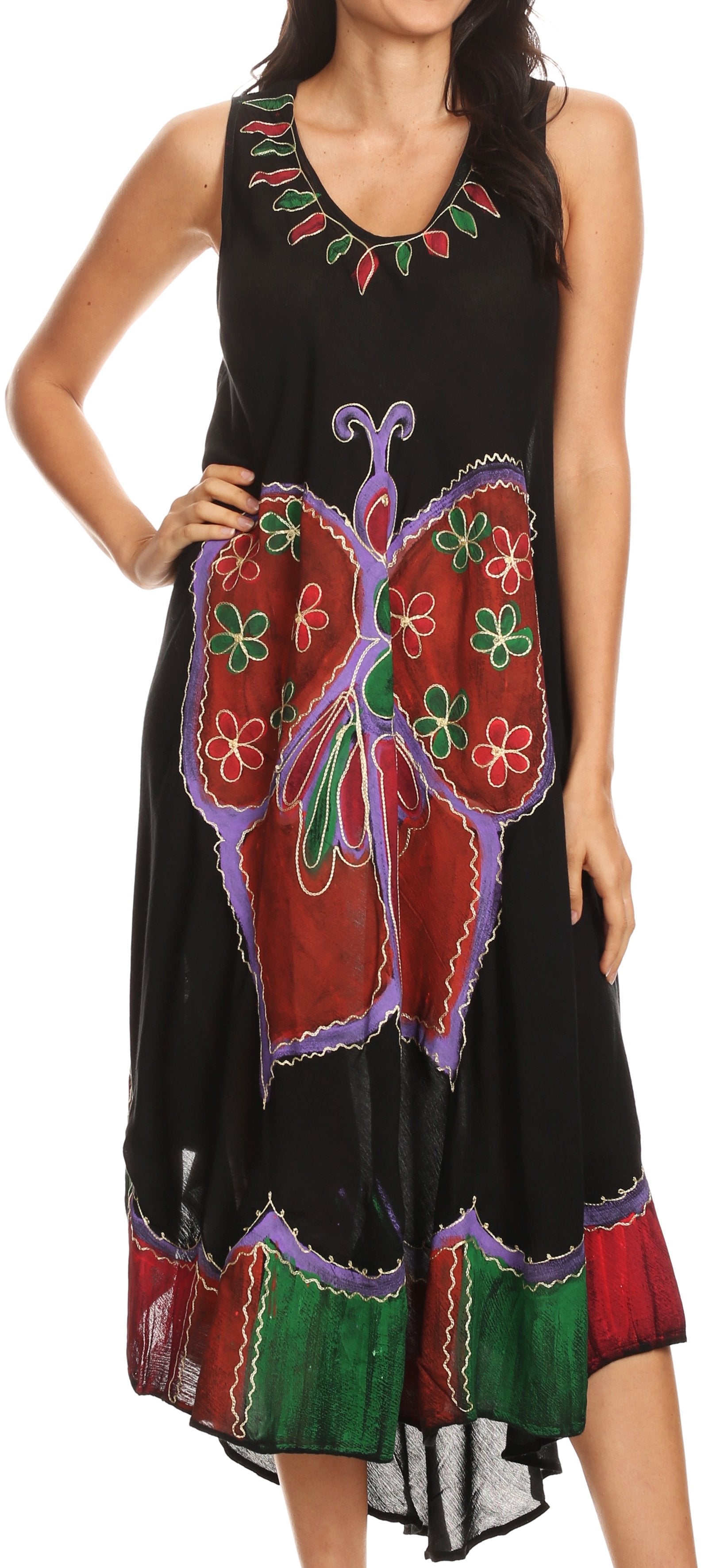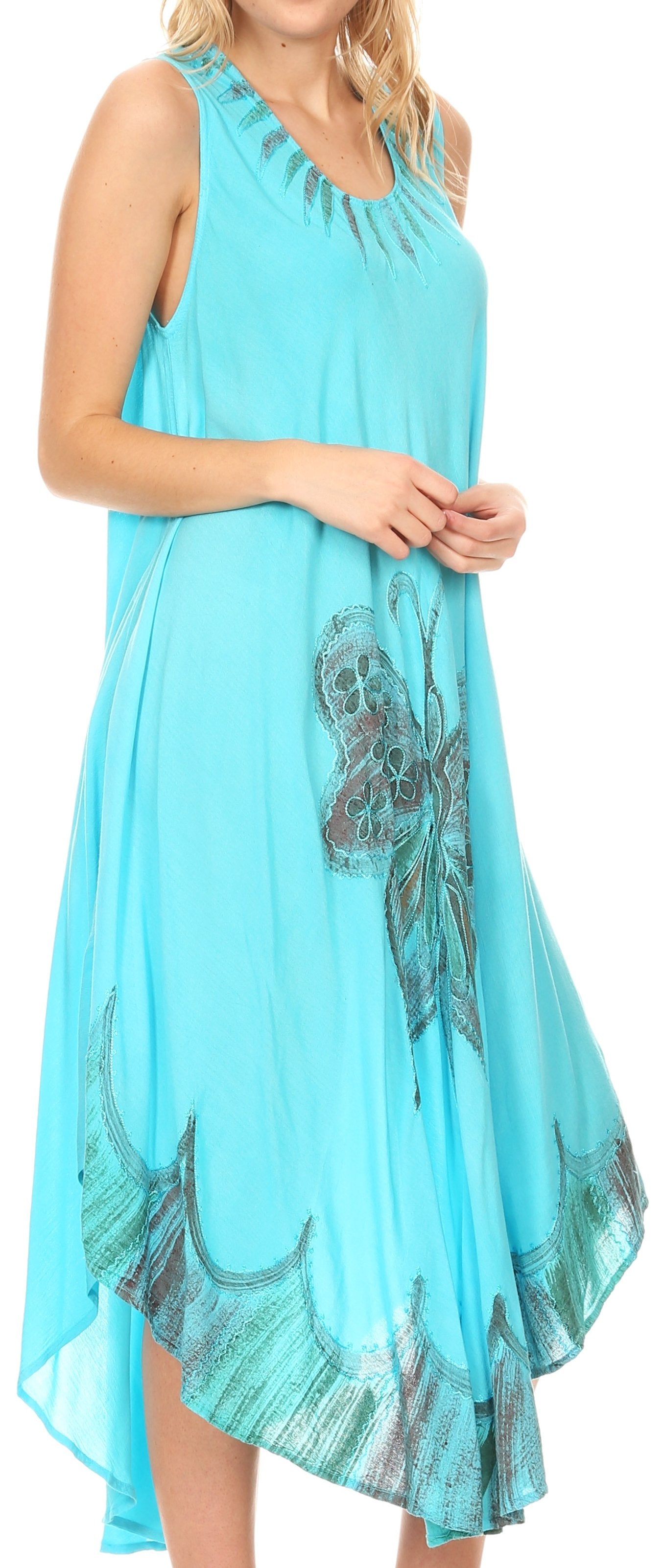 One size regular: Bust 44" (112 cm), Length 56" (142 cm). US 4-16W, EU 34-46, UK 8-20. SUMMER READY: The perfect dress to keep you fresh and stunning in warm weather. Tank style upper with a relaxed flowy bottom. Lovely as cover up, slip may be needed depending on occasion. Flirty and fun to wear, goes very nice with sandals. Accentuate waist by adding a belt.