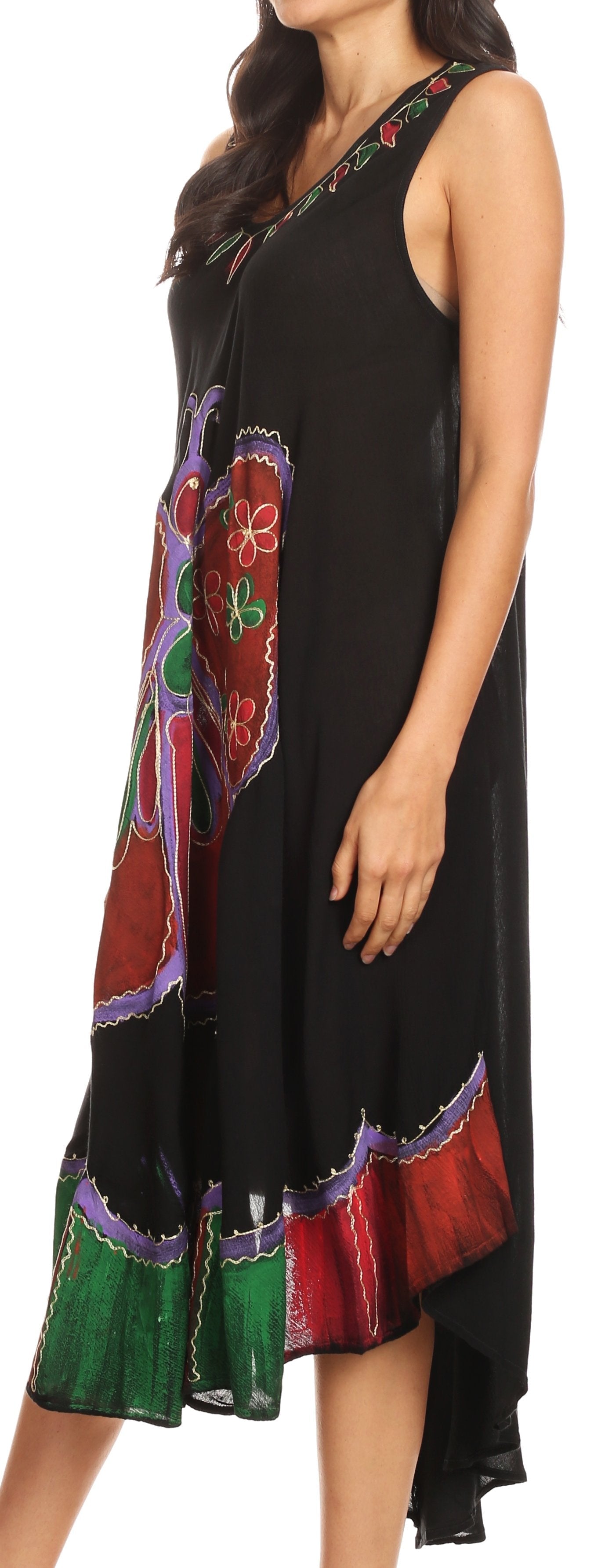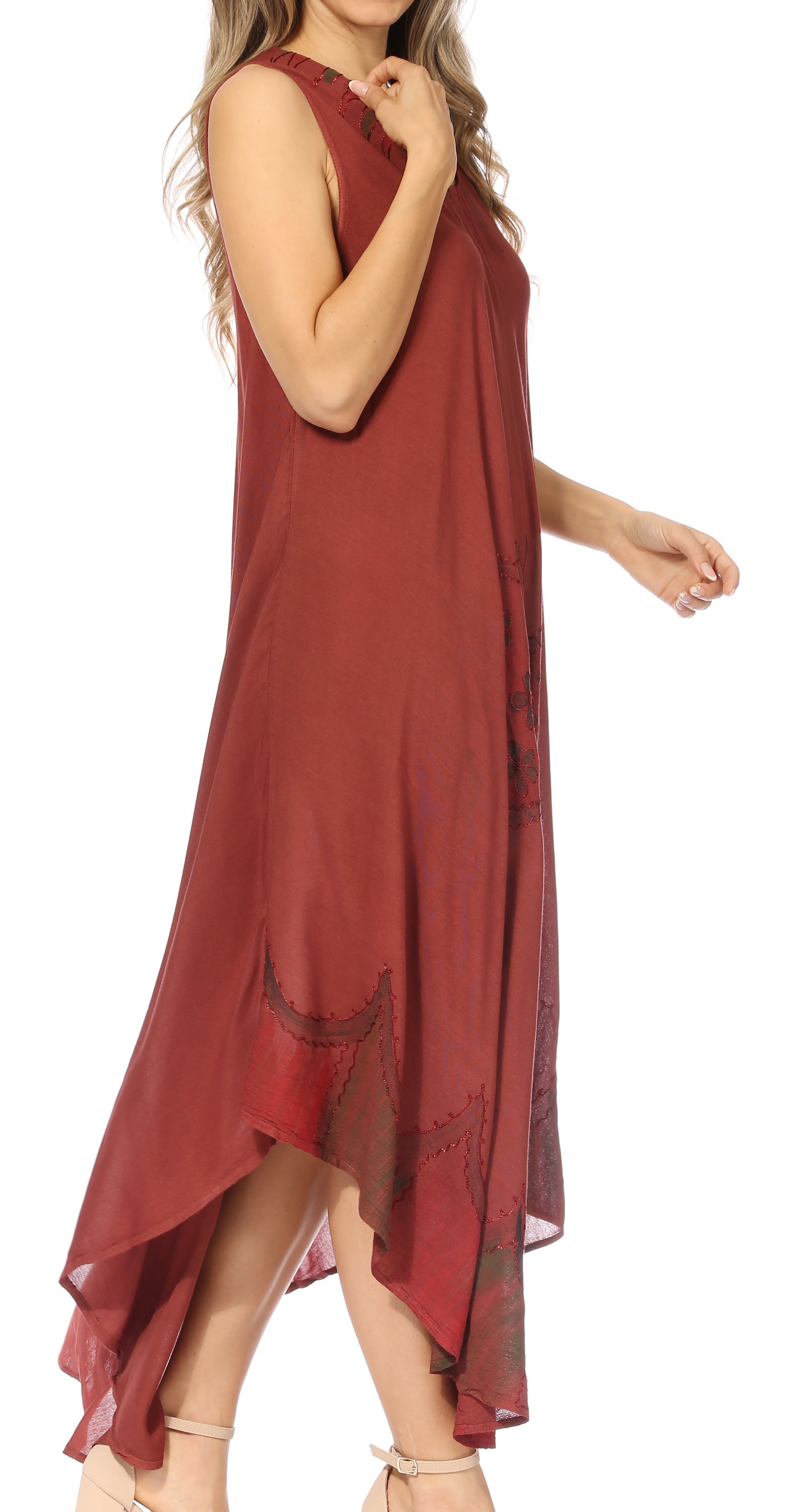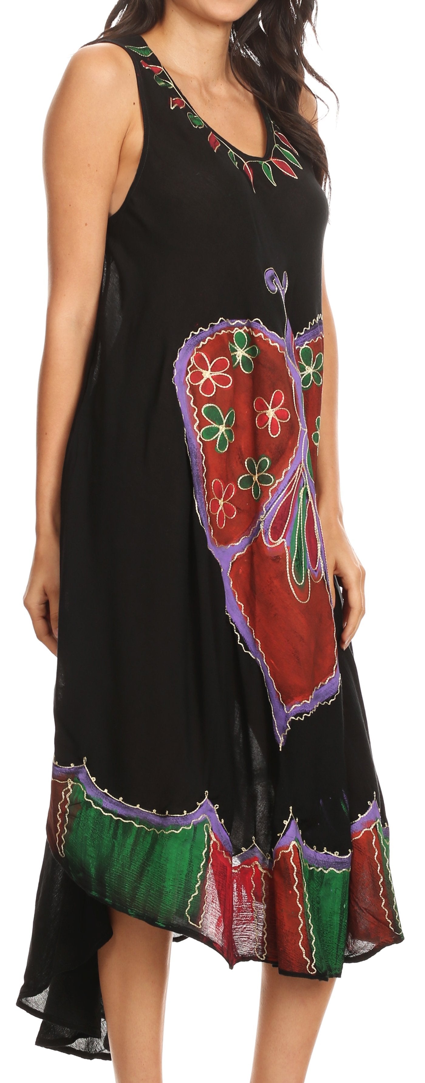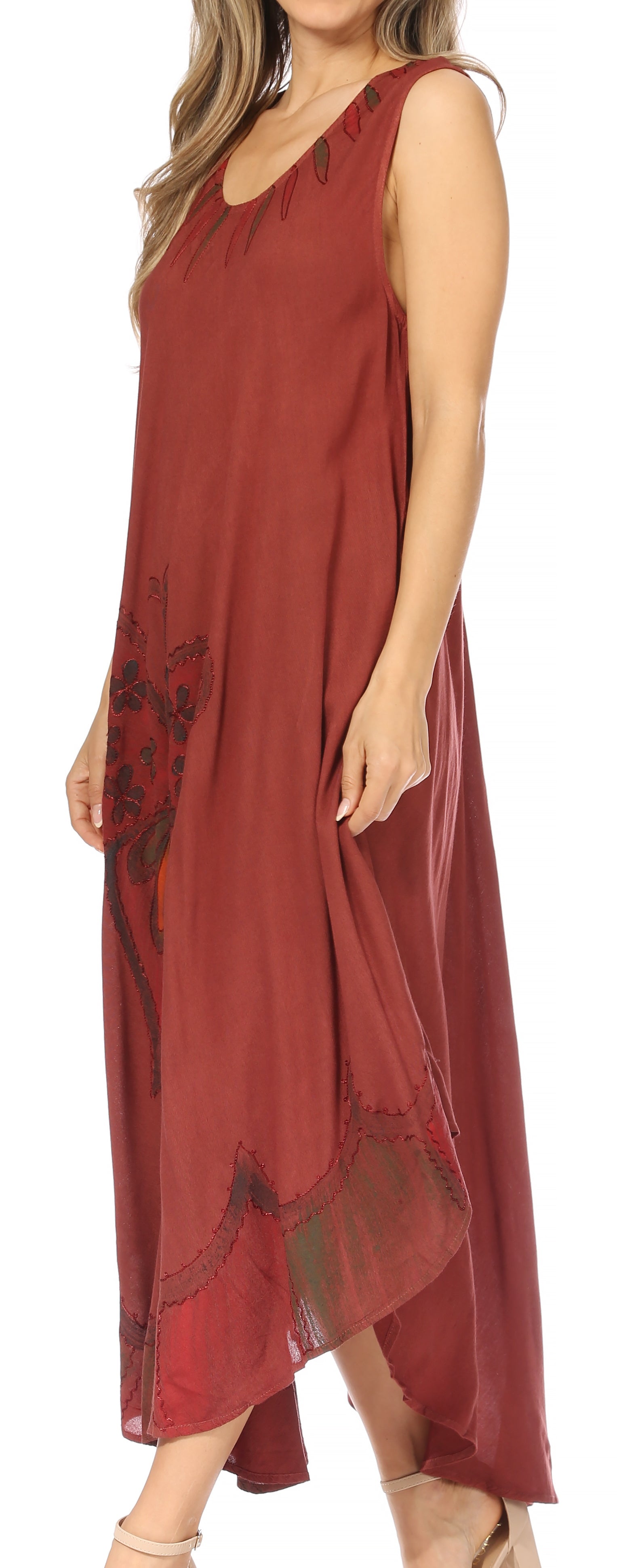 One size regular: Bust 44" (112 cm), Length 56" (142 cm). US 4-16W, EU 34-46, UK 8-20. SUMMER READY: The perfect dress to keep you fresh and stunning in warm weather. Tank style upper with a relaxed flowy bottom. Lovely as cover up, slip may be needed depending on occasion. Flirty and fun to wear, goes very nice with sandals. Accentuate waist by adding a belt.