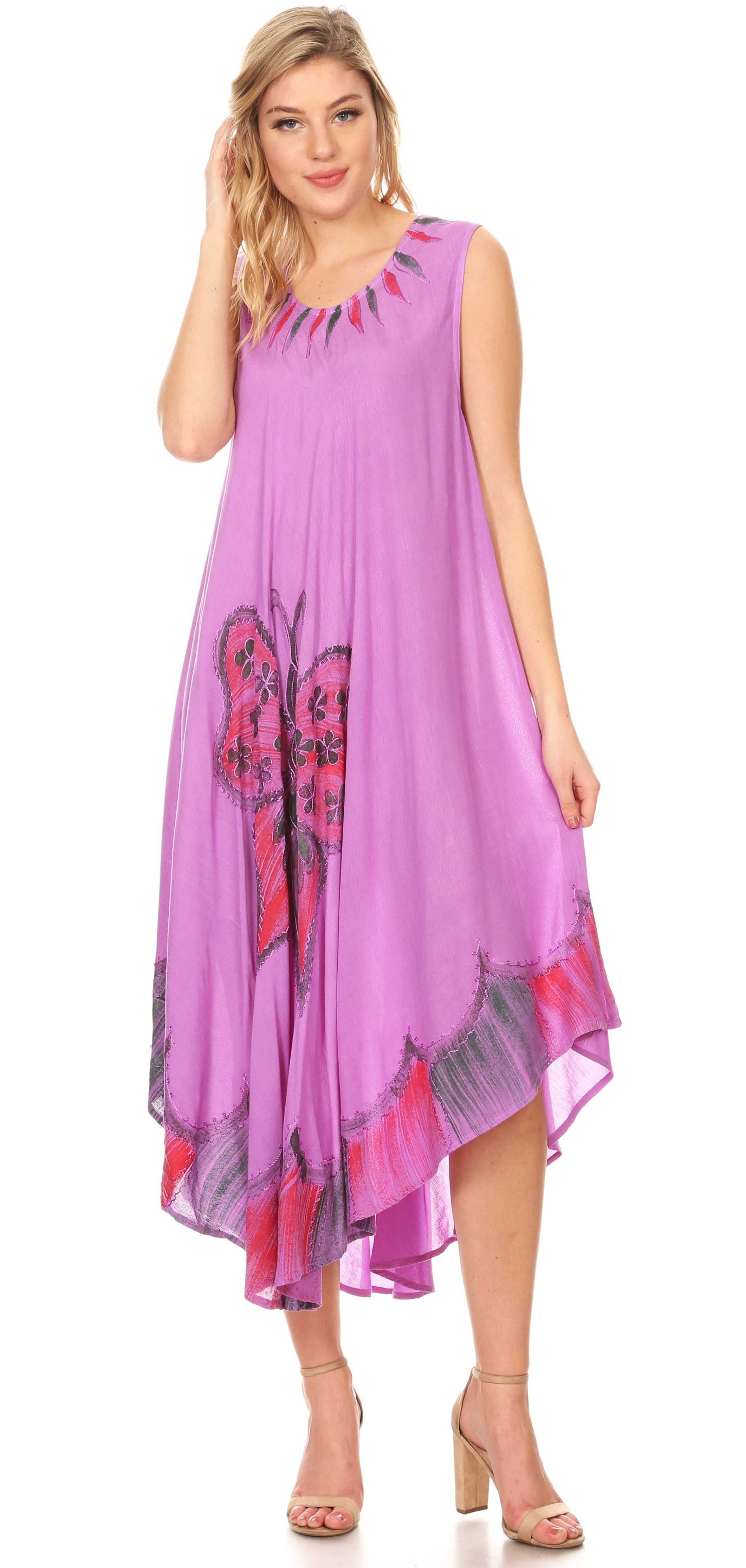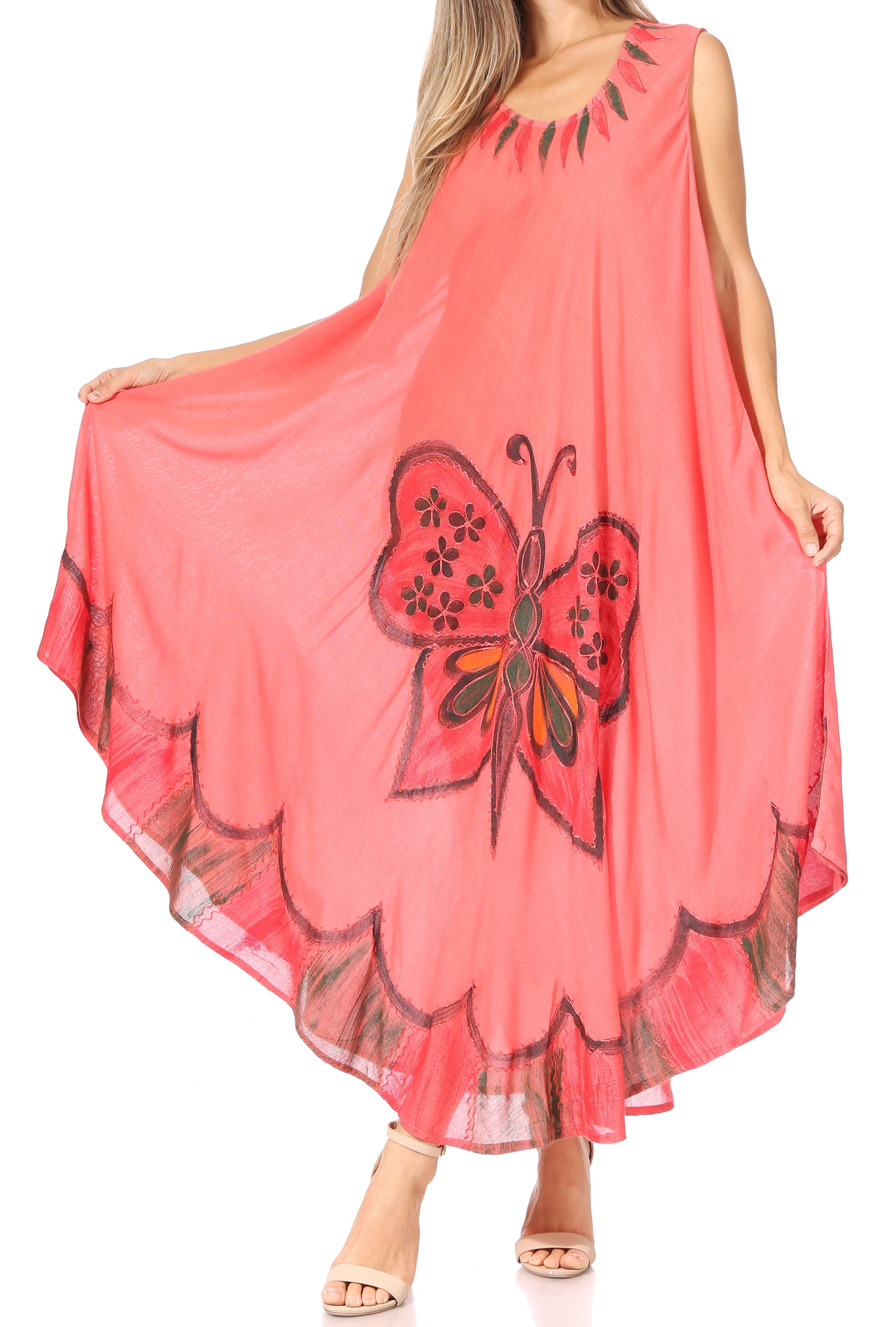 RELAX COMFY FIT: Feel the breeze and enjoy summer in this tent caftan dress. Lots of fullness at bottom, drapes away from the body to allow you to move more freely and with ease, fits regular sizes from 4-16W approx. Made with 100% Rayon lightweight material, follow care instructions.