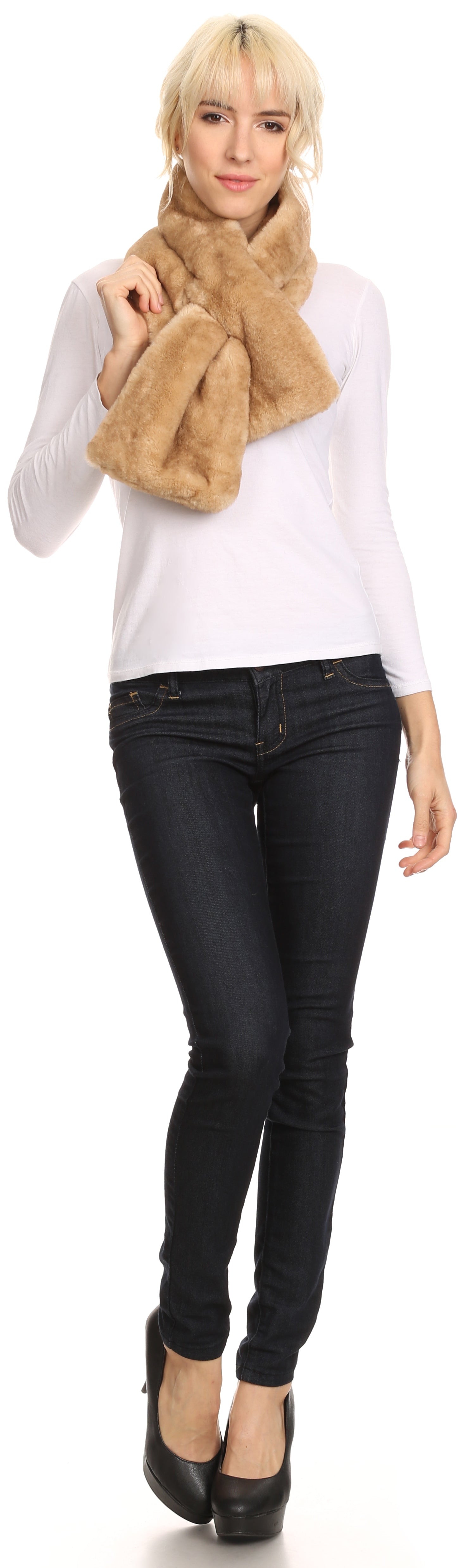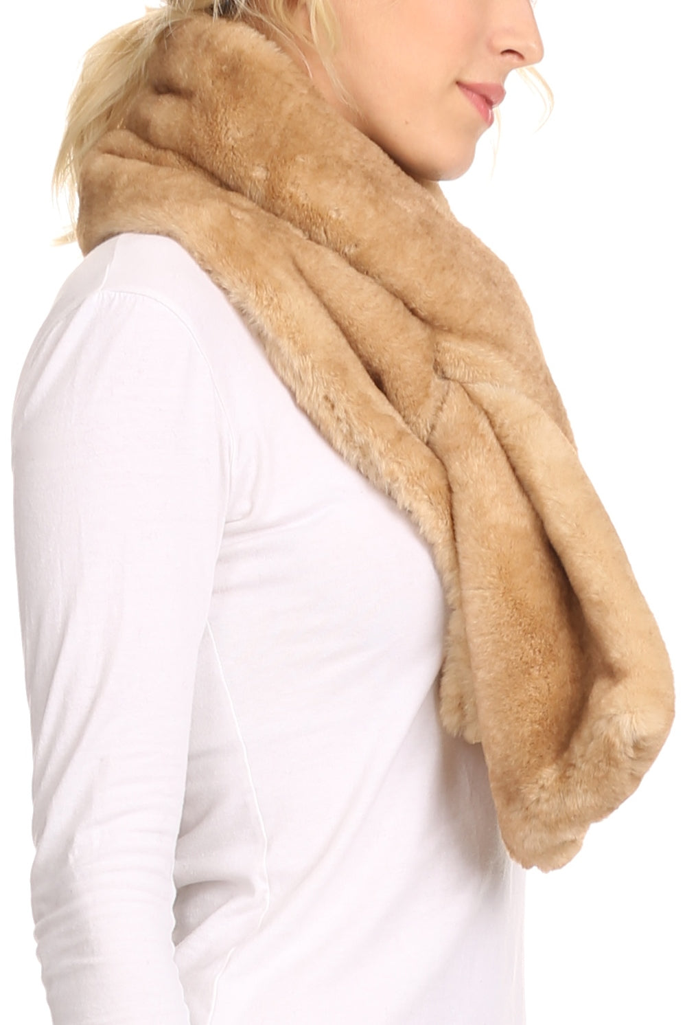 Sakkas Kiy Loophole Faux Fur Long Soft Warm Comfortable Textured Bow Scarf