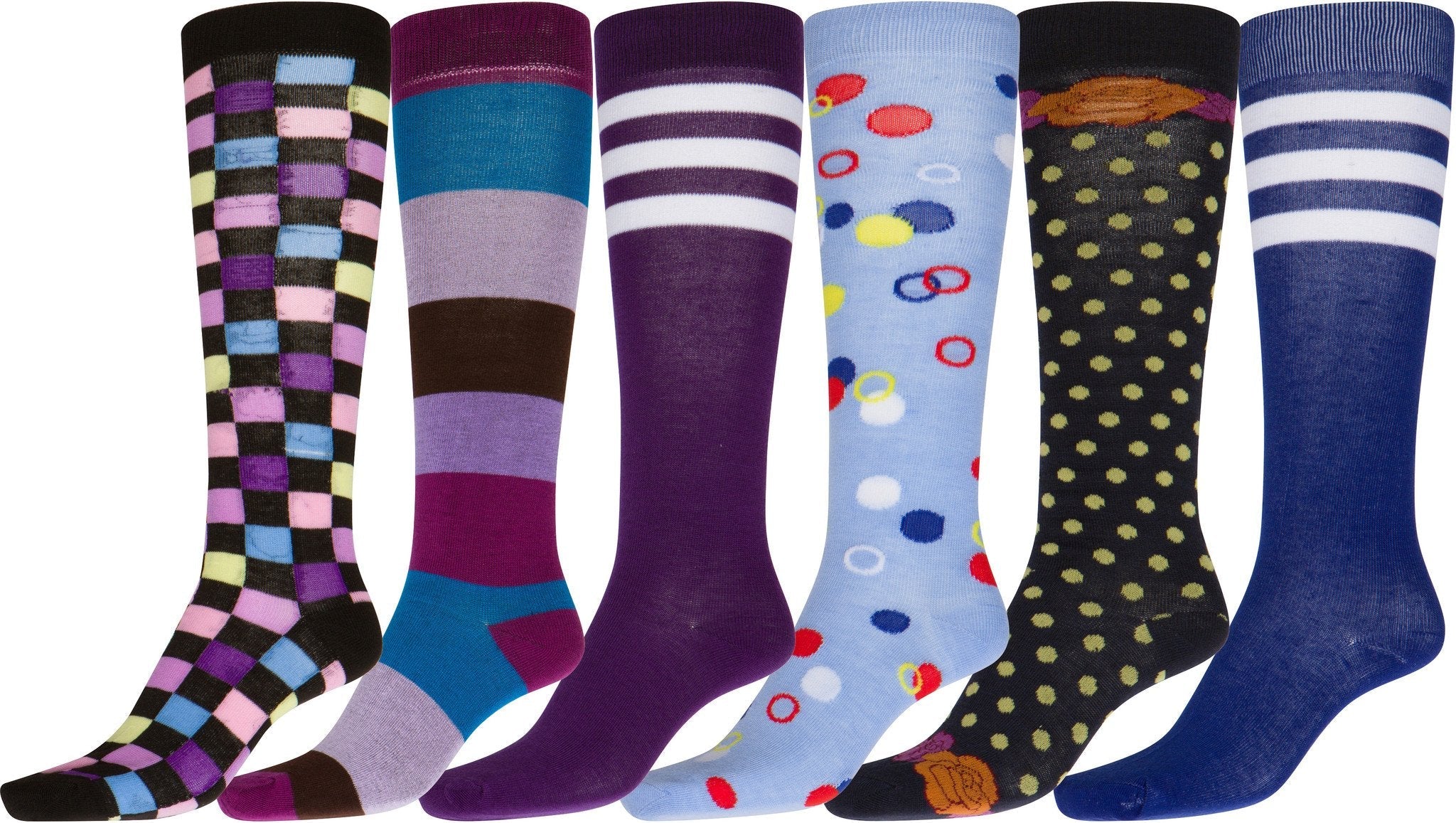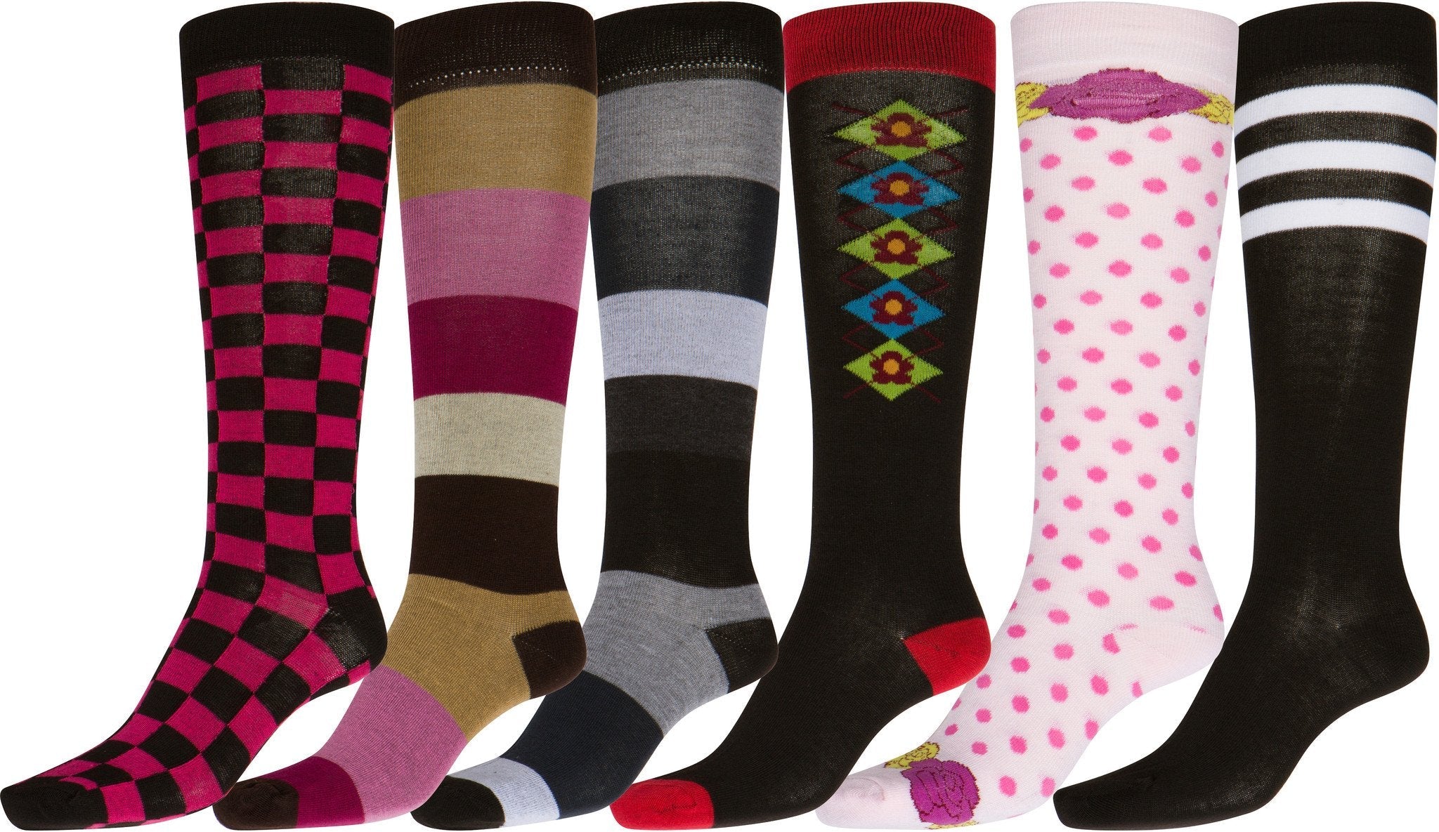 Sakkas Liea Ladies Colorful Unique Pattern / Solid Knee High Socks Assorted 6-Pack