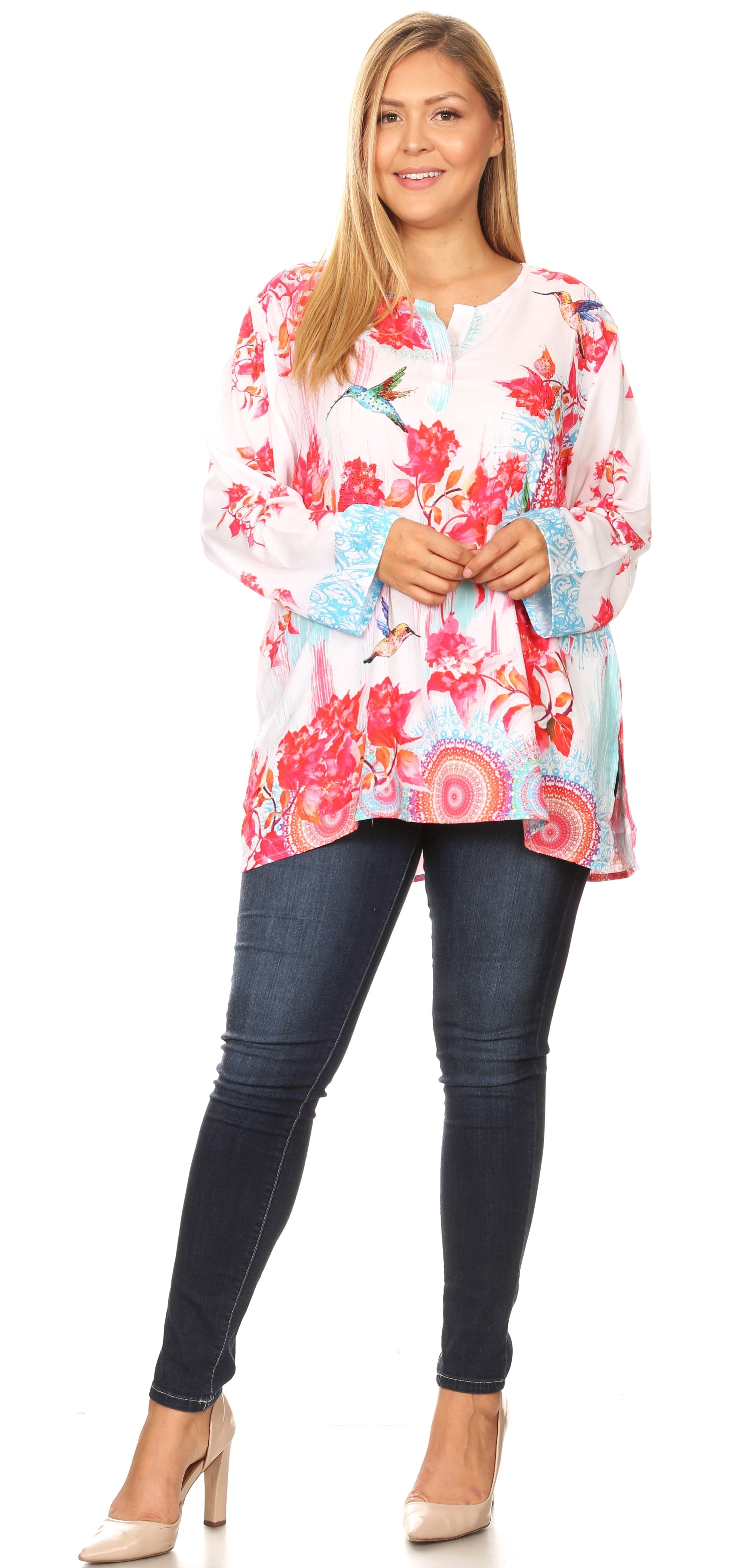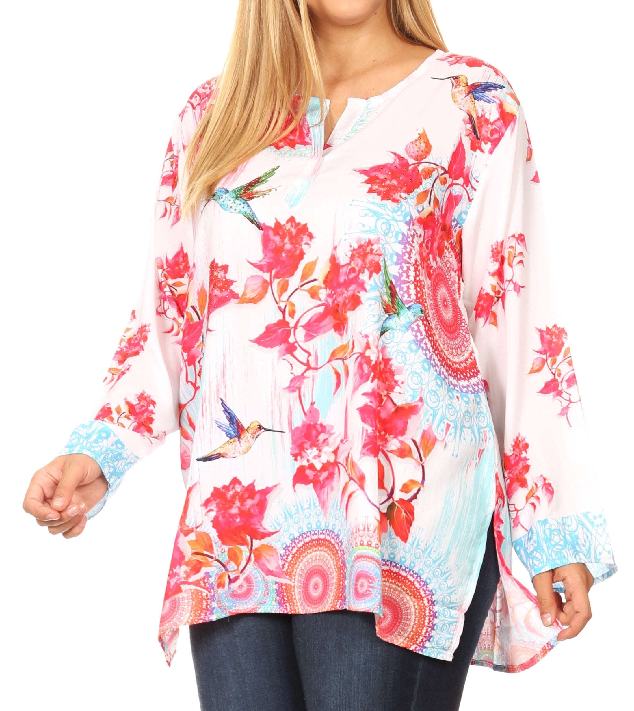Sakkas Linea Women's Casual Floral Print Long Sleeve Swing Boho Pullover Tunic Top
