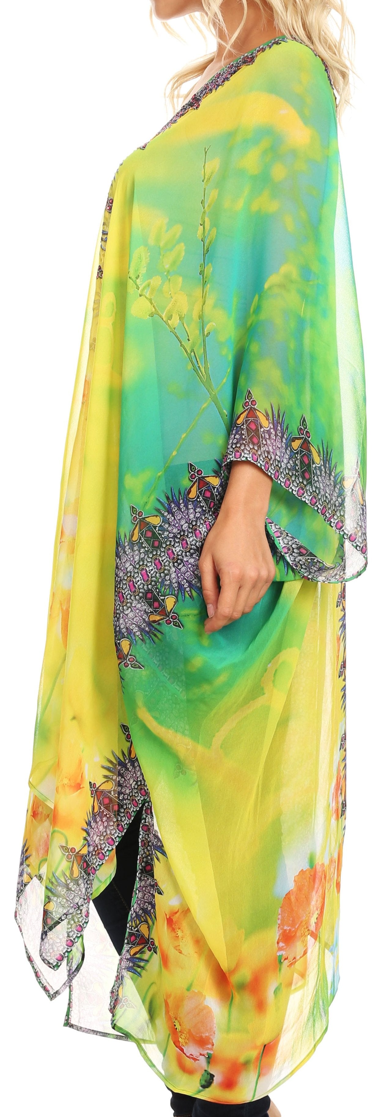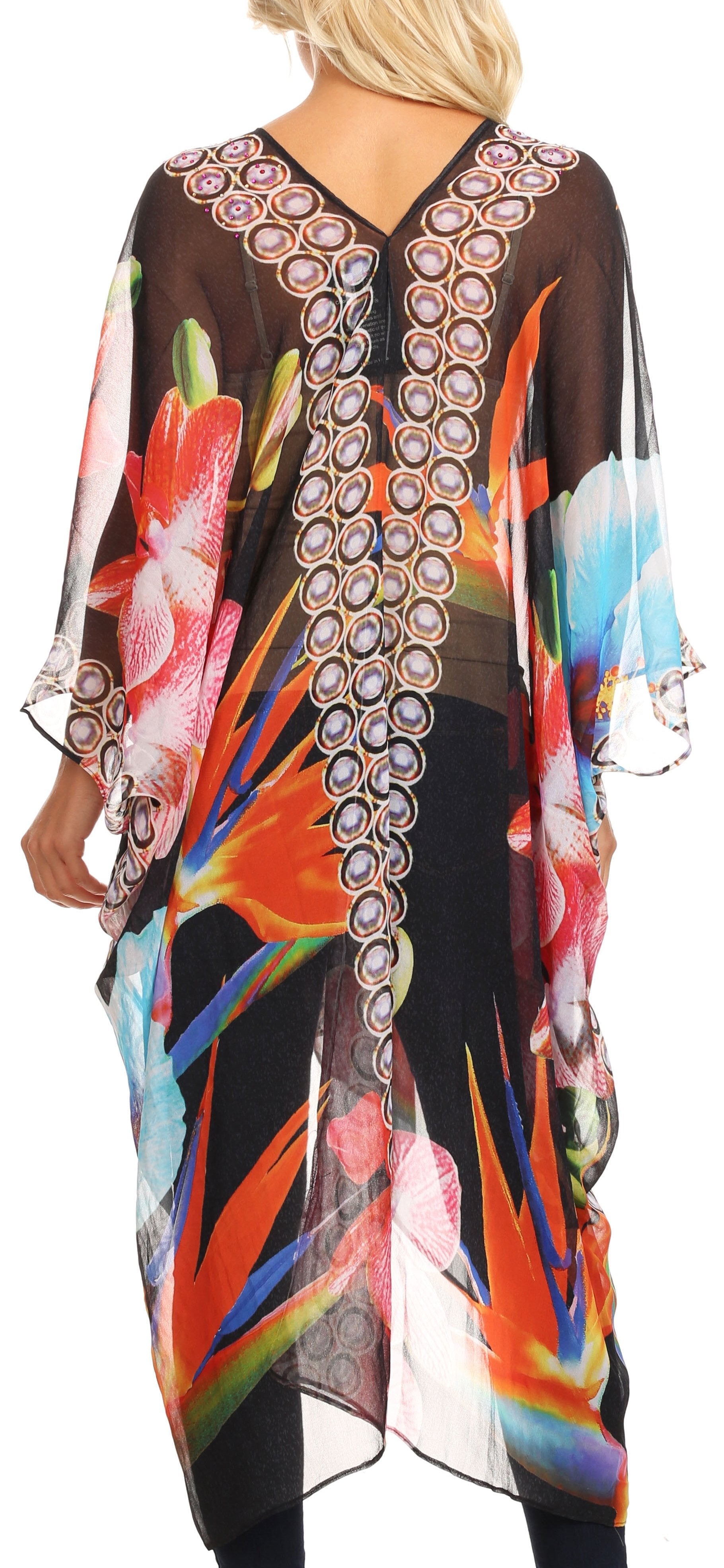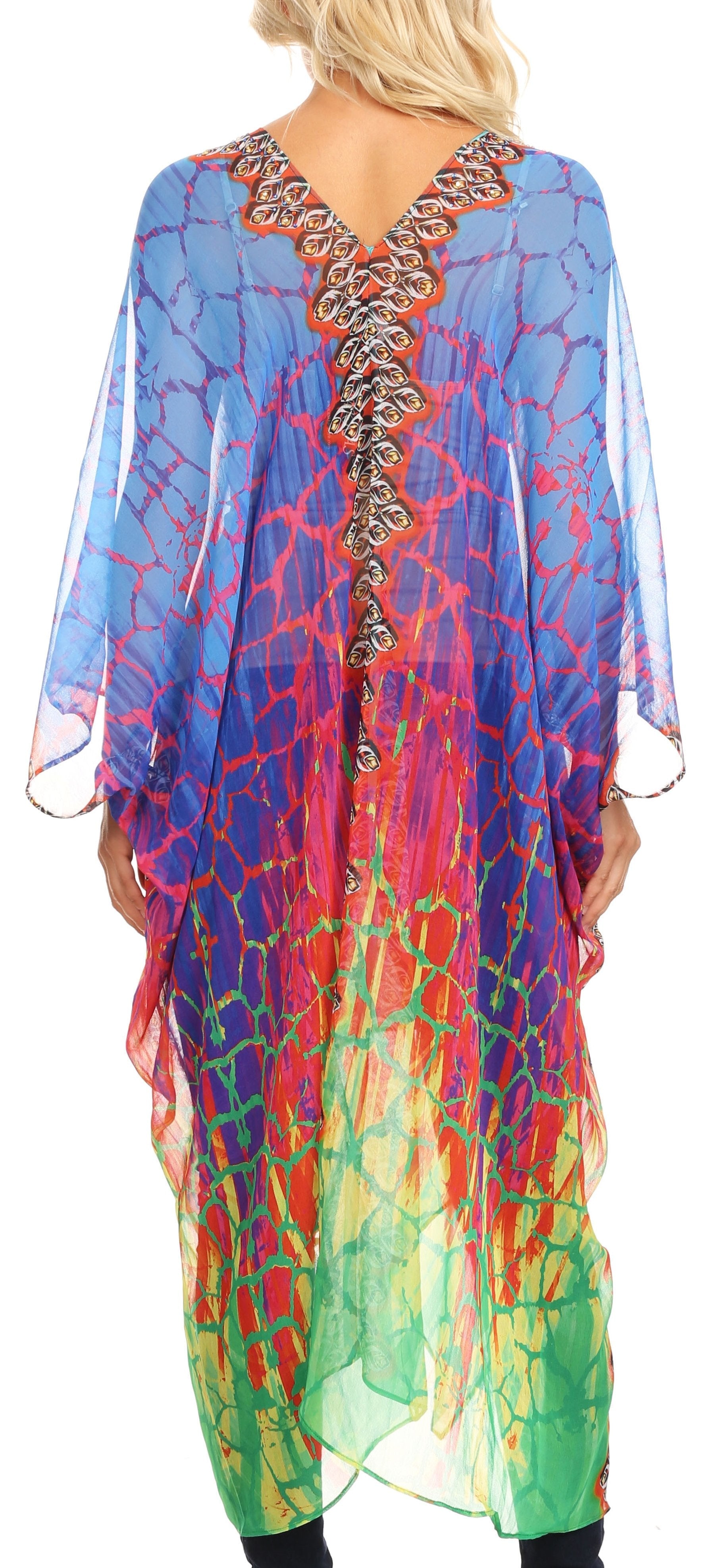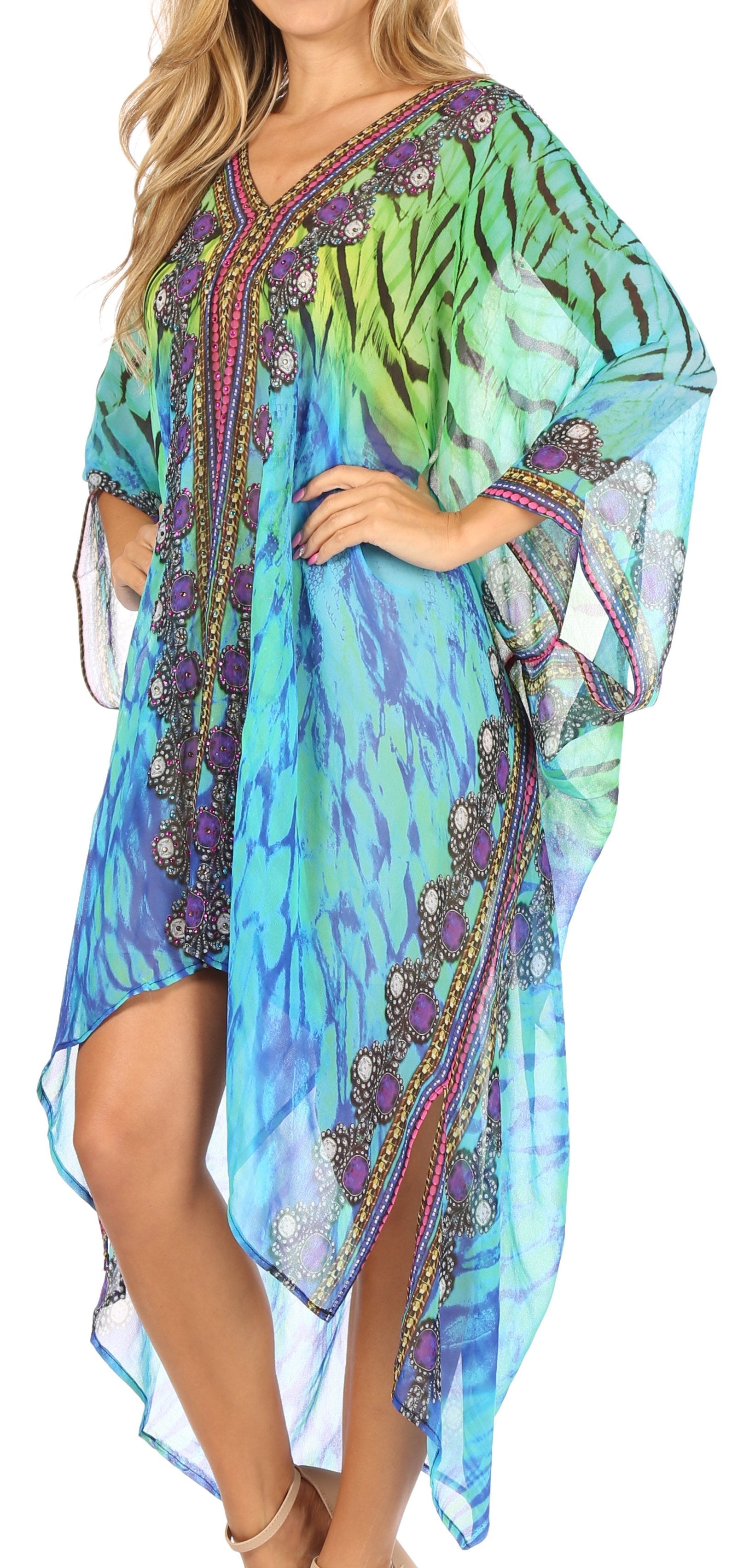 Sakkas Livi  Women's V Neck Beach Dress Cover up Caftan Top Loose with Rhinestone