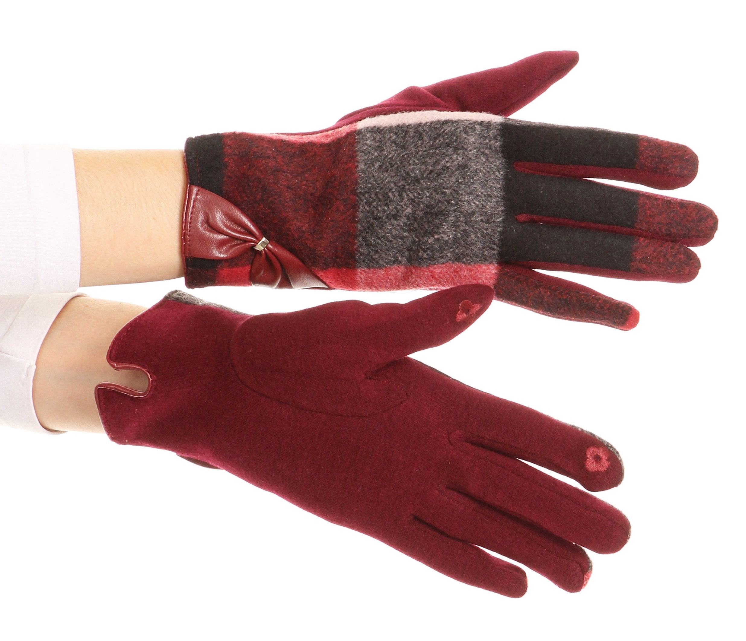 • Style #17101, A more casual glove knit and faux suede with floral print, small embroidered flower at finger tips for touch screening. Warm, fleece and soft lamb's ear fur texture lined. The perfect accessory for fall! Style #17102, Plaid wool material like and solid knit, small bow detail at cuff, fleece and soft lamb's ear fur texture lining, small embroidered flower at finger tips for touch screening.