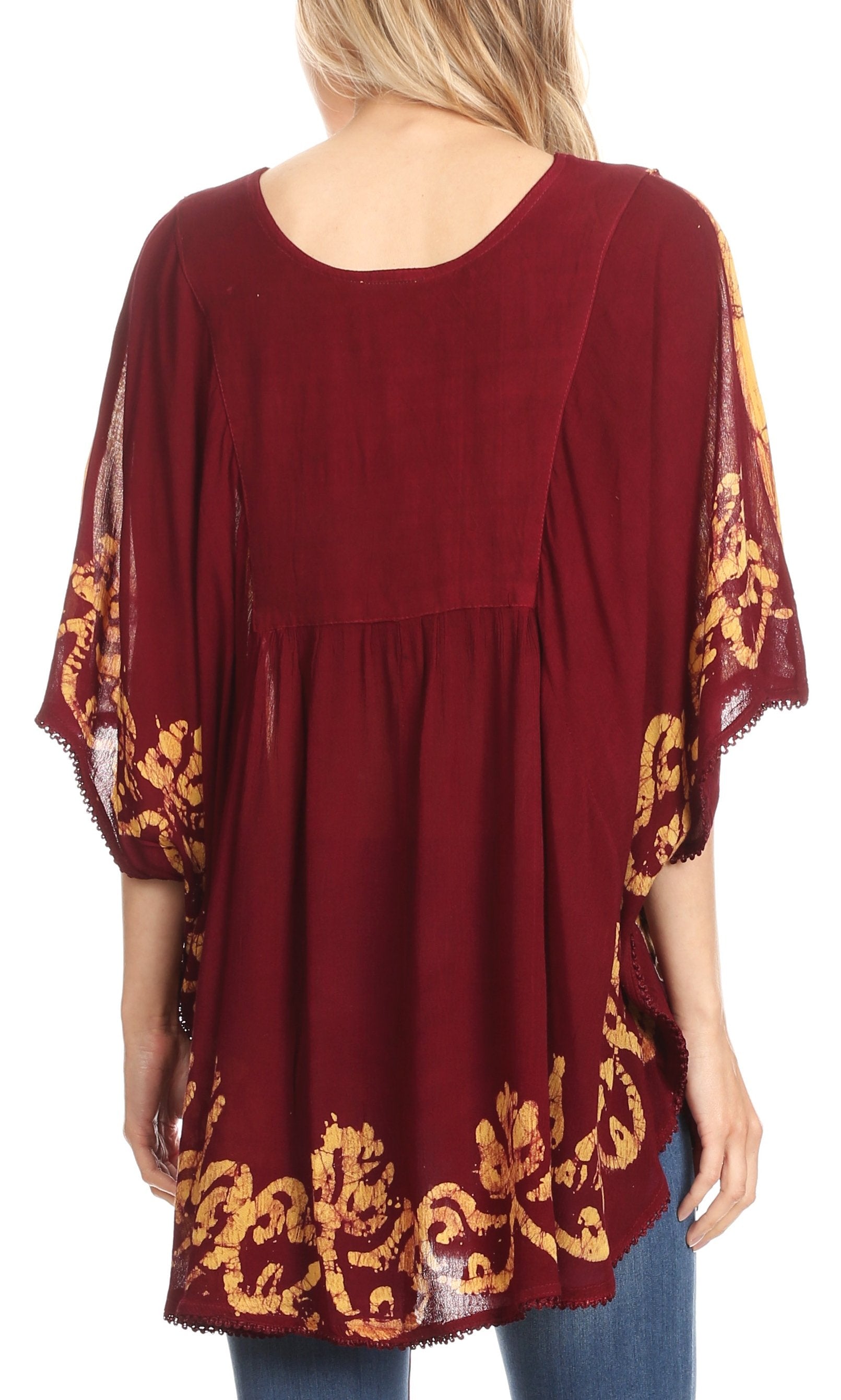 Sakkas Lynda Two Tone Batik Embroidered Palm Tree Peasant Top / Poncho