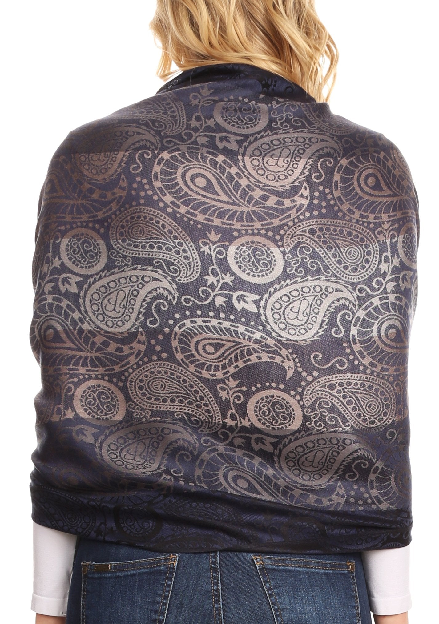 Sakkas Marga Women's Silky Soft Reversible Paisley Woven Pashmina Scarf Shawl Wrap