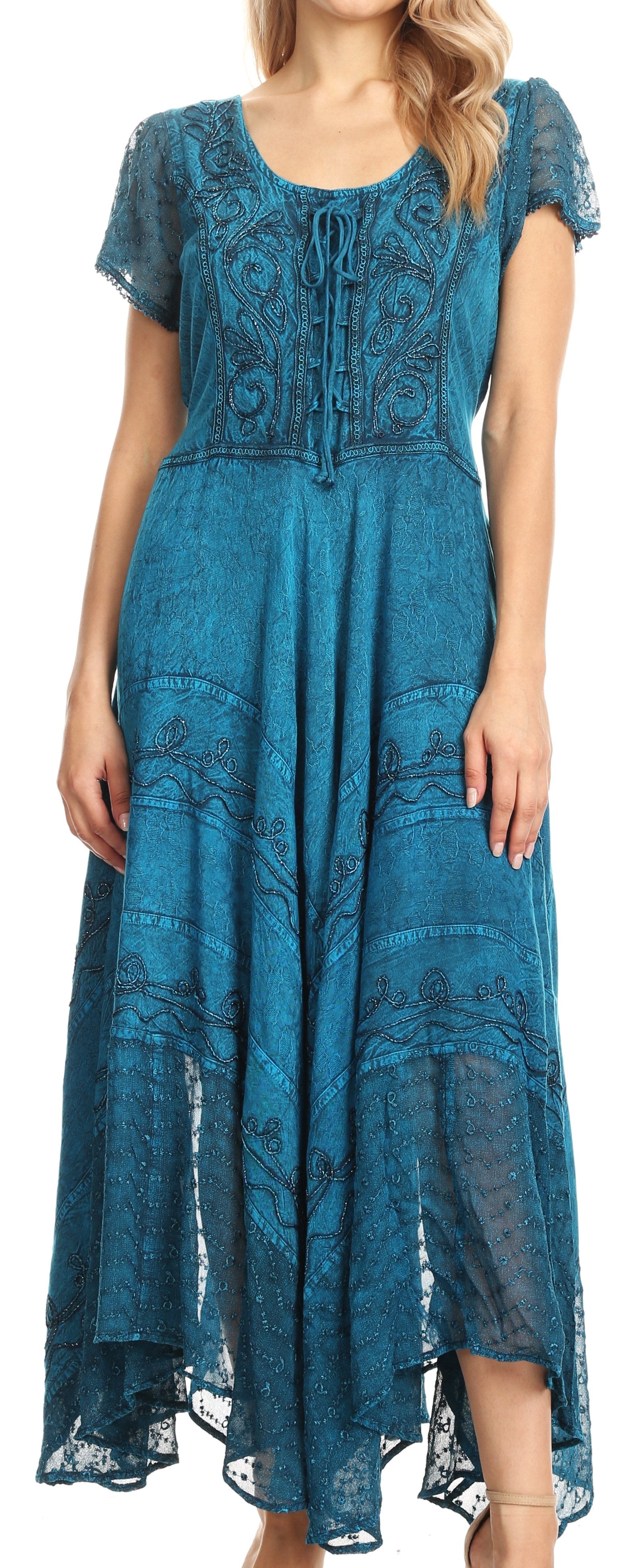 Sakkas' stonewashed rayon dresses feature delicate embroidery, beautiful rich colors and easy comfortable style. Enjoy wearing a flattering feminine dress without sacrificing comfort!