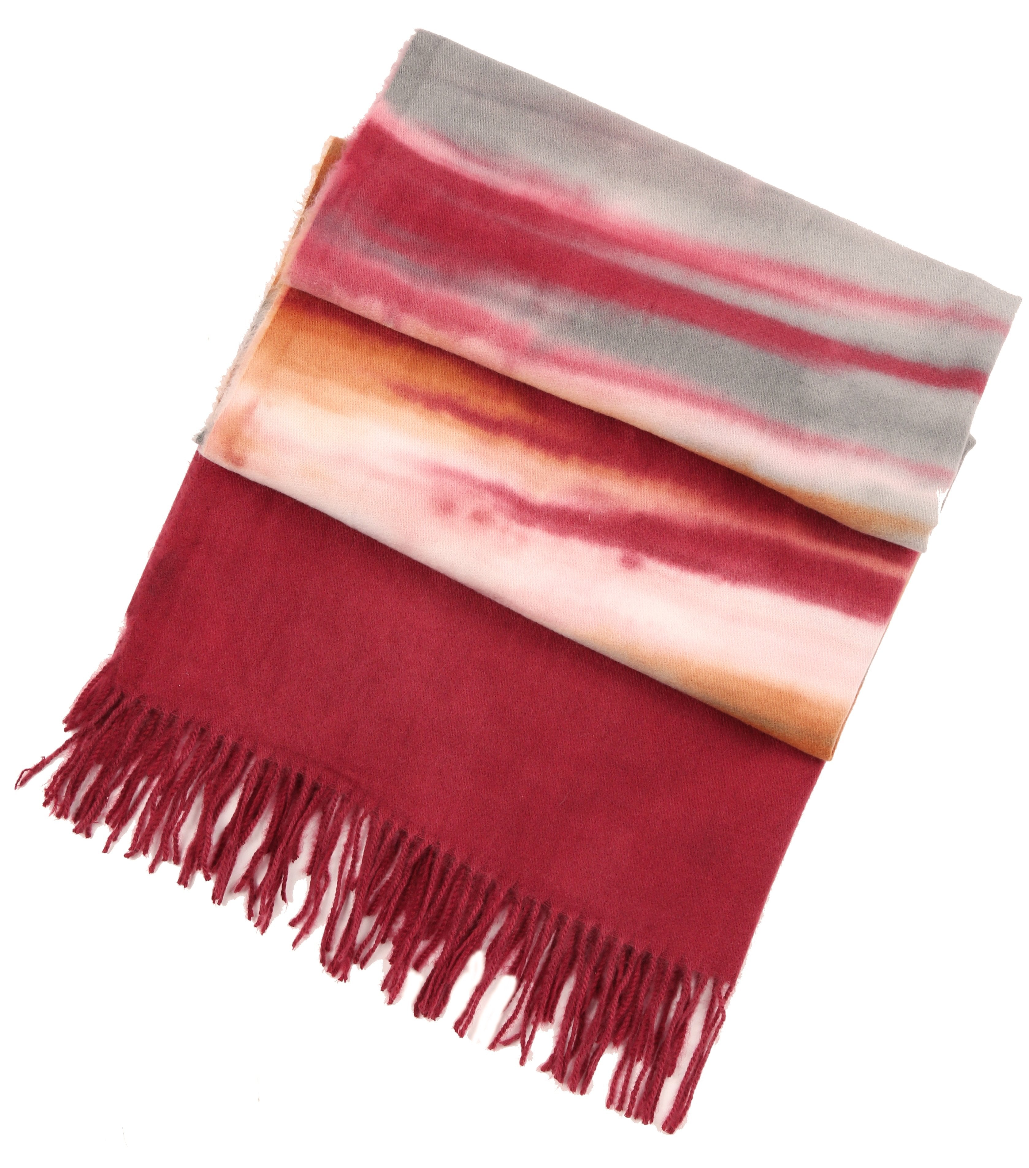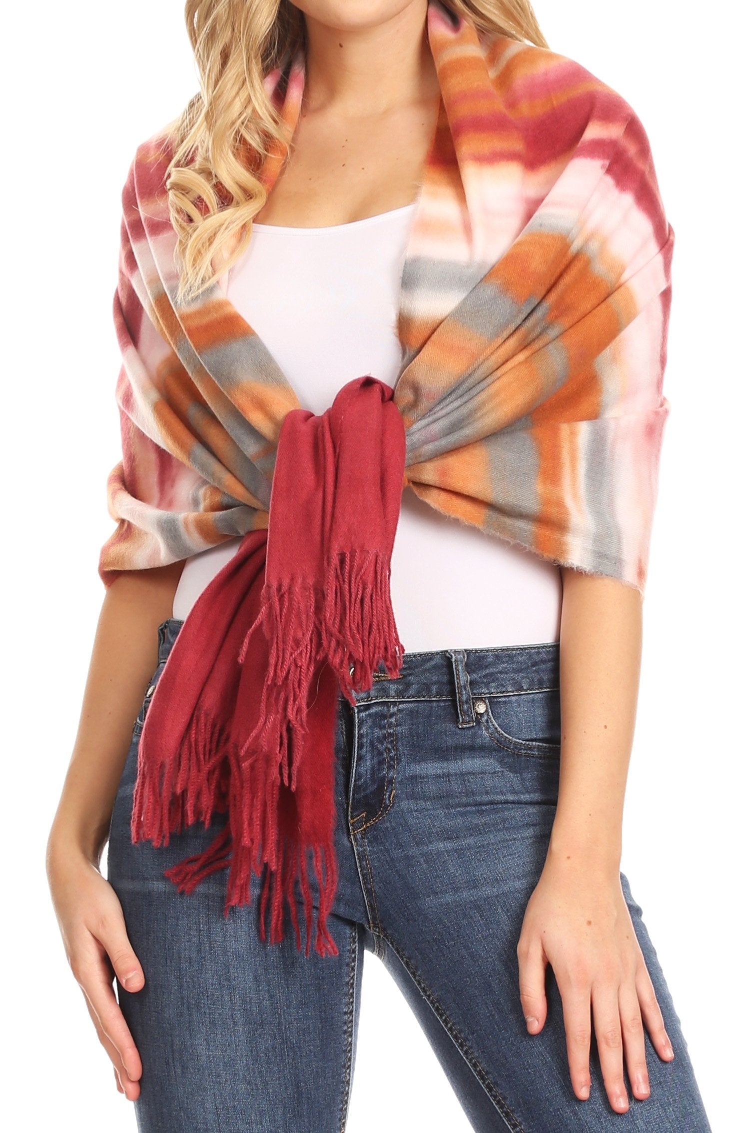 • One size regular: Width 27" (68 cm) x length 70" (180 cm), fringe 4" (10 cm). CARE: Hand wash cold, hang dry, Do not bleach.