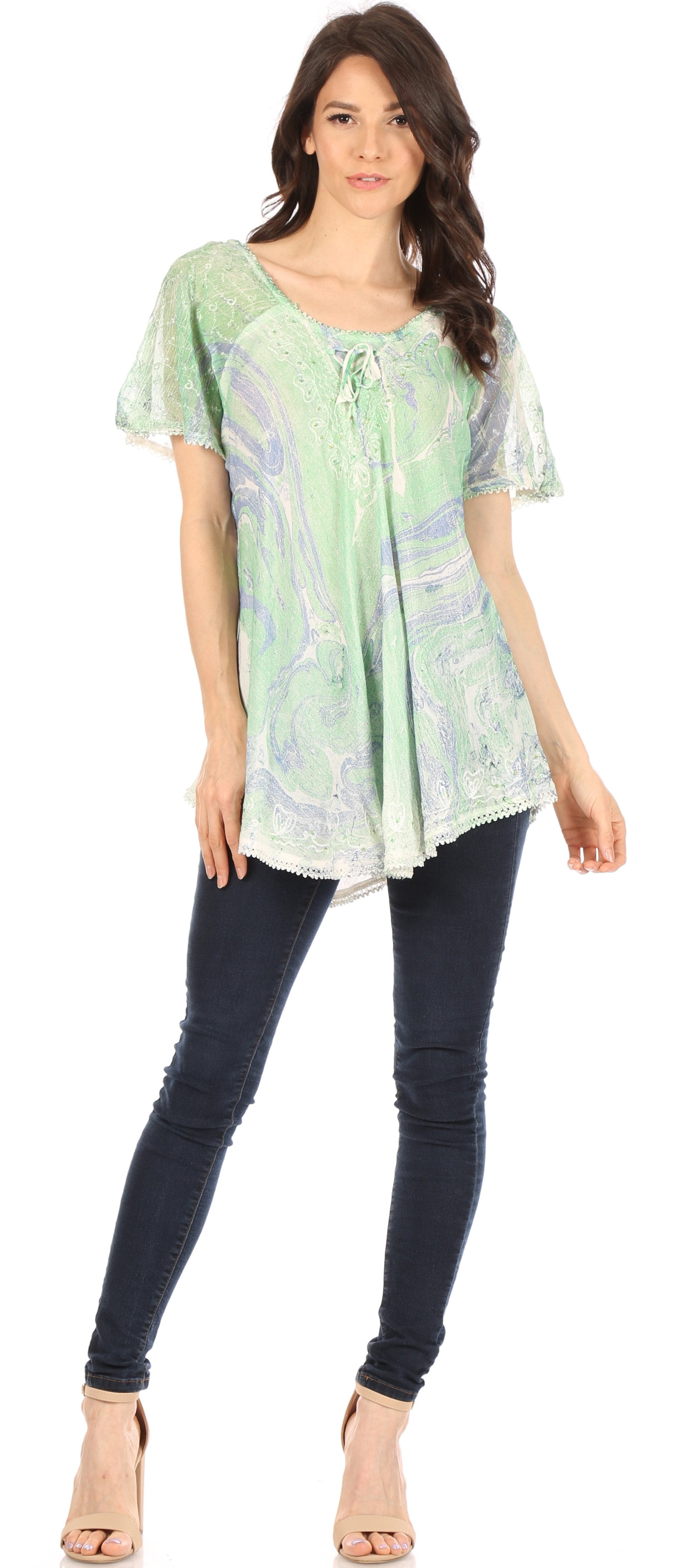 Sakkas Marzia Women's Loose Fit Short Sleeve Casual Tie Dye Batik Blouse Top Tunic