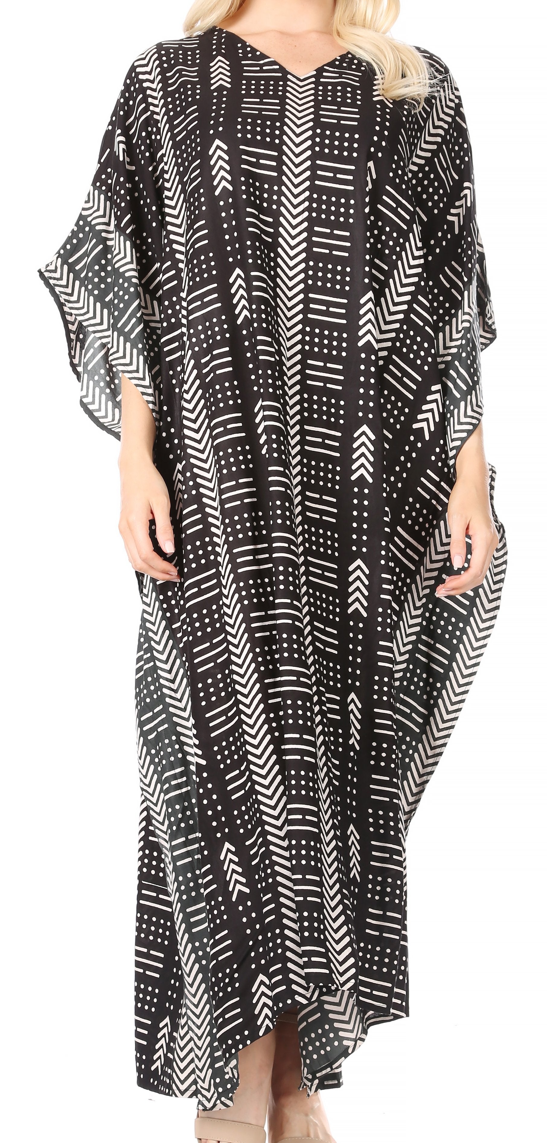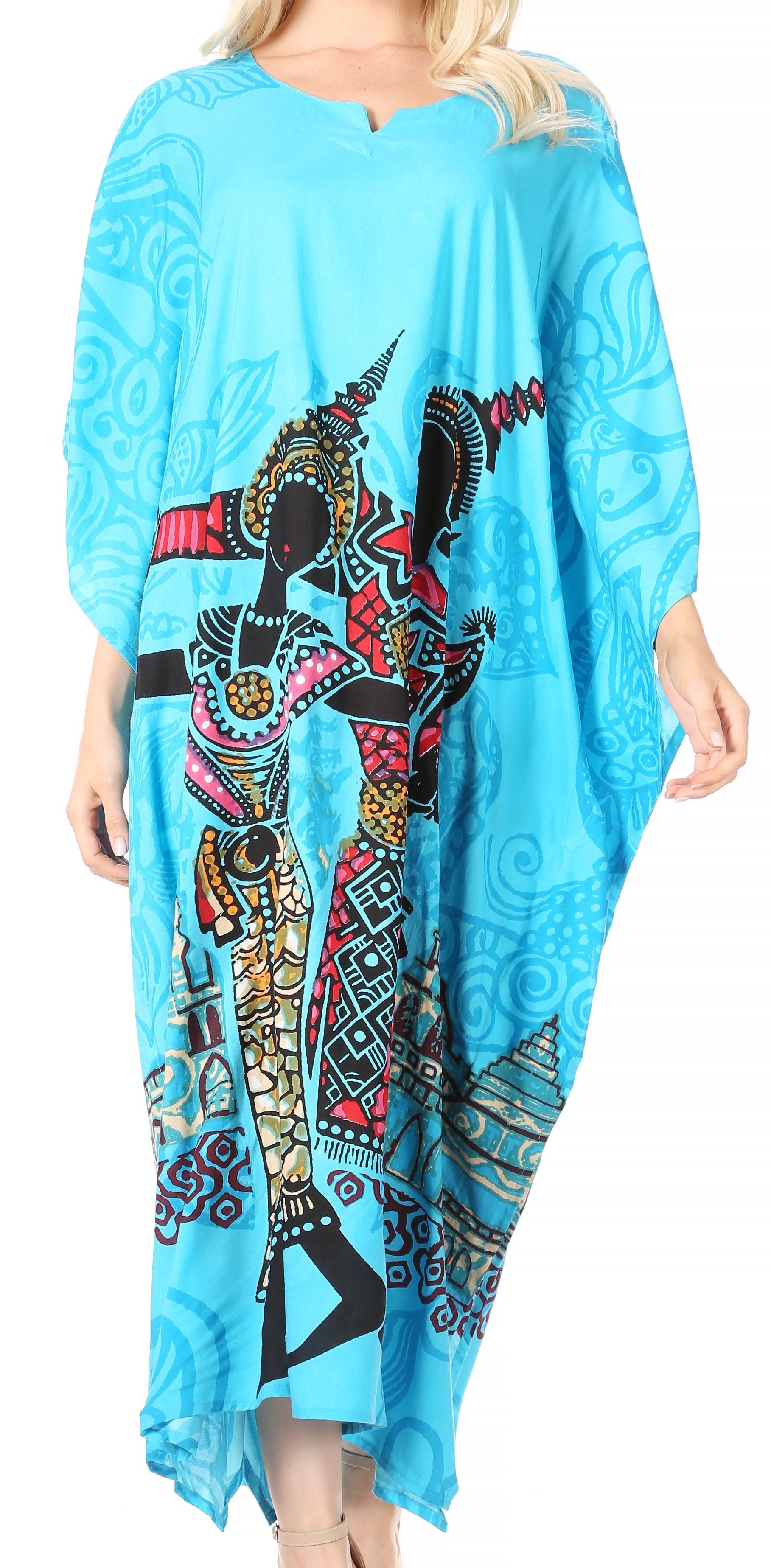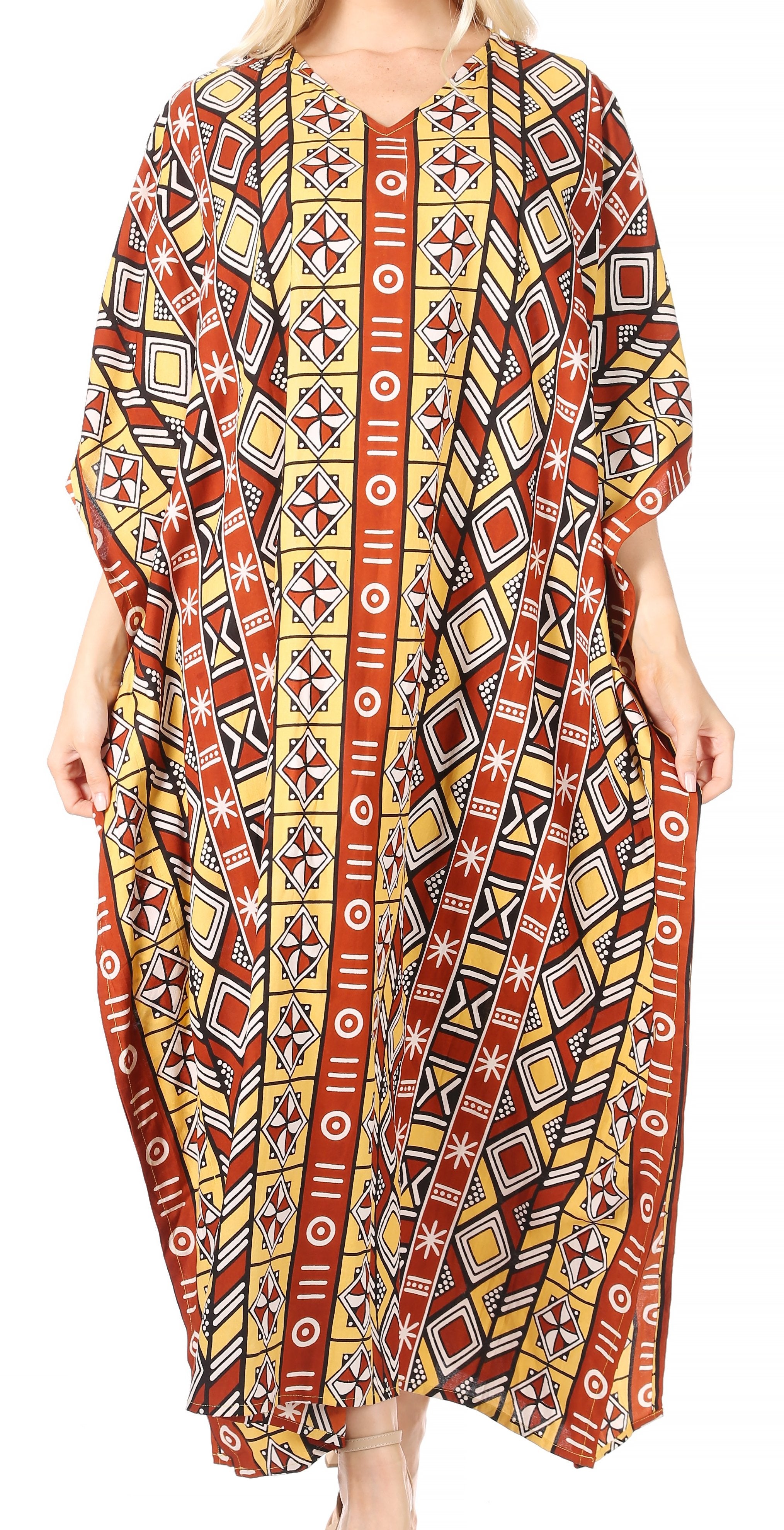 Sakkas Mera Women's Long Loose Short Sleeve Summer Casual Caftan Kaftan Dress